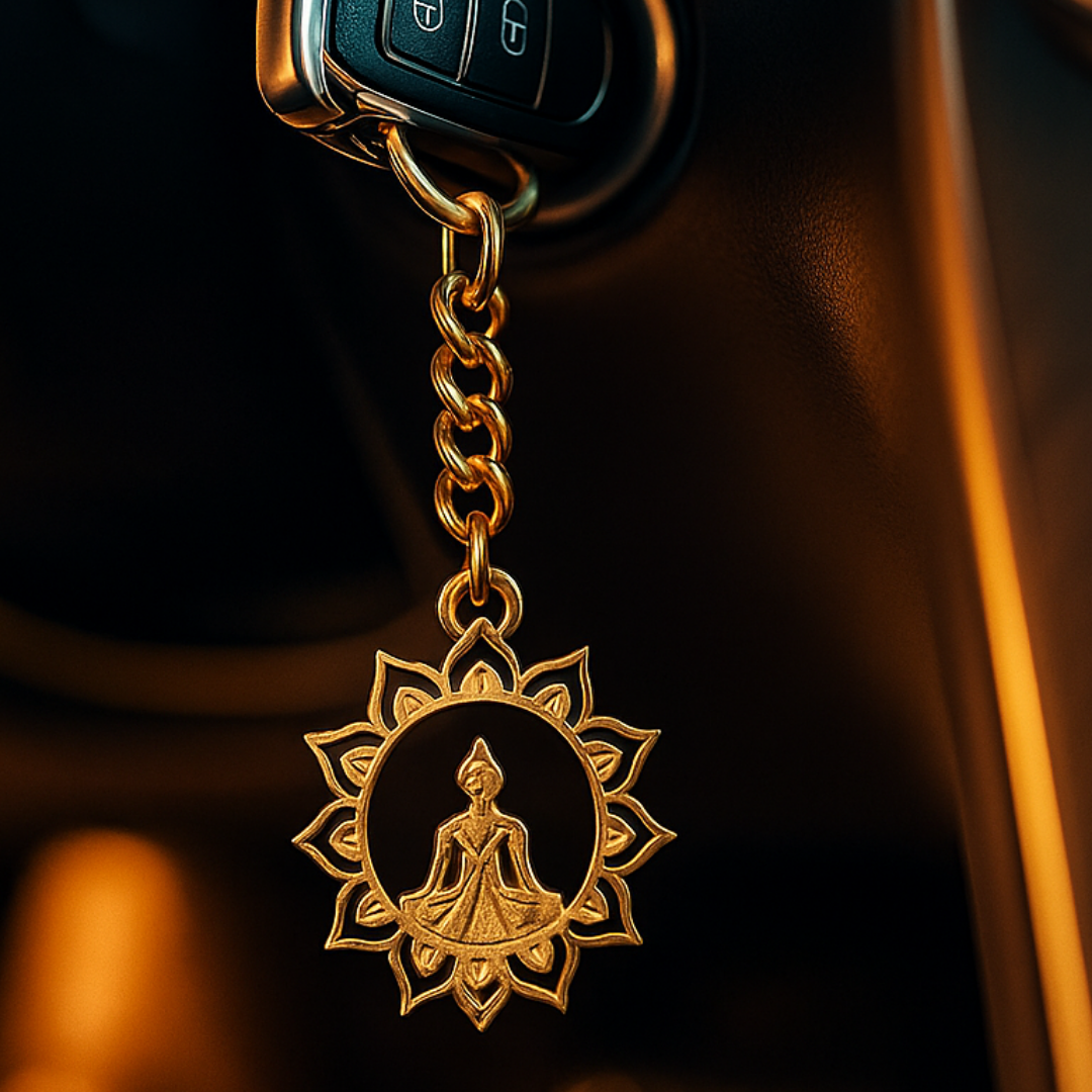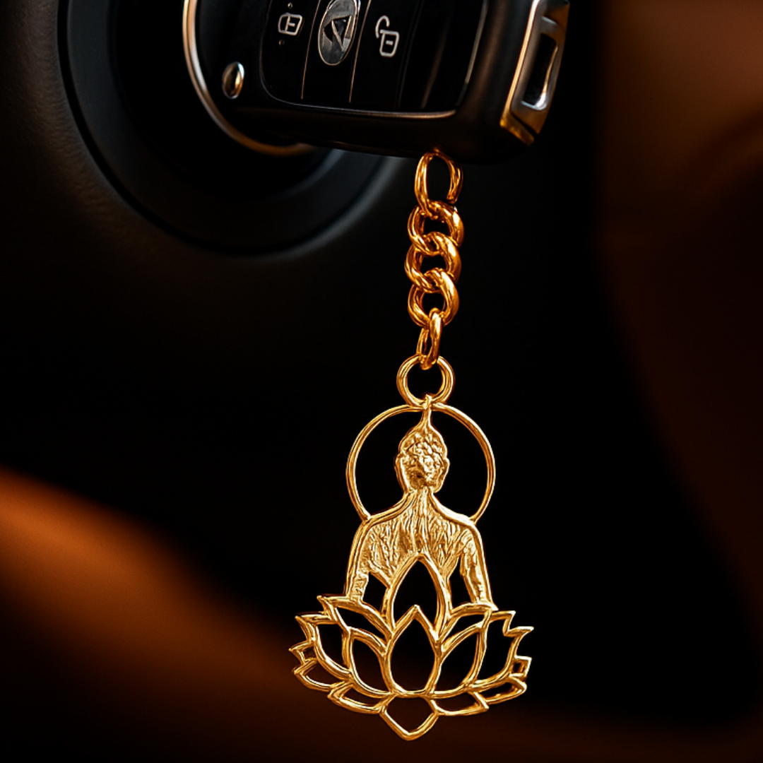 Elita Buddha Lotus Meditation Keychain, Gold-Plated Finish With Brass, Spiritual Charm Accessory