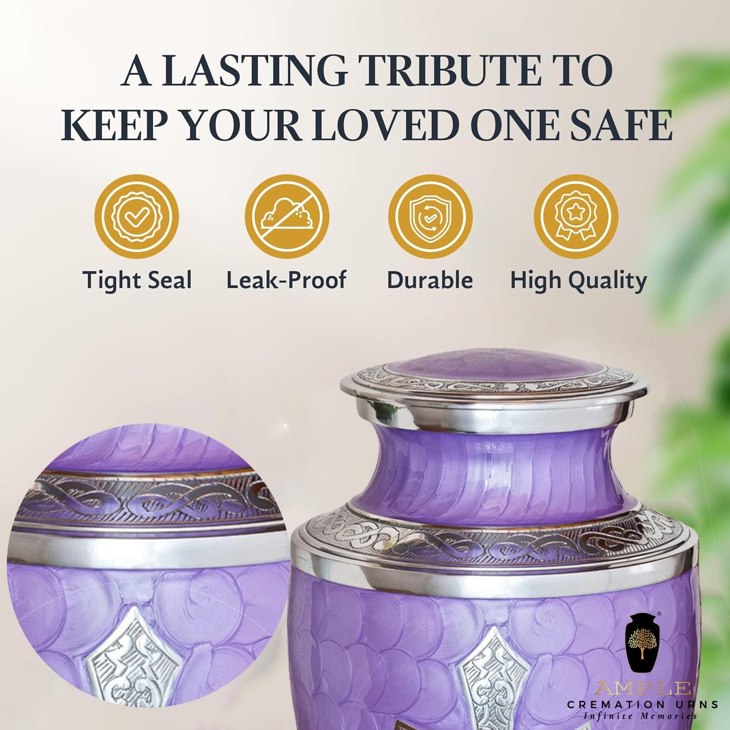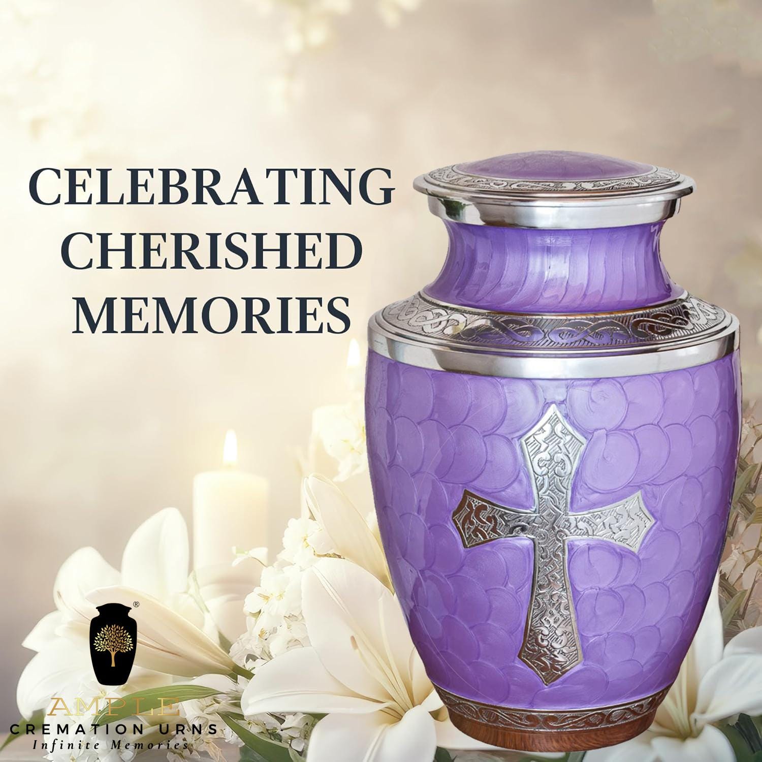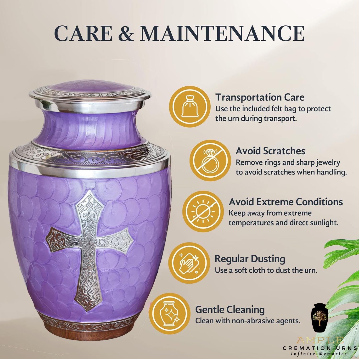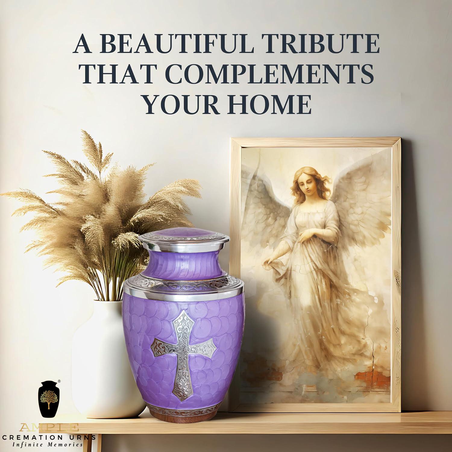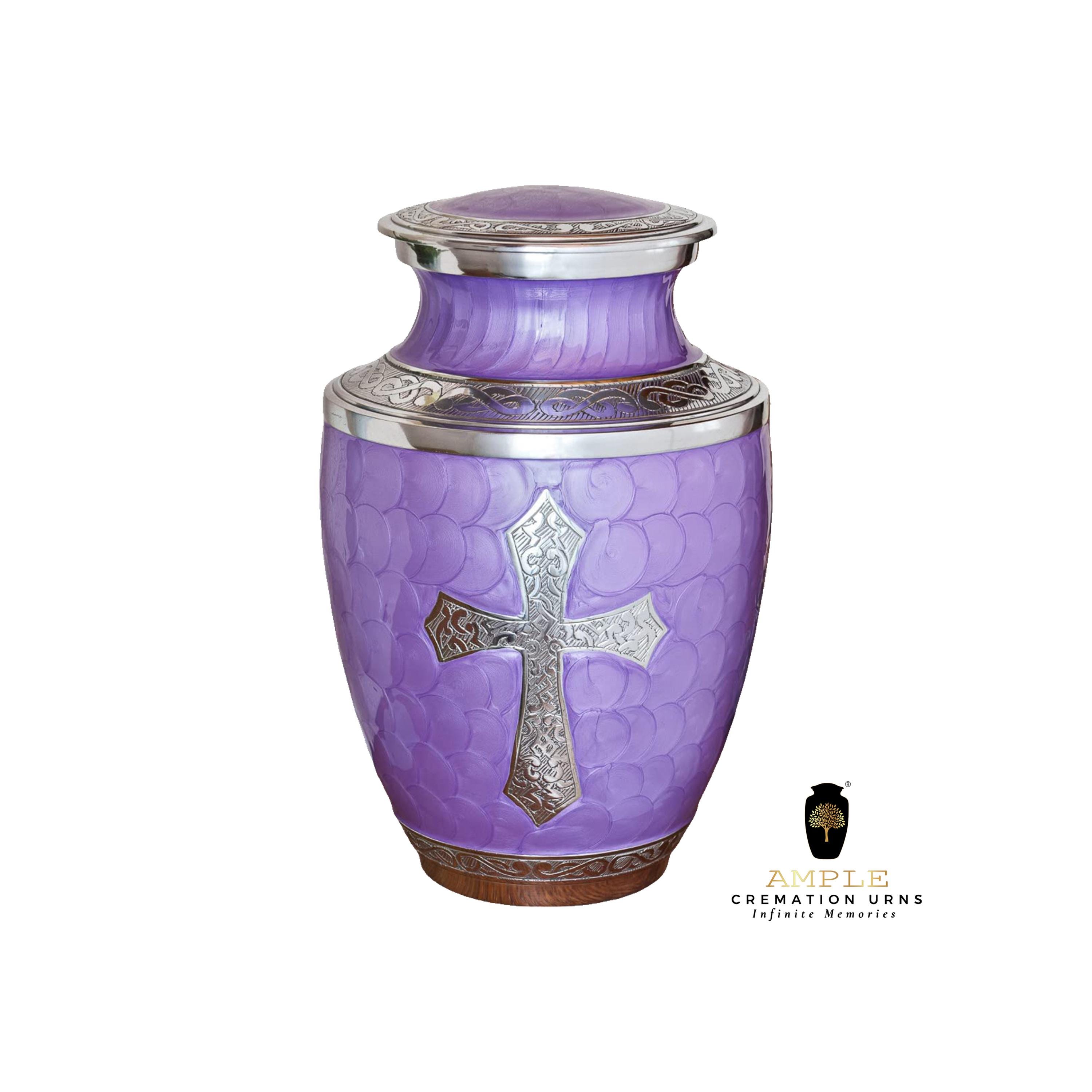 Honor your loved one with the Ample Cremation Urns handcrafted purple cremation urn, designed to provide a beautiful and dignified resting place. This premium funeral urn features an intricate silver cross engraving, symbolizing faith, love, and eternal remembrance. Crafted with high-quality materials, this urn ensures durability while maintaining a graceful and elegant aesthetic. 🕊️