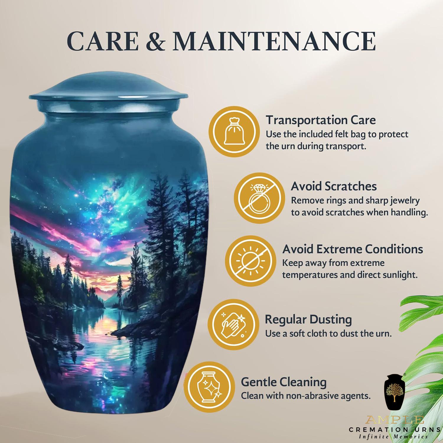 Our Ample™ cremation urns honor your loved one with exquisite Meena-coated aluminum craftsmanship. Each urn is designed to be both a protective sanctuary and an elegant memorial, blending traditional artistry with modern functionality.