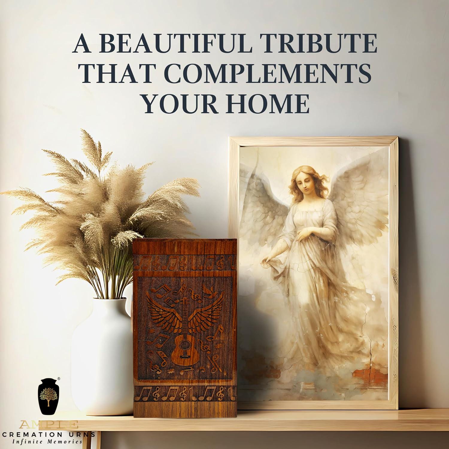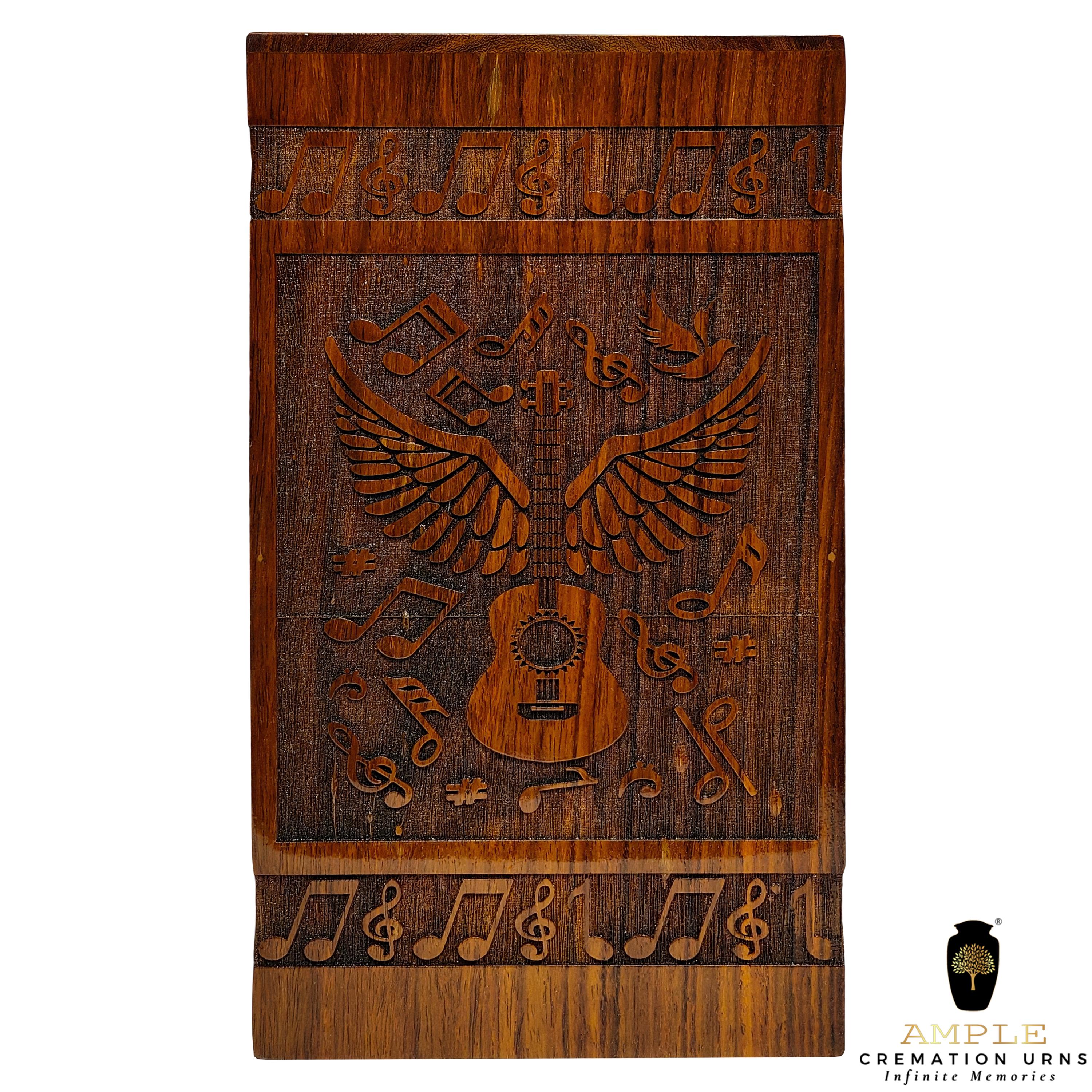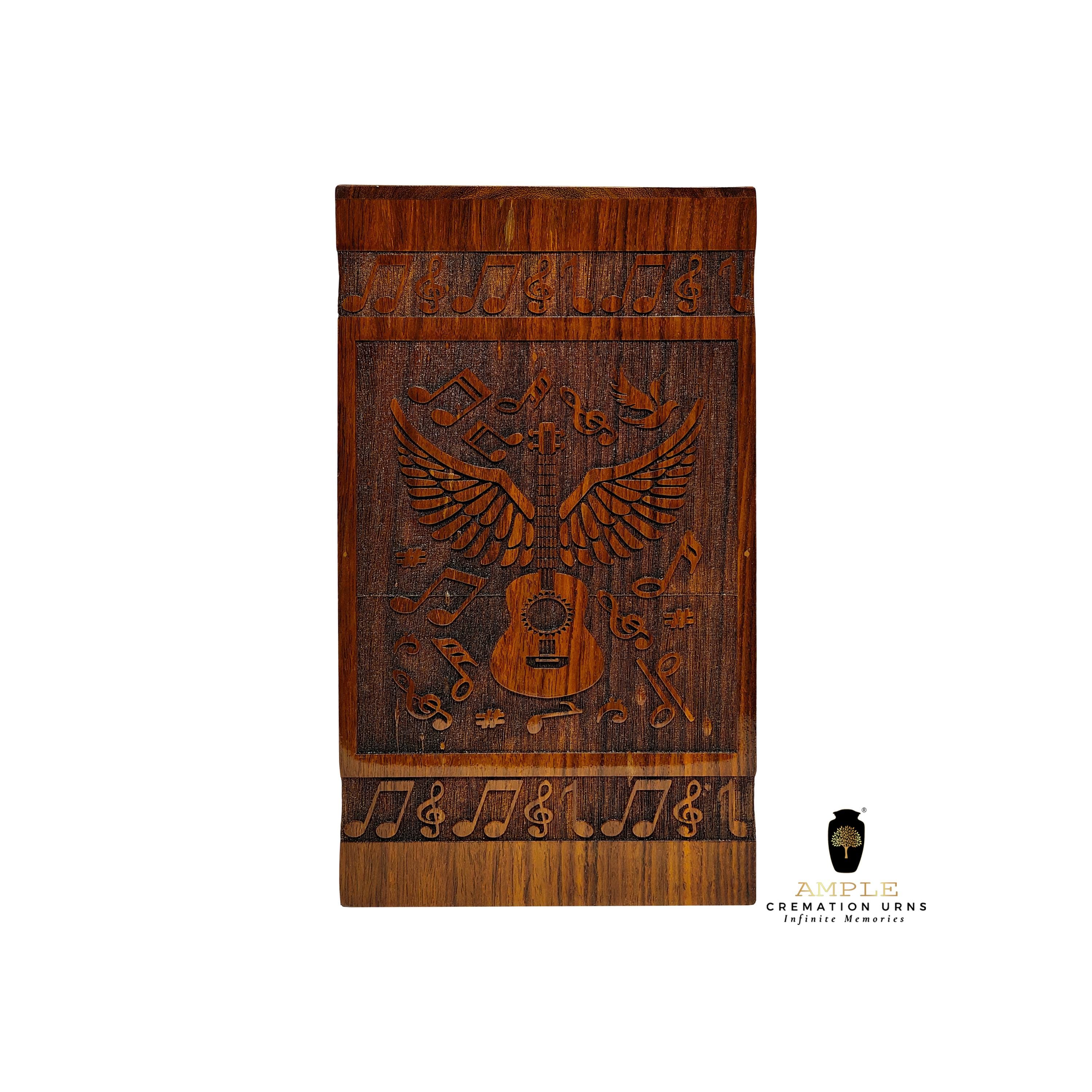 Celebrate the life of a music lover with this beautifully handcrafted wooden urn box, featuring an engraved guitar with wings and musical notes 🎸🎶 A perfect tribute for someone whose soul was always in tune with melody and rhythm.
