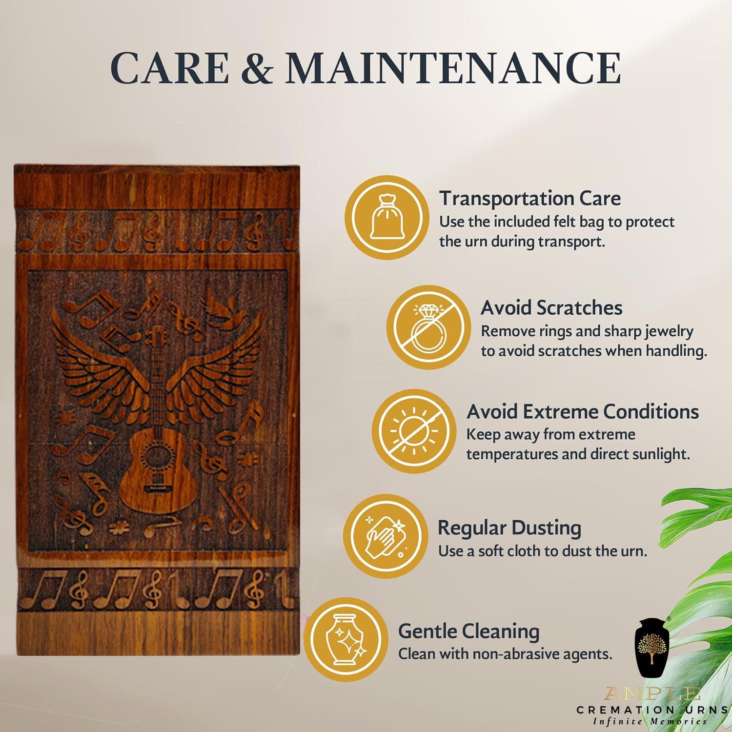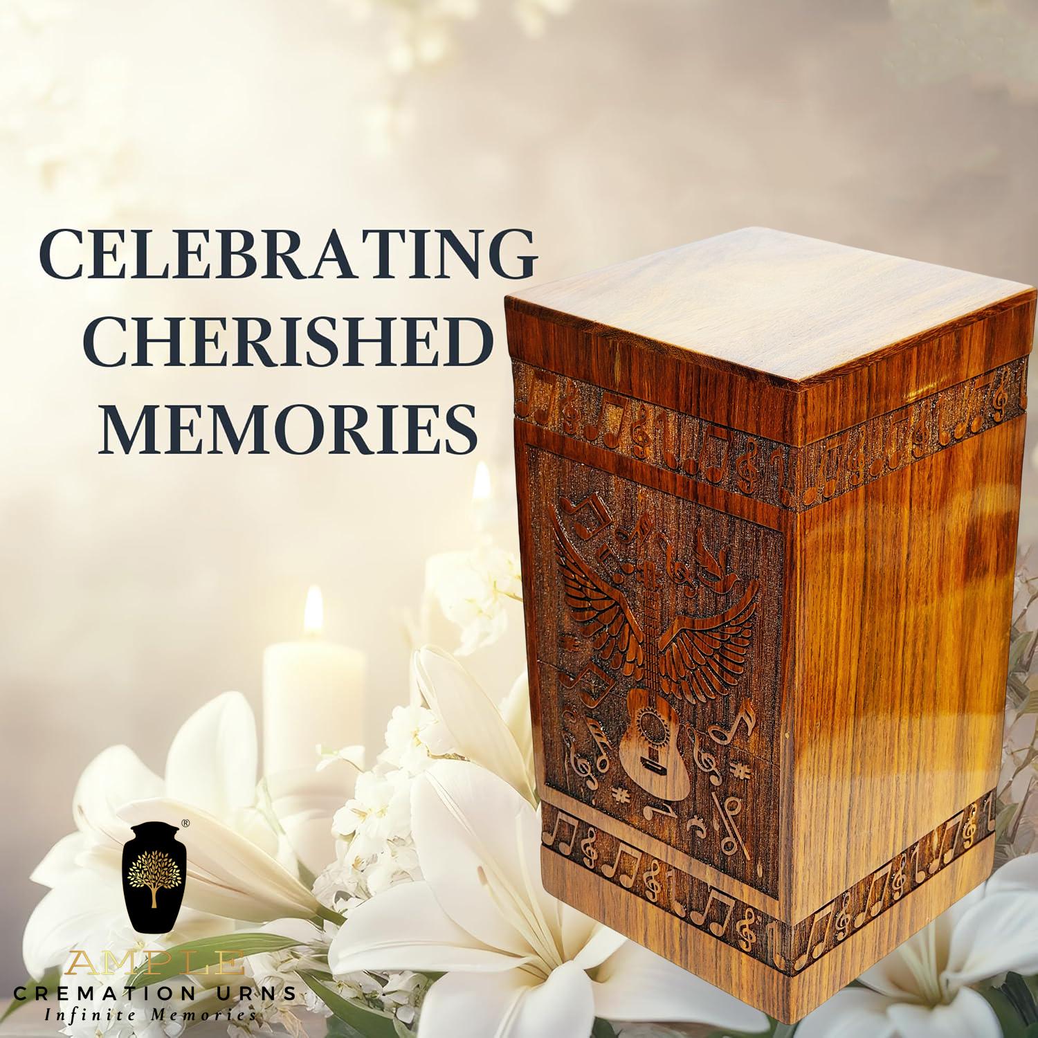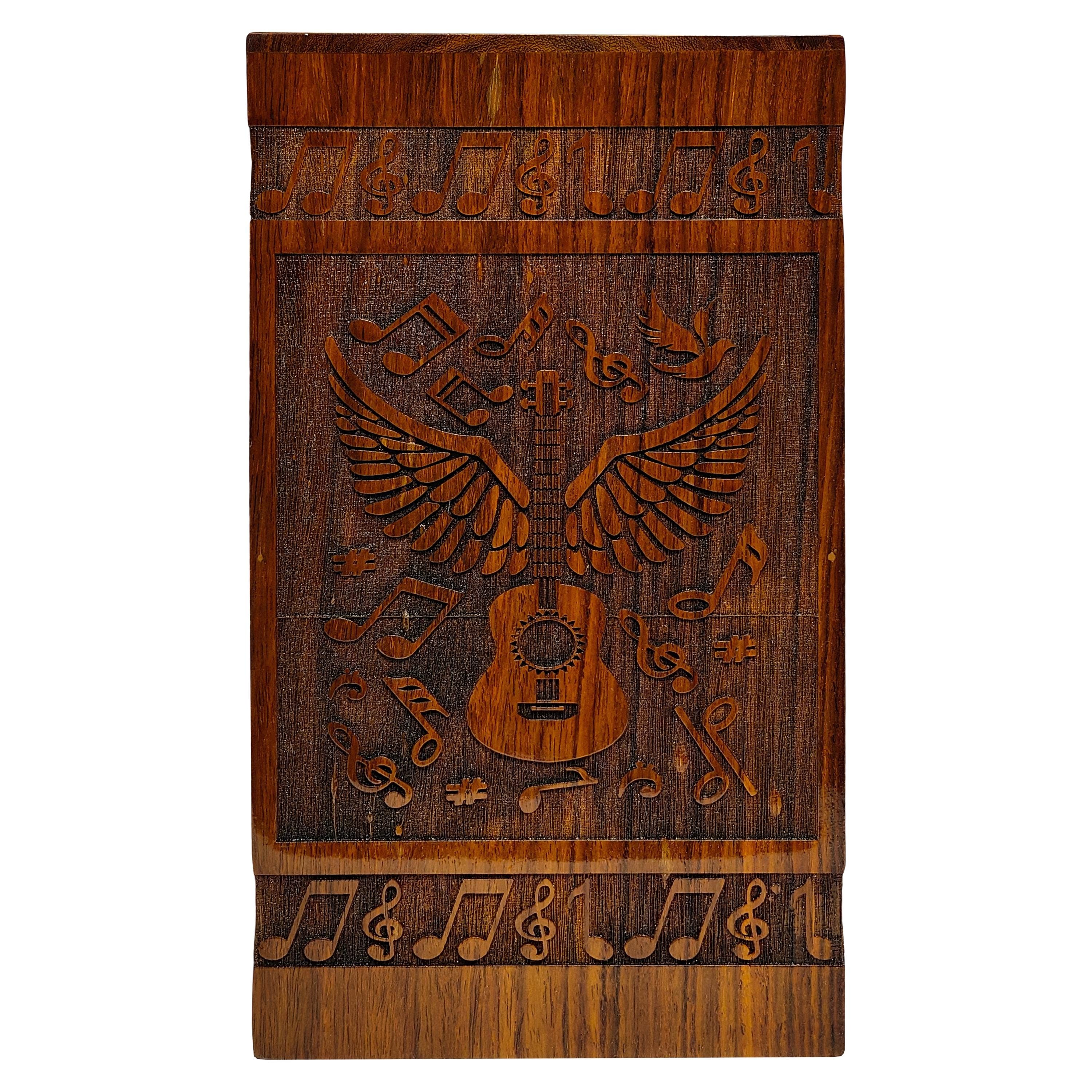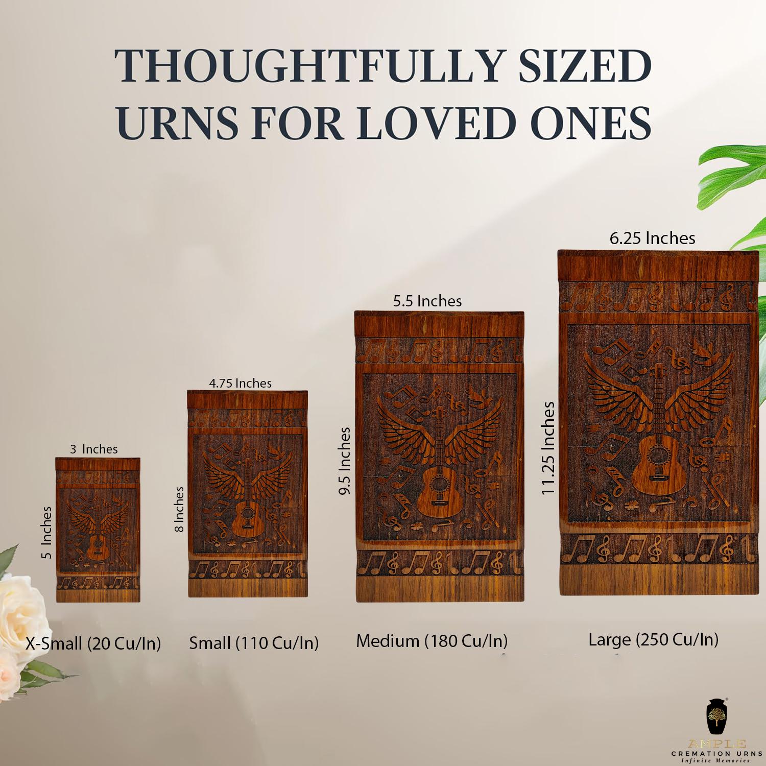 Celebrate the life of a music lover with this beautifully handcrafted wooden urn box, featuring an engraved guitar with wings and musical notes 🎸🎶 A perfect tribute for someone whose soul was always in tune with melody and rhythm.