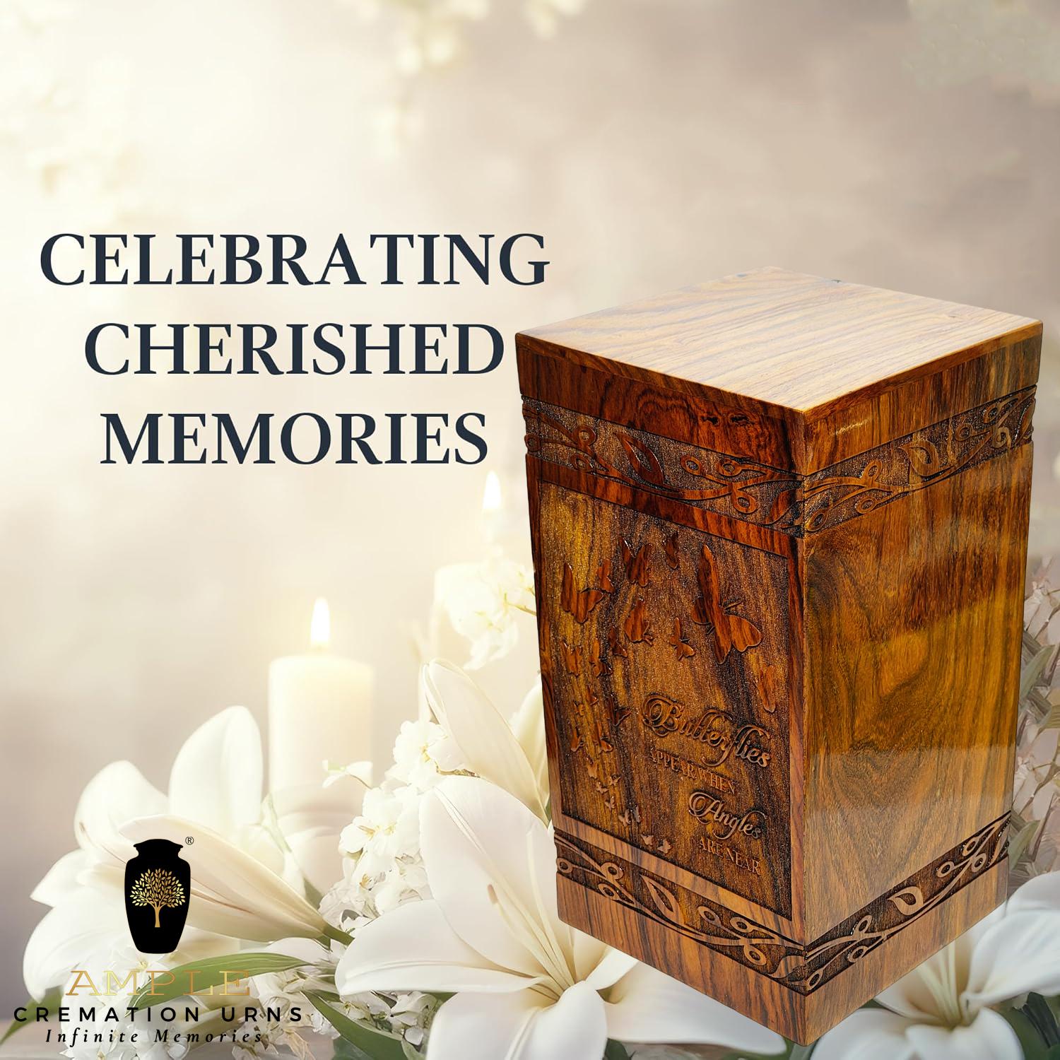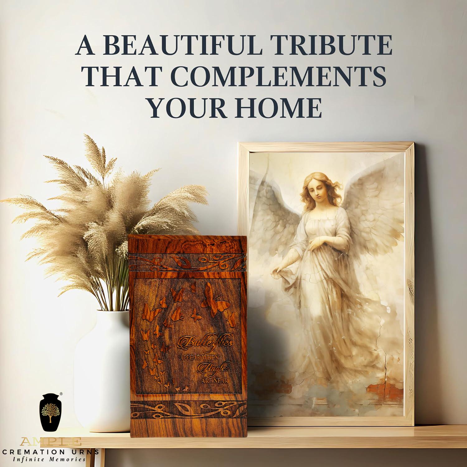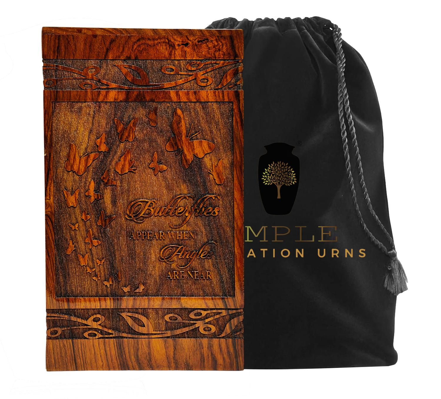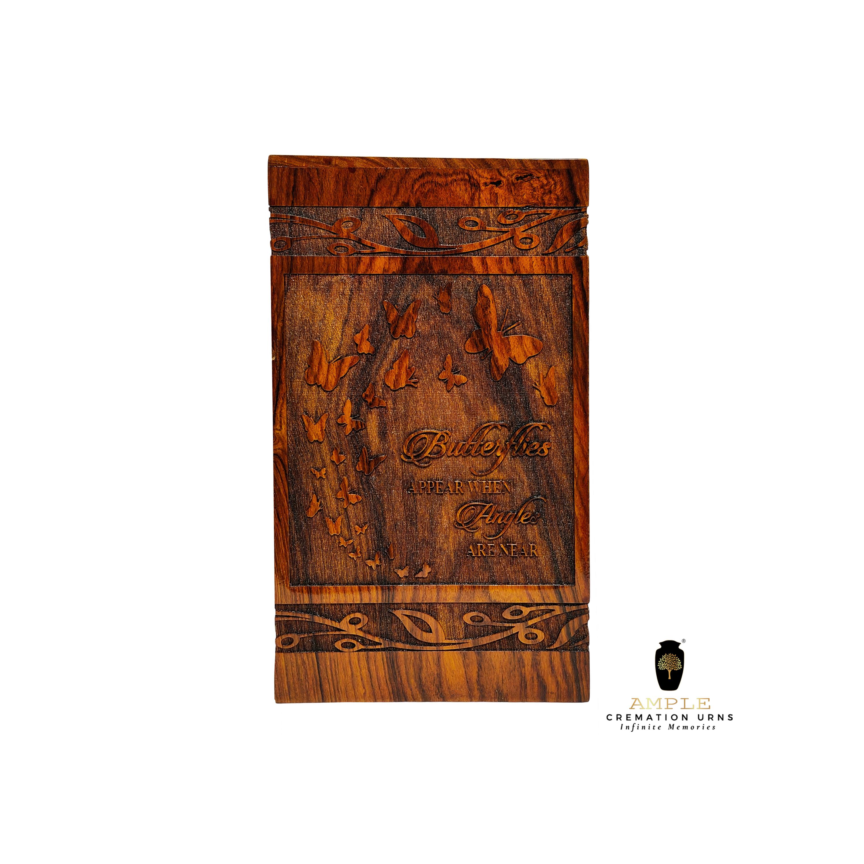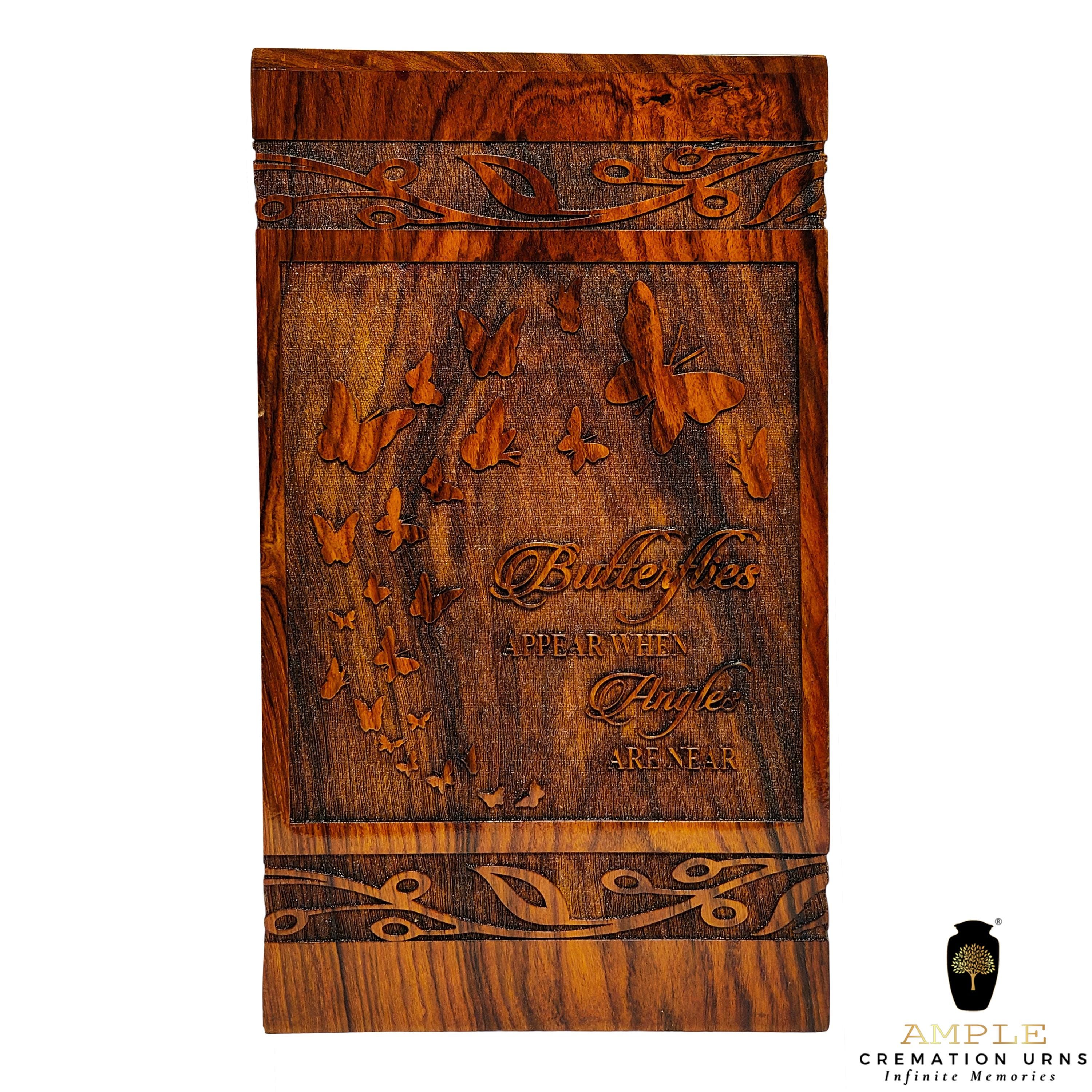 Honor your loved one’s memory with this elegant wooden cremation urn box featuring beautifully carved butterflies and an inspiring quote 🦋✨ This handcrafted piece is a touching symbol of transformation, peace, and presence.