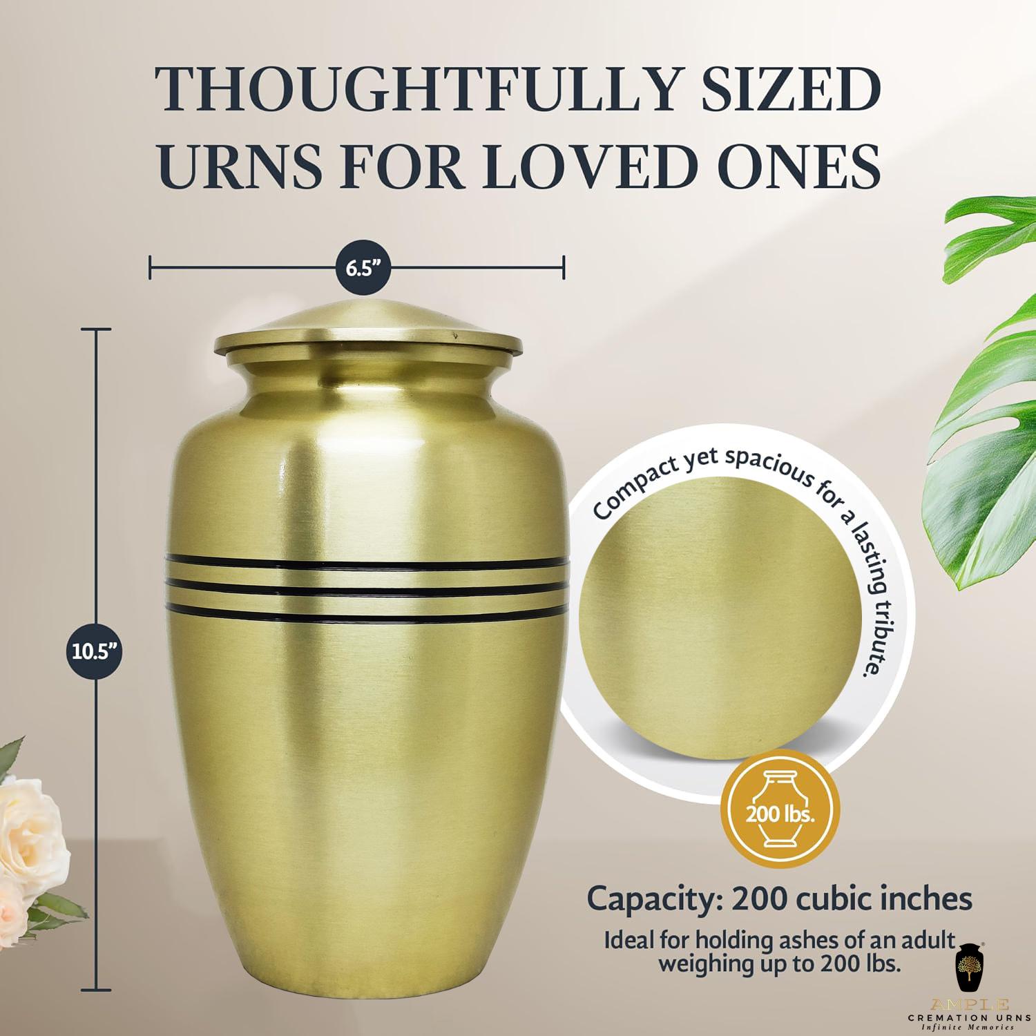 • Large Adult Urn (220 cu in) - Holds ashes for adults up to 200 lbs (measures 6.5" x 10.5")