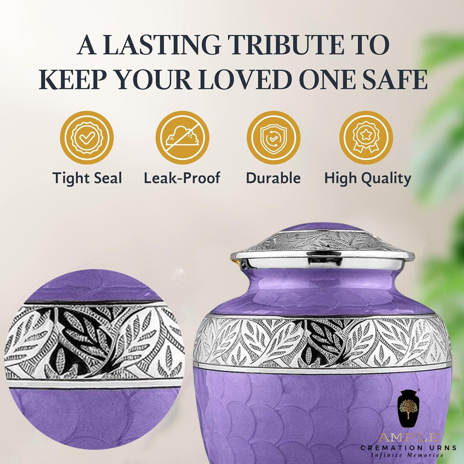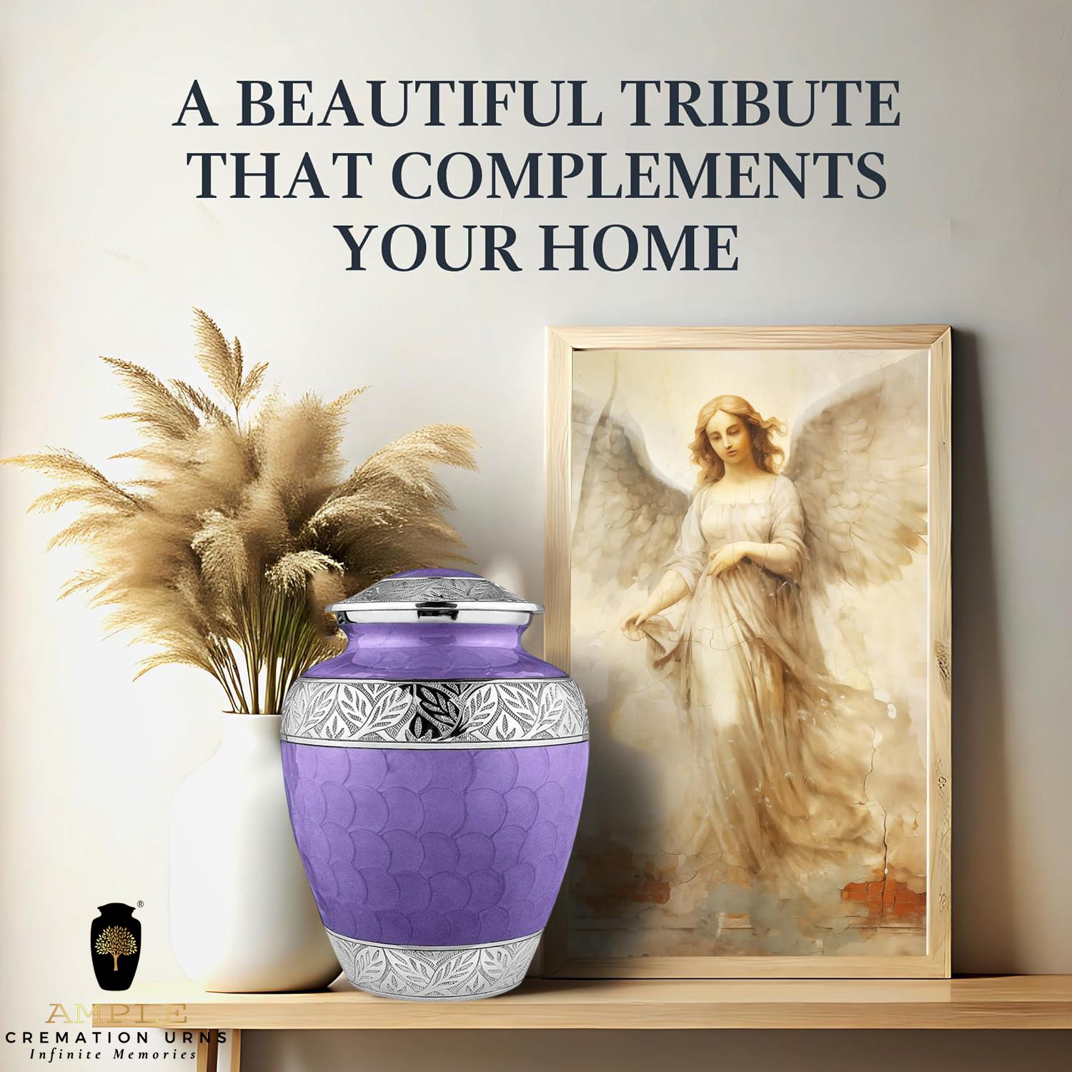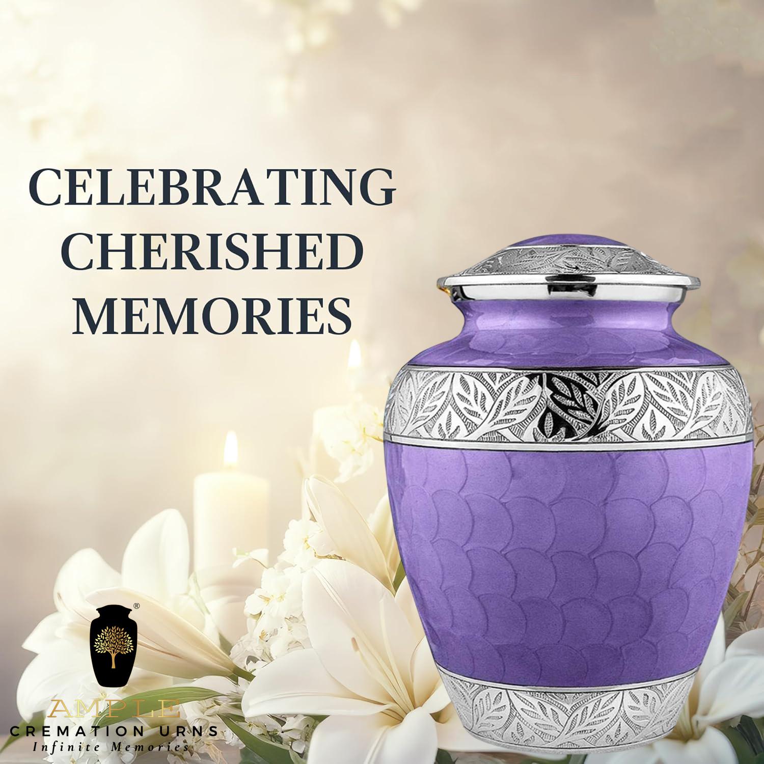 Honor your loved one with our beautifully crafted Ample Cremation Urns, made from premium aluminum with a durable Meena coating finish that ensures lasting elegance and protection. Available in four thoughtful sizes including a keepsake urn (3 cu in) for memorial tokens, a large urn (220 cu in) to hold an adult's ashes, a set of 4 keepsake urns for family sharing, and an engravable large urn for personalization with names or dates. Each urn features a tight, leak-proof seal to keep ashes secure, a scratch-resistant surface, and a timeless design that complements any home decor while celebrating cherished memories. The included felt bag protects during transport, while the high-quality aluminum construction ensures durability - simply dust regularly and avoid extreme temperatures for proper care.