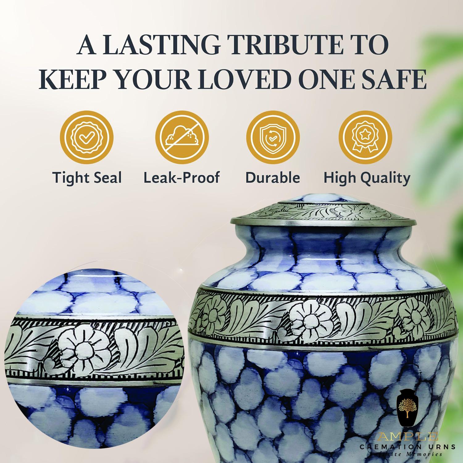 Our exquisite Meena coated aluminum cremation urns offer a dignified way to honor cherished memories. Each handcrafted piece combines vibrant artistry with lasting protection, creating a beautiful memorial that complements your home decor.