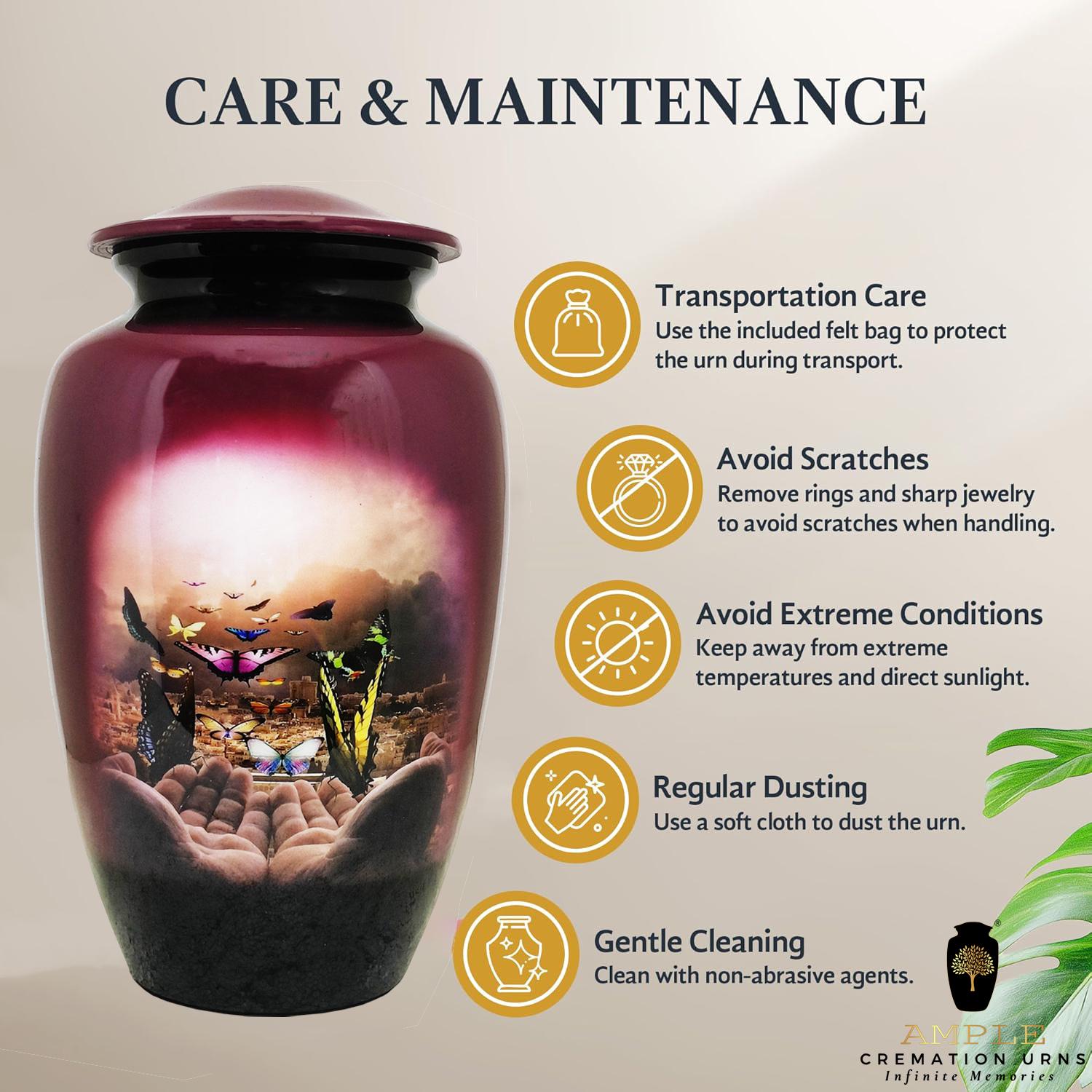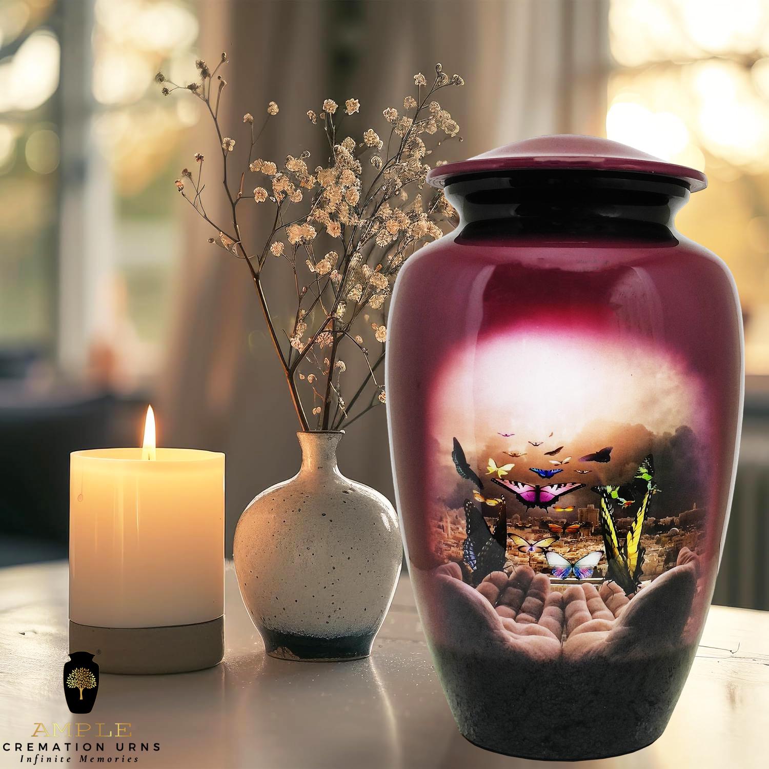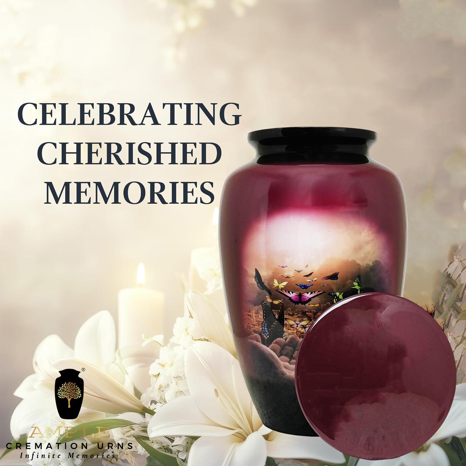 Our Ample Cremation Urns offer a dignified and beautiful way to honor your loved one's memory. Expertly crafted from premium aluminum, these memorial urns (6.5" × 10.5") combine timeless elegance with thoughtful functionality, featuring a leak-proof seal for complete peace of mind and a sophisticated design that complements any home decor.