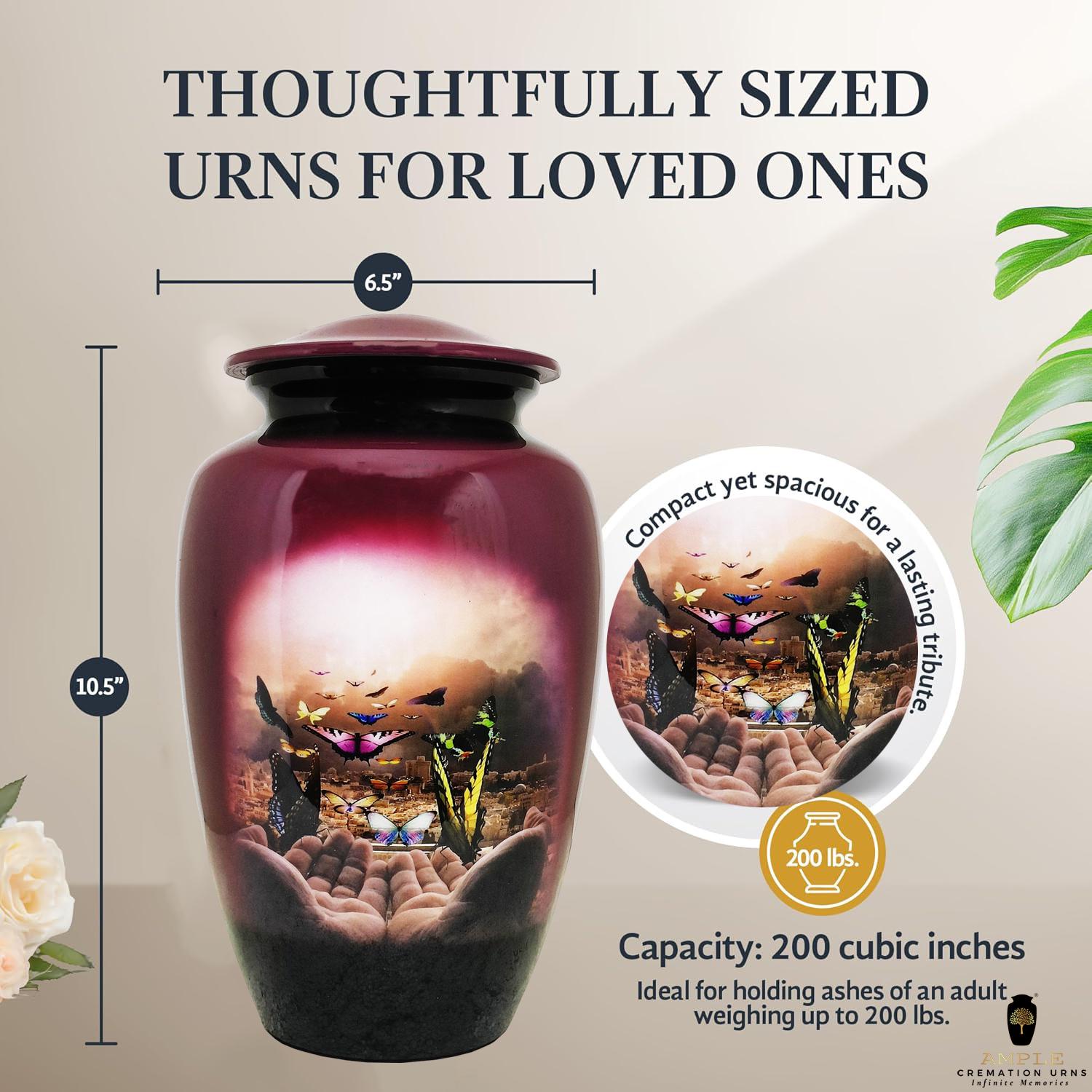 Large Adult Urn (220 cu in): Designed to hold ashes for adults up to 200 lbs (200 cubic inch capacity)