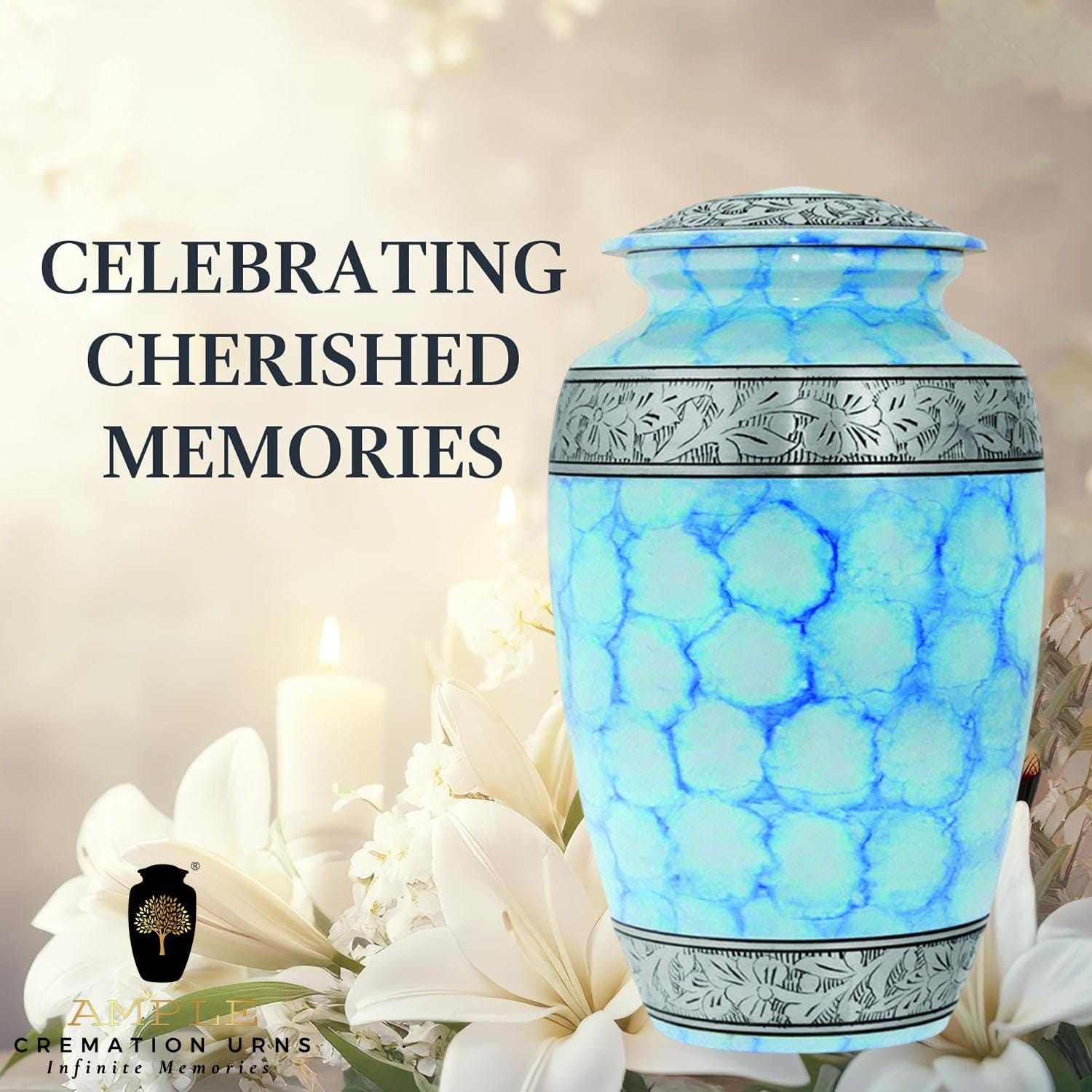 Honor your loved one with this exquisite "Infinite Memories" cremation urn, a masterpiece of traditional craftsmanship. Each urn is