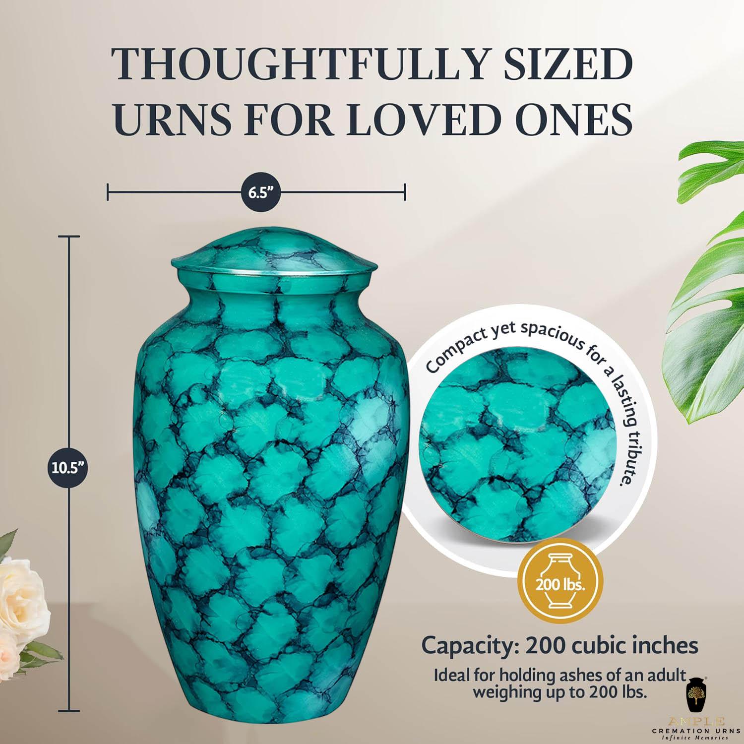 Capacity: 220 cubic inches (holds ashes of an adult weighing up to 200 lbs).