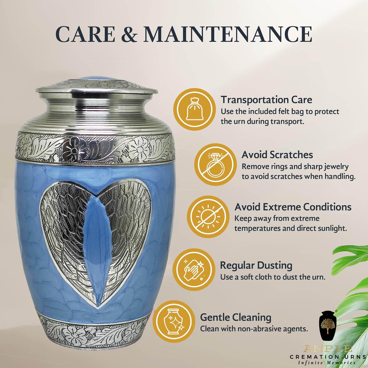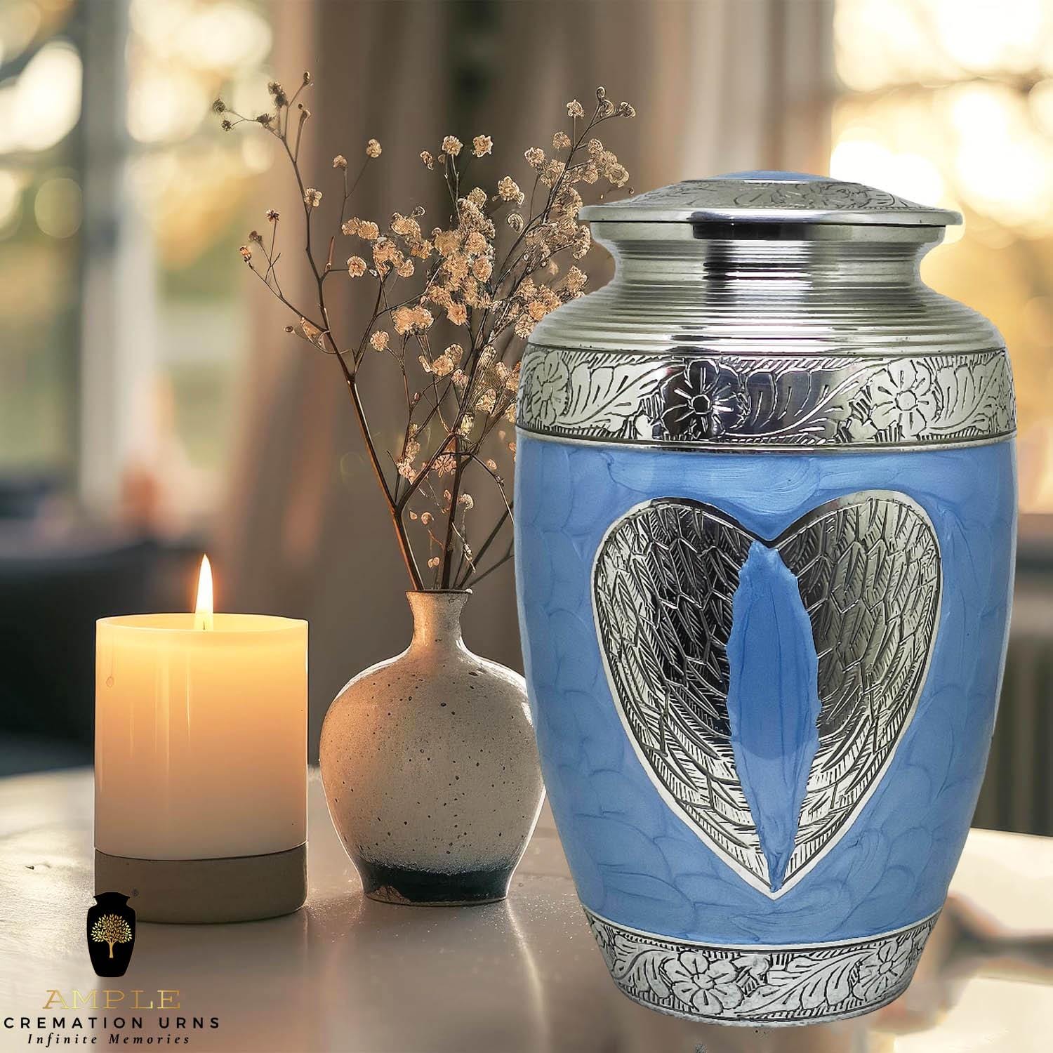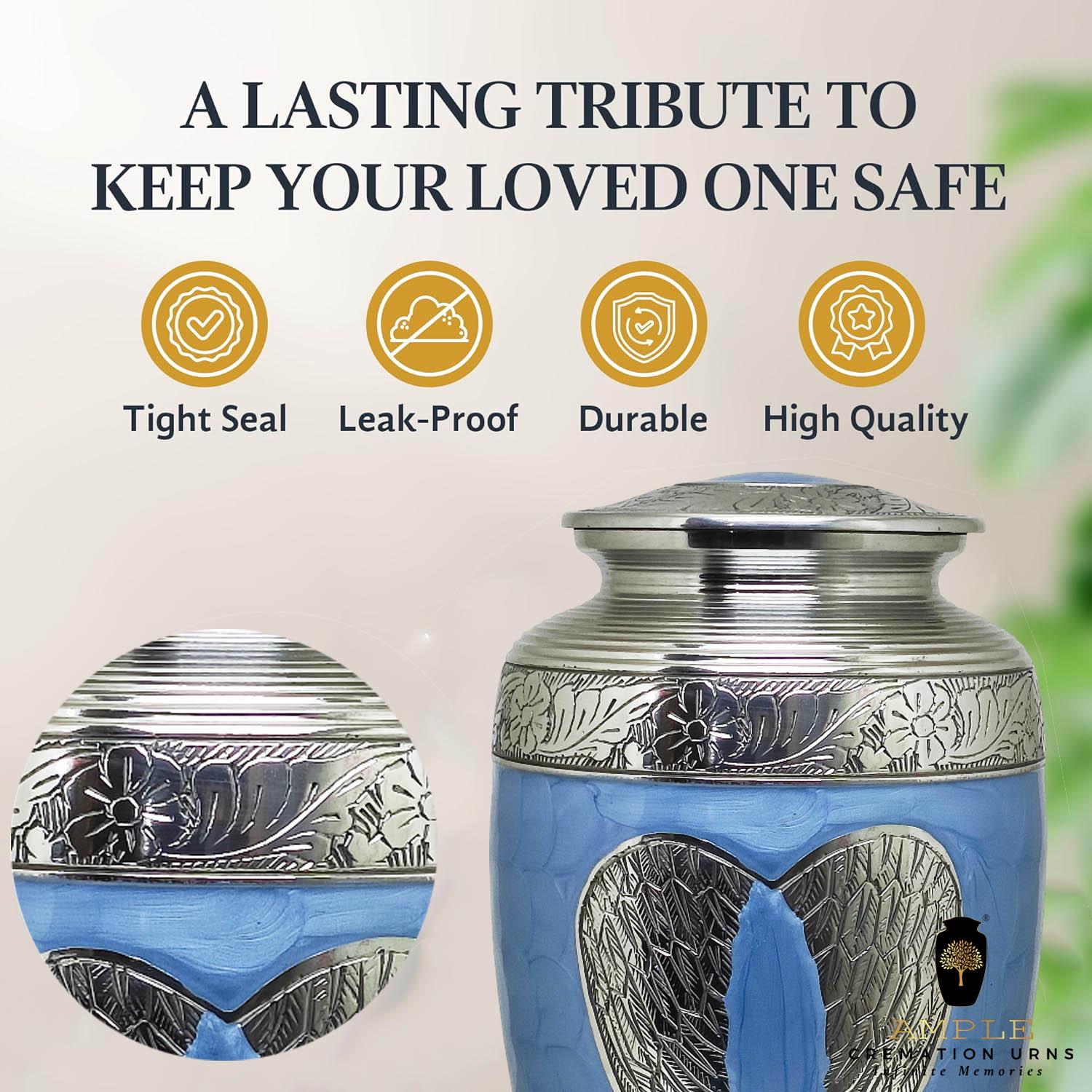 The Amble Infinite Memories Cremation Urn is a dignified and beautifully crafted memorial piece, constructed from high-quality aluminum with a lustrous Meena coating for an elegant, lasting finish. Measuring 6.5 x 6.5 x 10.5 inches, this urn offers a secure and respectful resting place for your loved one’s ashes. The timeless design, marked by its refined Meena-coated surface, combines durability with understated sophistication, making it a cherished keepsake for remembrance. Ideal for both home display and ceremonial use, this urn embodies strength, beauty, and reverence in equal measure.