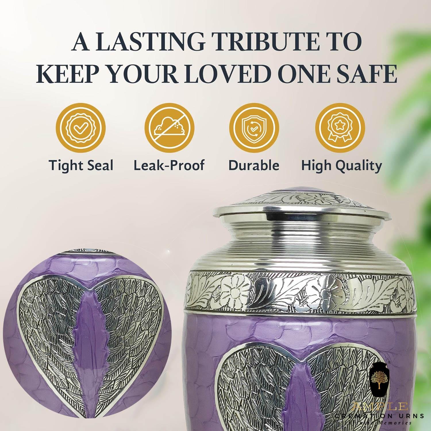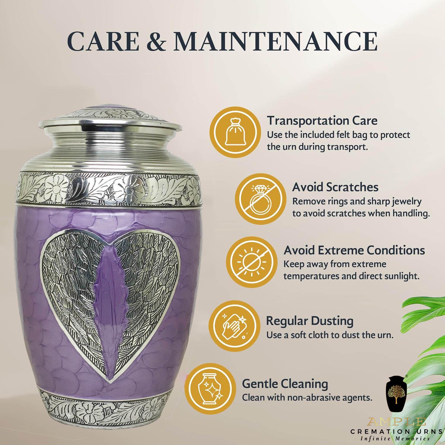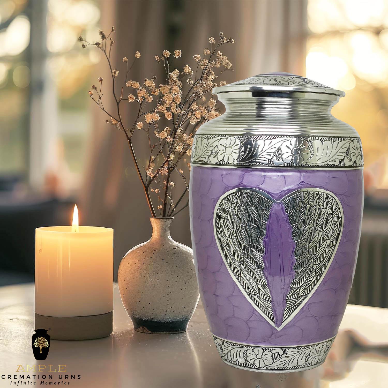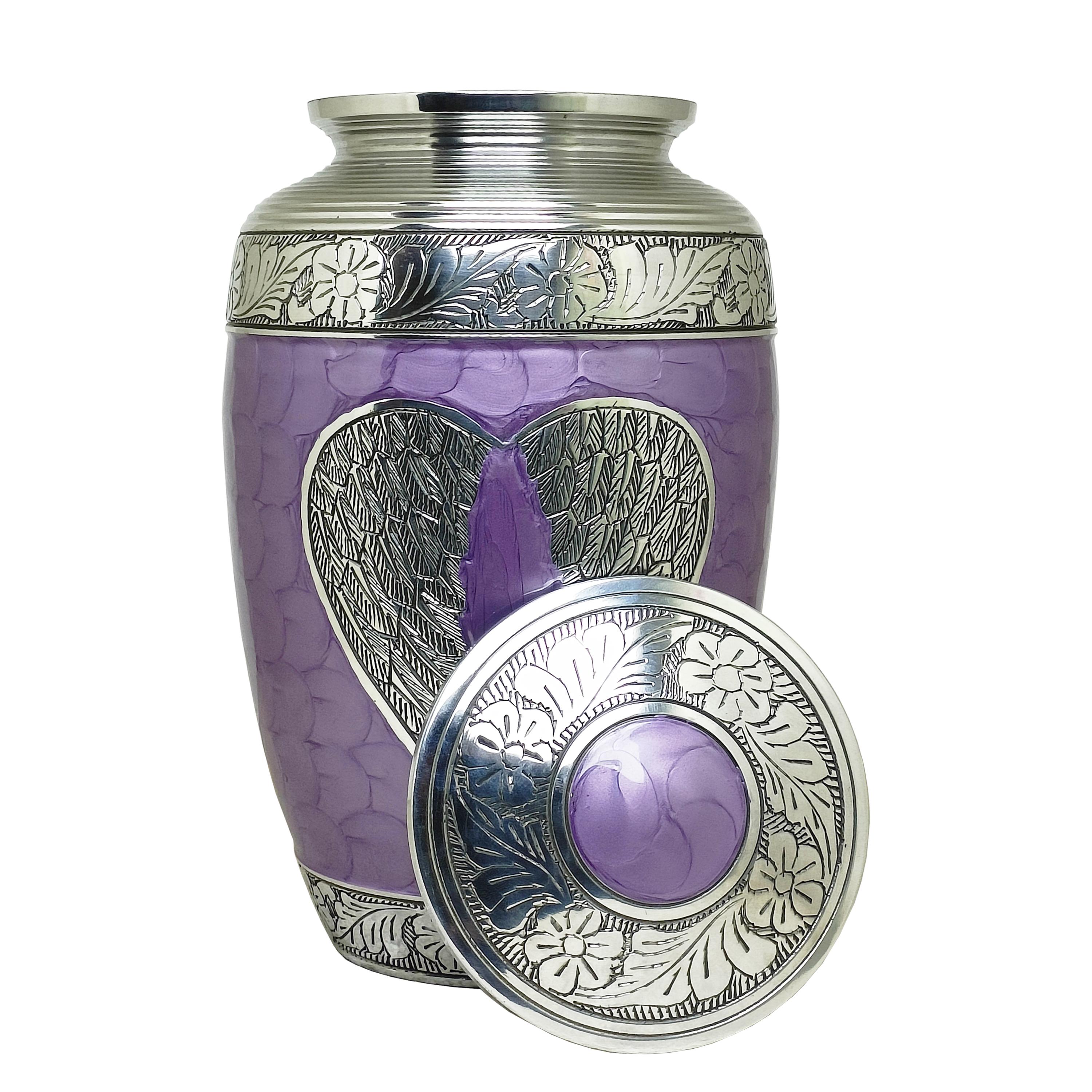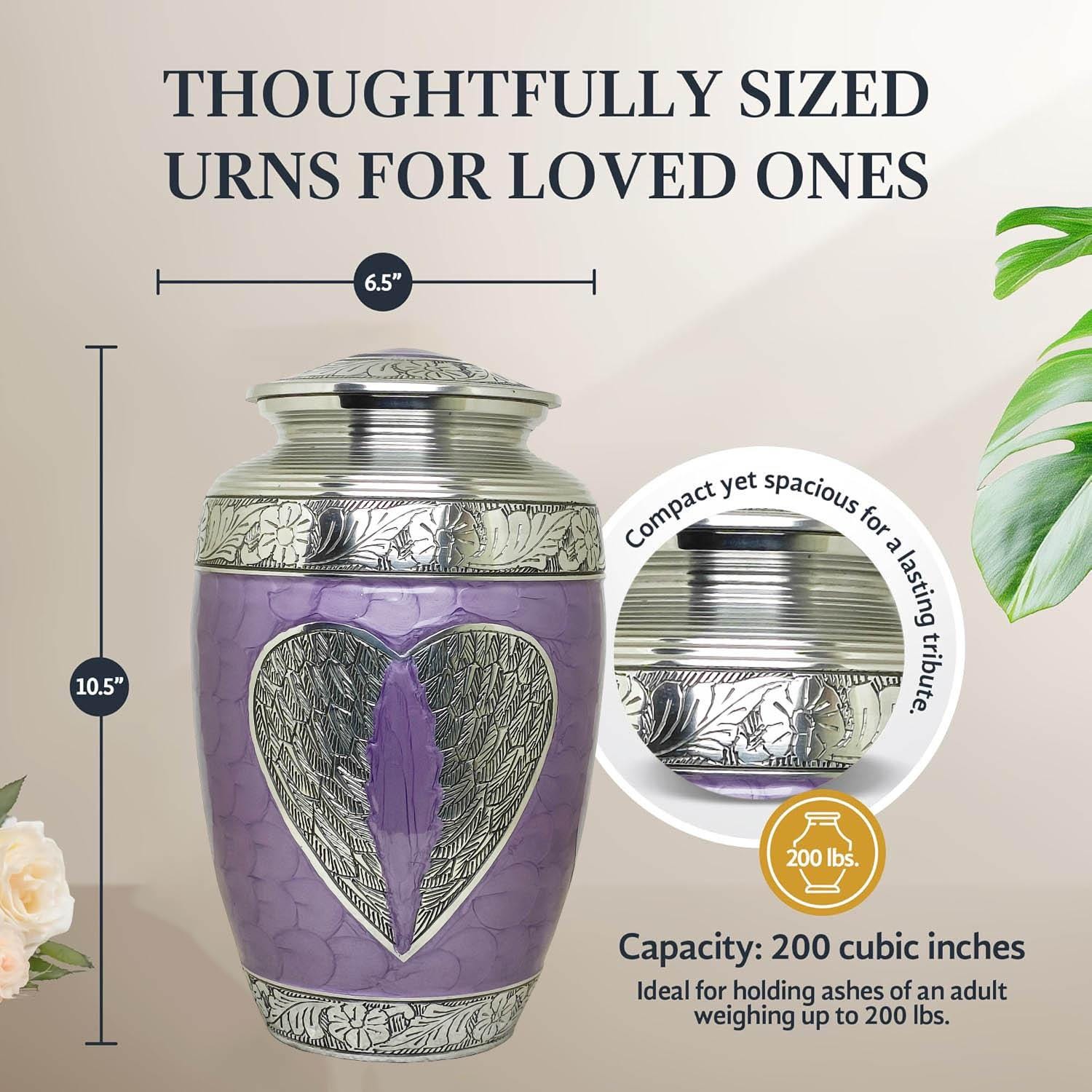 The Ample Eternal Memories Cremation Urn offers a dignified resting place for your loved one's ashes, crafted from premium aluminum with an elegant Meena coating finish. Measuring 6.5×6.5×10.5 inches, this beautifully designed urn features a timeless silver-toned exterior that radiates understated elegance. The durable aluminum construction ensures lasting quality while the smooth Meena coating provides a refined, polished appearance perfect for memorial display.