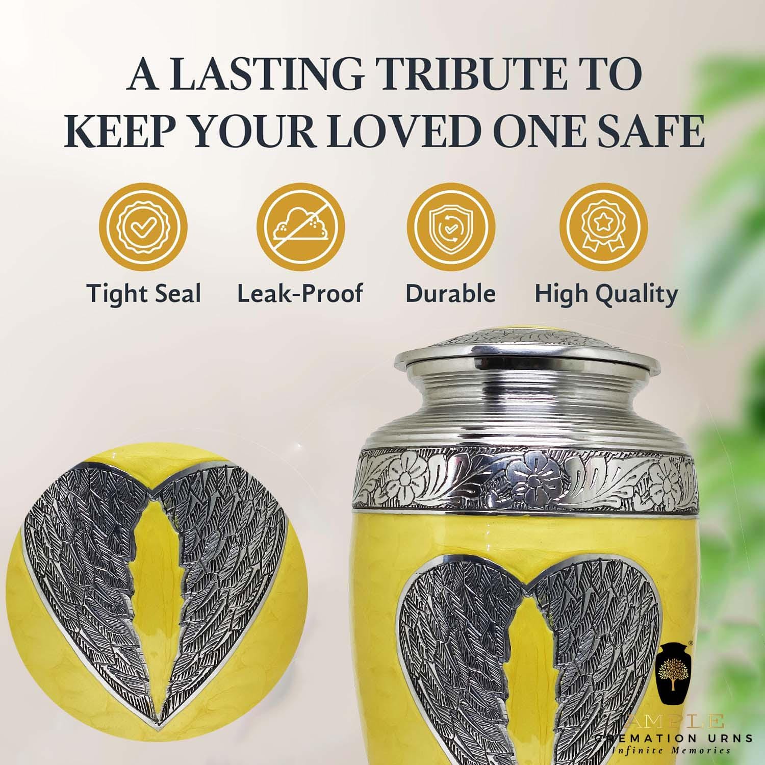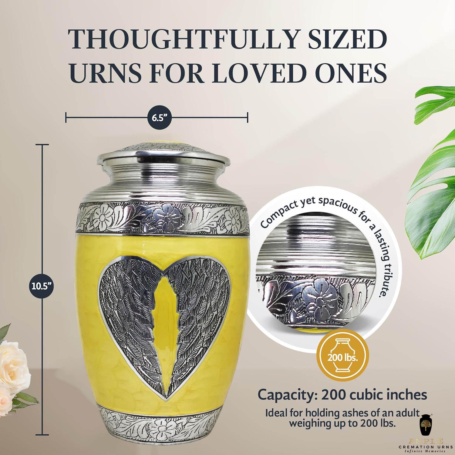 The Ample Infinite Memories Cremation Urn is a dignified and beautifully crafted memorial urn designed to honor your loved one's memory. Measuring 6.5×6.5×10.5 inches, this premium urn features a lustrous Meena-coated aluminum construction that combines timeless elegance with lasting durability.