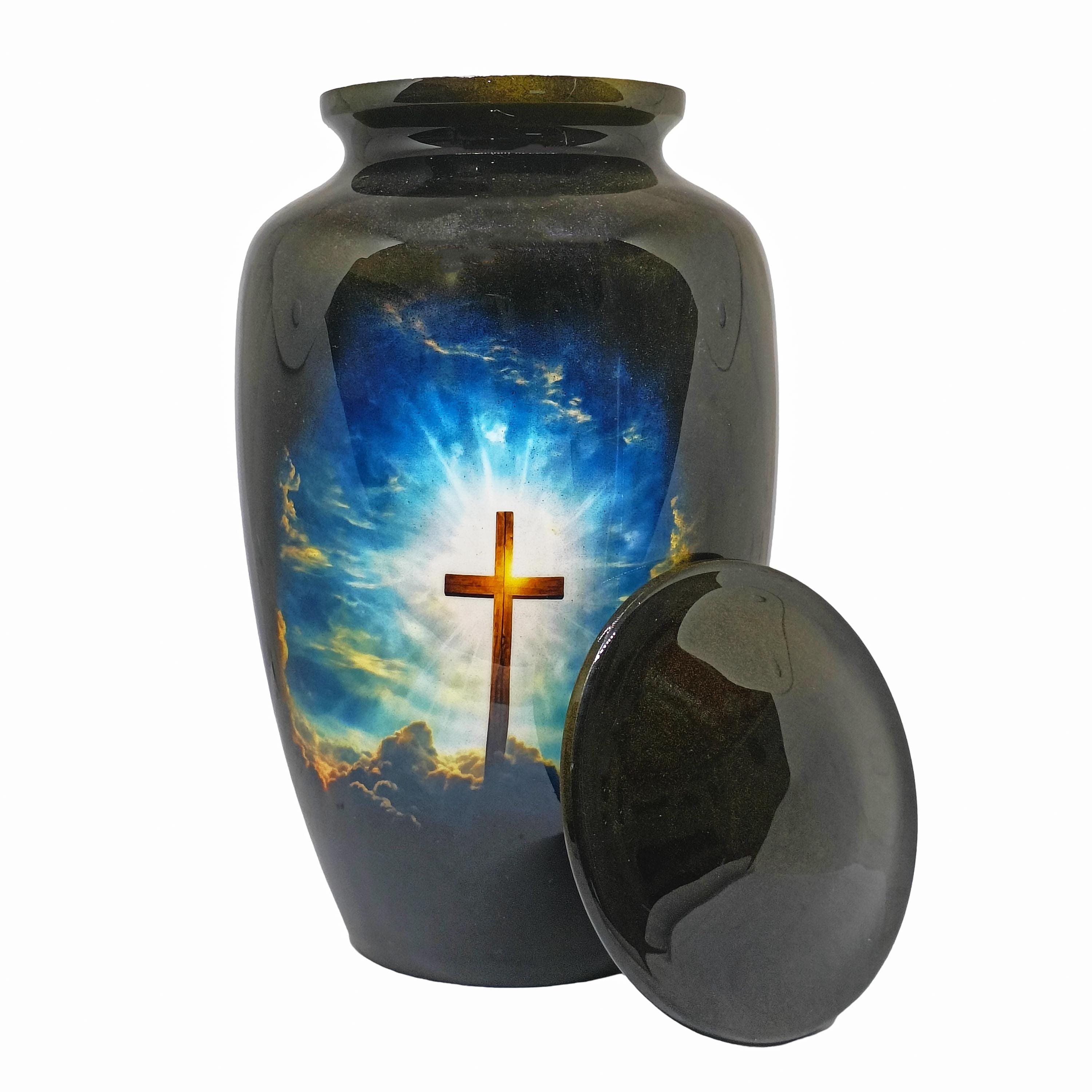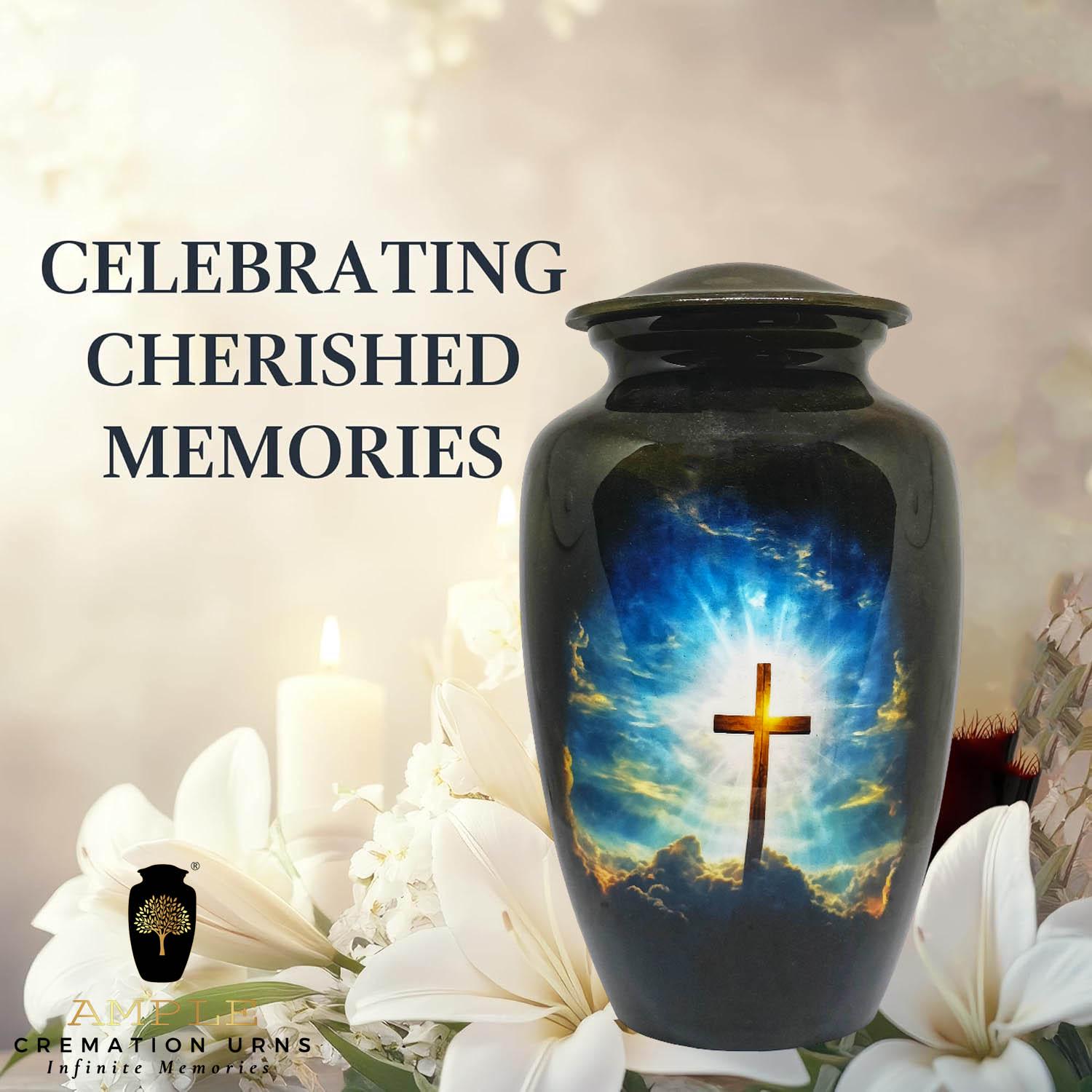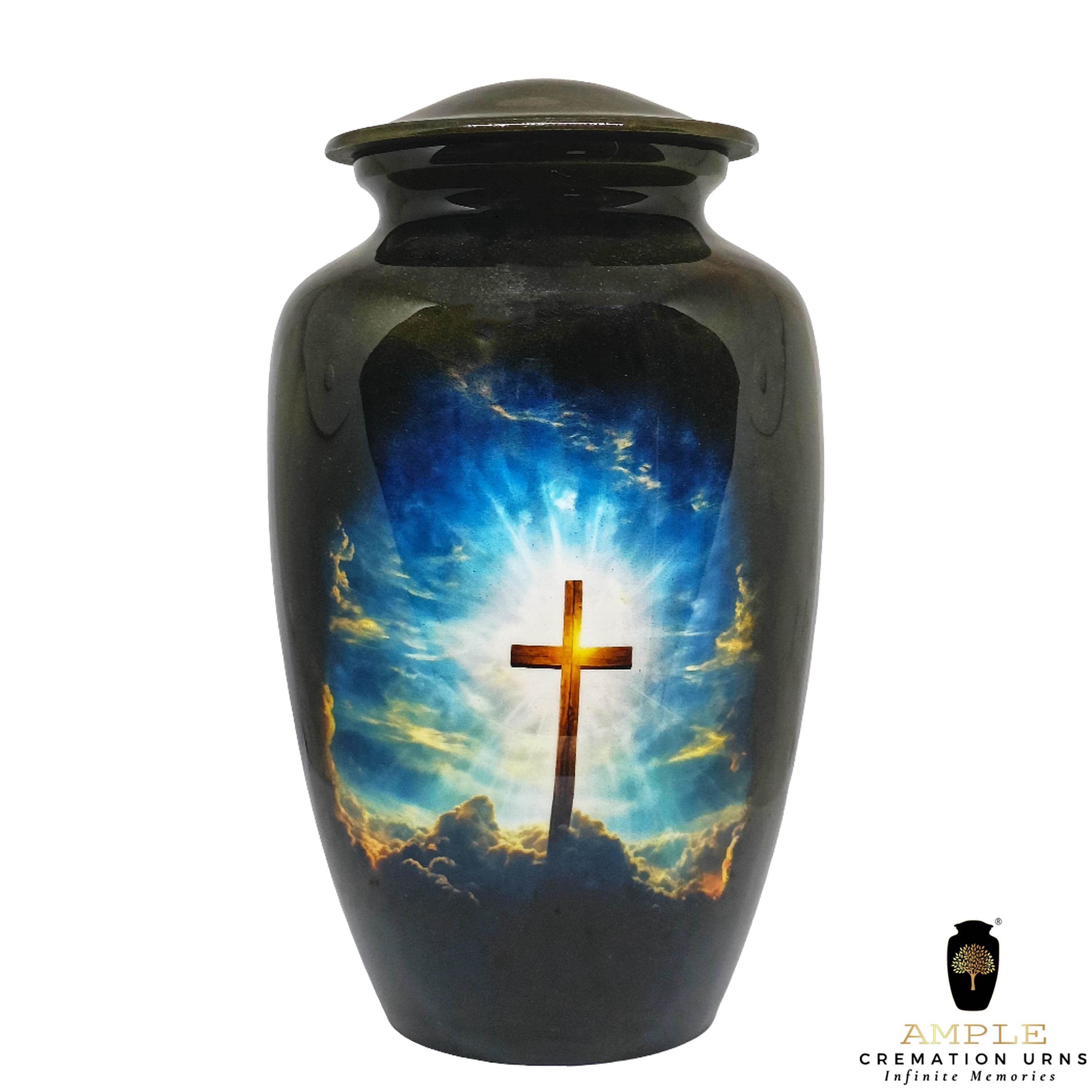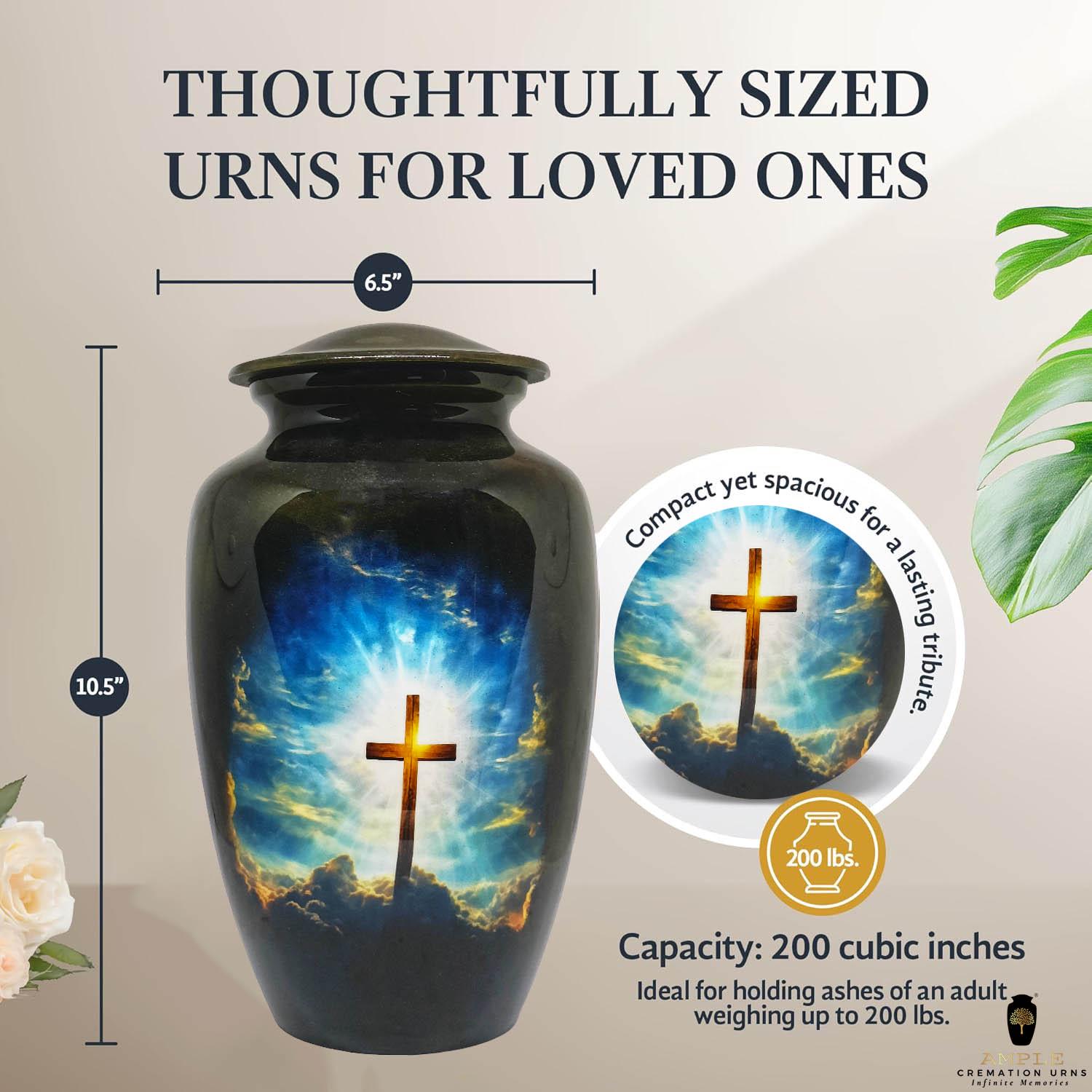 Our Ample Cremation Urns provide a dignified way to honor your loved one's memory. These premium aluminum urns are thoughtfully sized at 10.5" × 6.5" with a 200 cubic inch capacity, designed to securely hold ashes of adults up to 200 lbs while complementing your home decor.