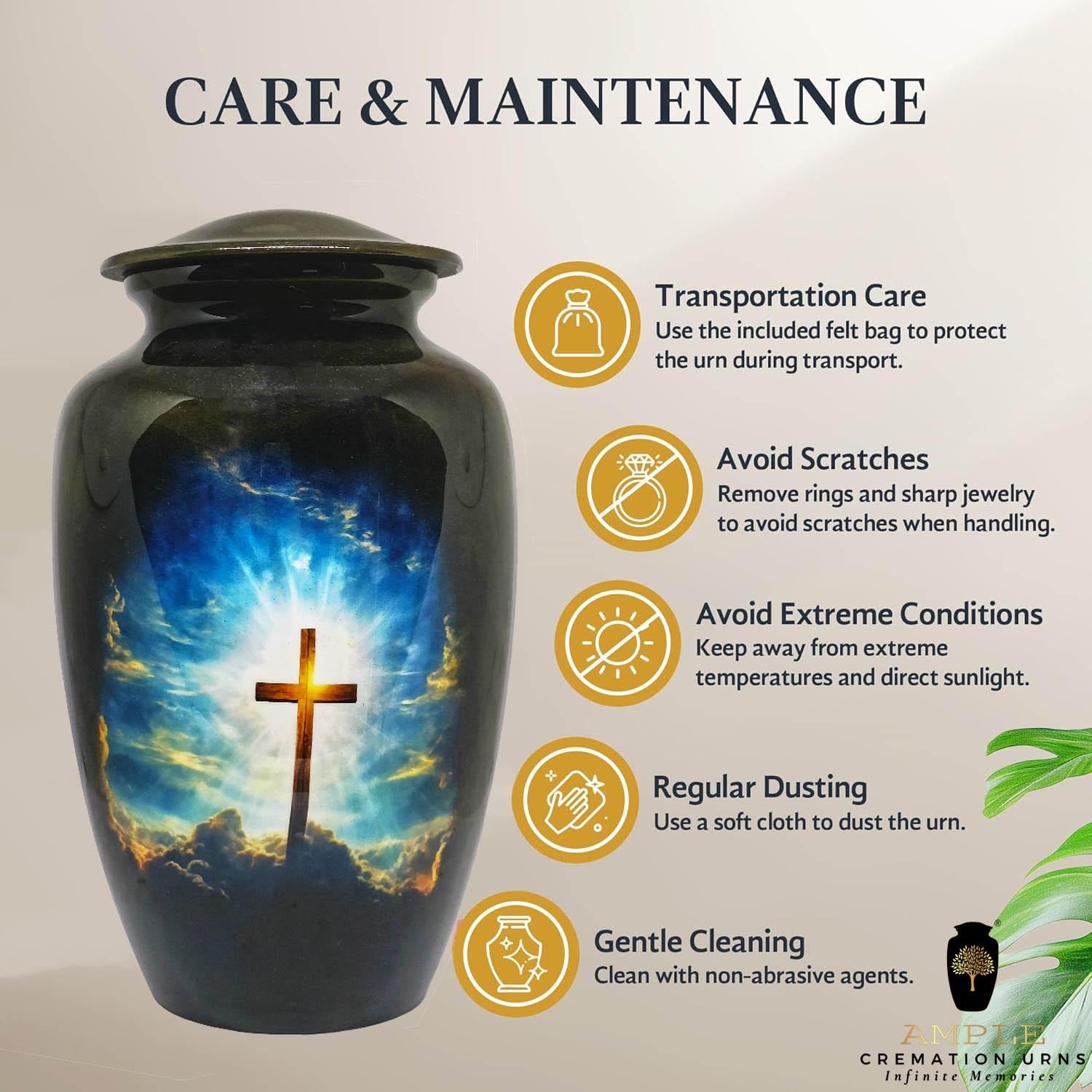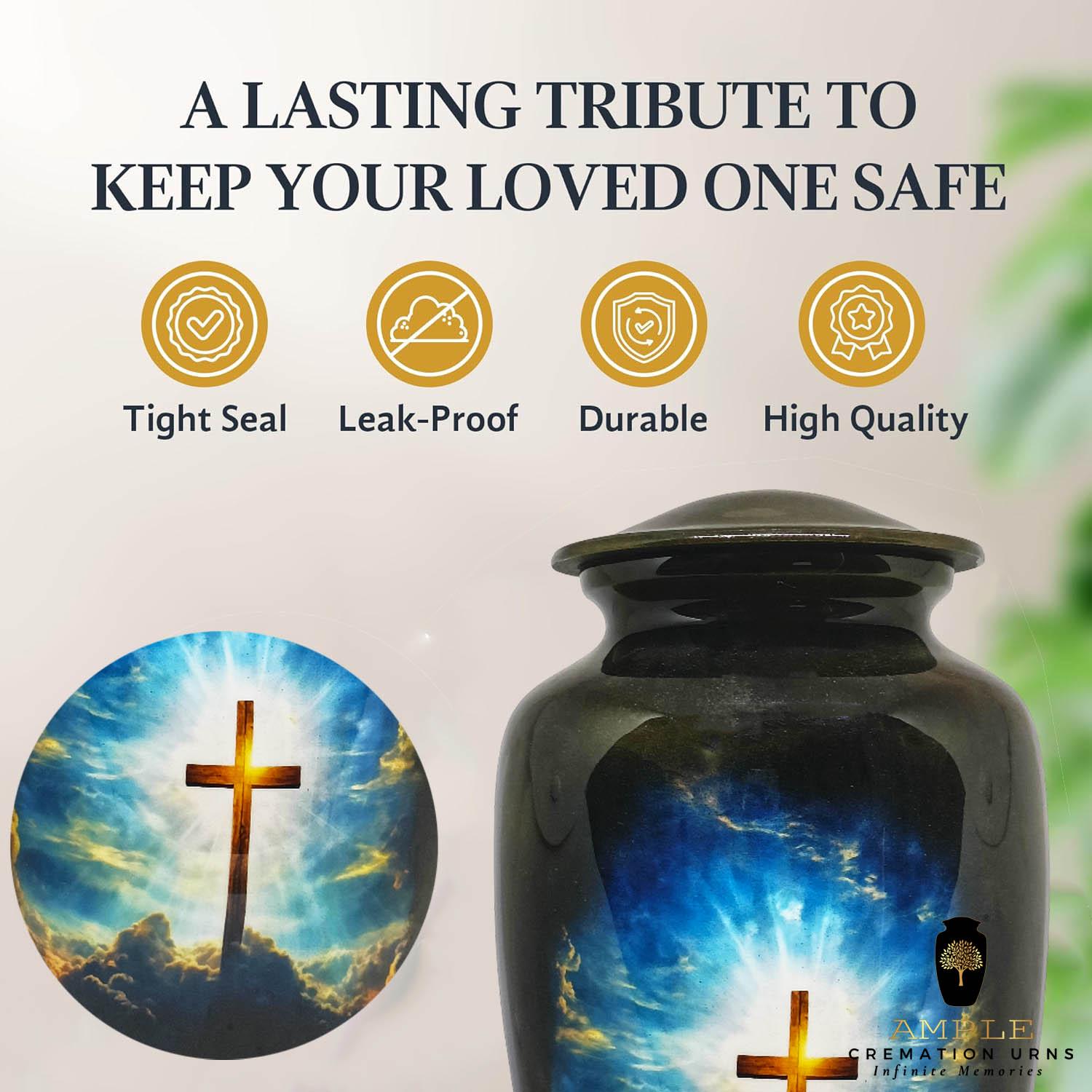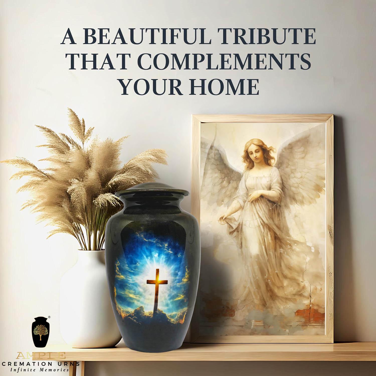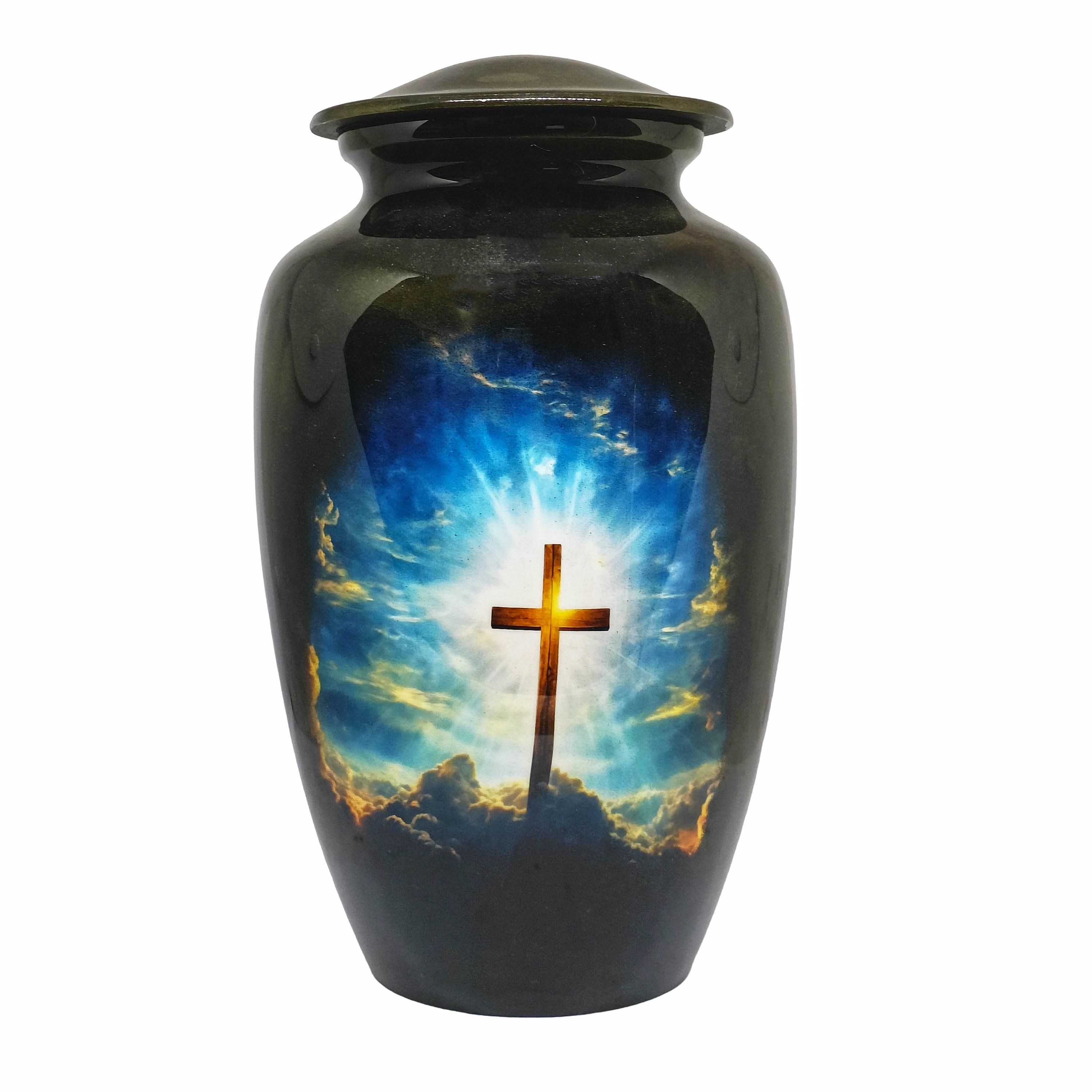 Our Ample Cremation Urns provide a dignified way to honor your loved one's memory. These premium aluminum urns are thoughtfully sized at 10.5" × 6.5" with a 200 cubic inch capacity, designed to securely hold ashes of adults up to 200 lbs while complementing your home decor.