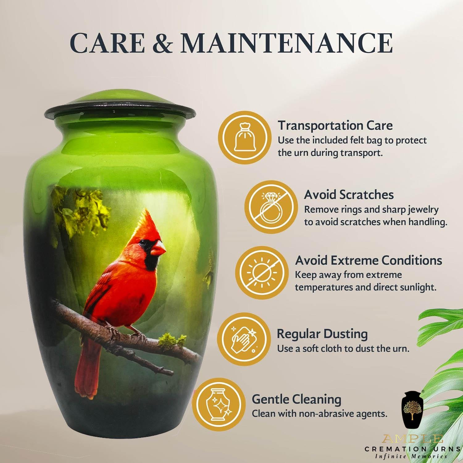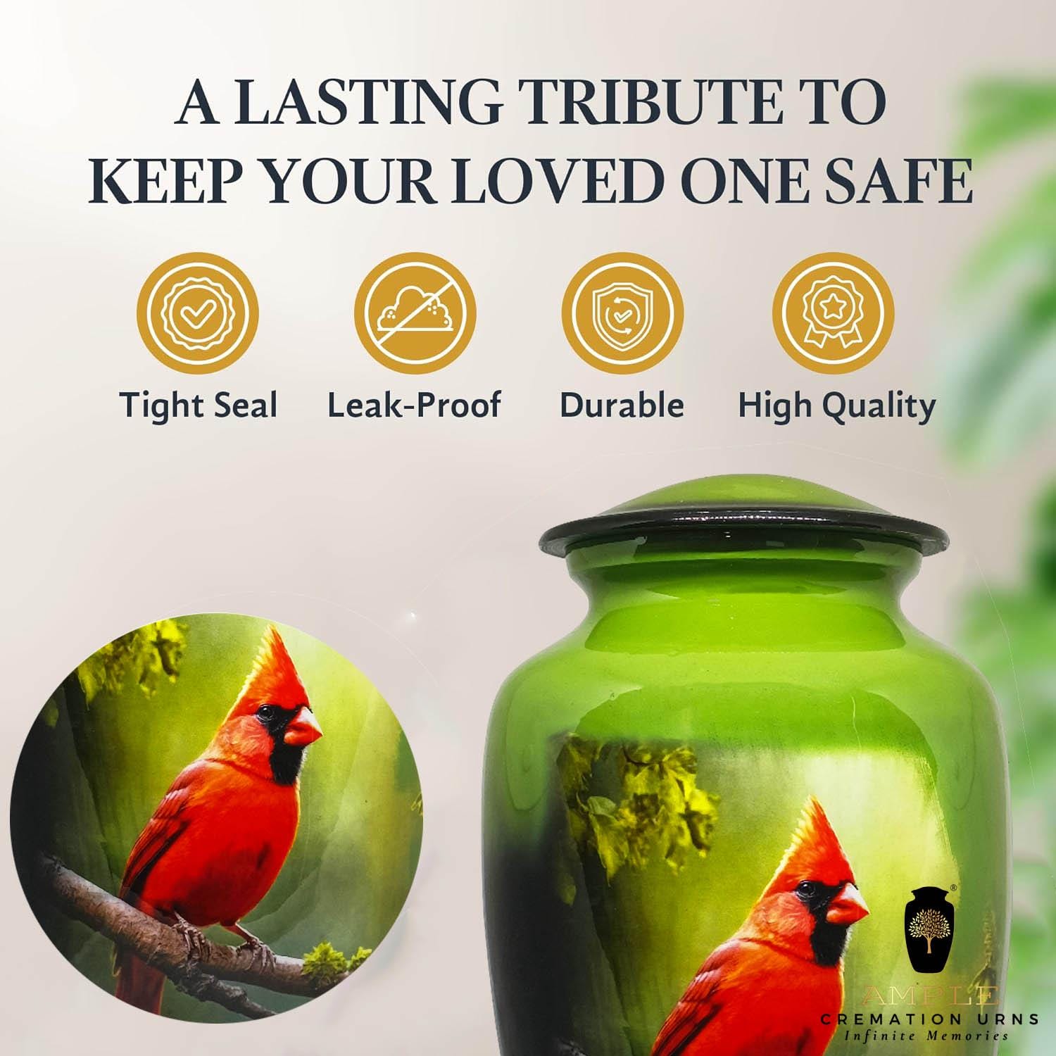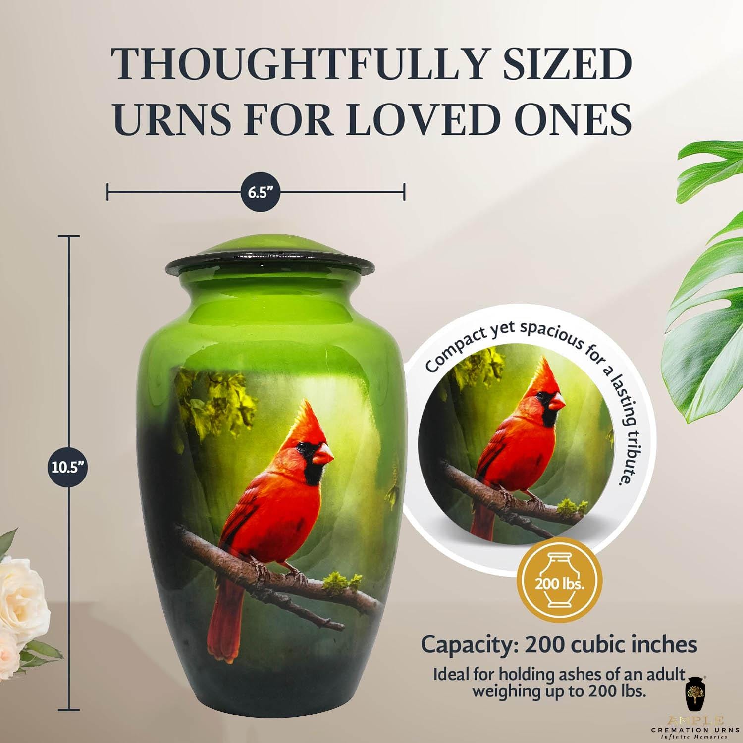 Our Ample Cremation Urns provide a dignified way to honor your loved one's memory. These premium aluminum urns are thoughtfully sized at 10.5" × 6.5" with a 200 cubic inch capacity, designed to securely hold ashes of adults up to 200 lbs while complementing your home decor.