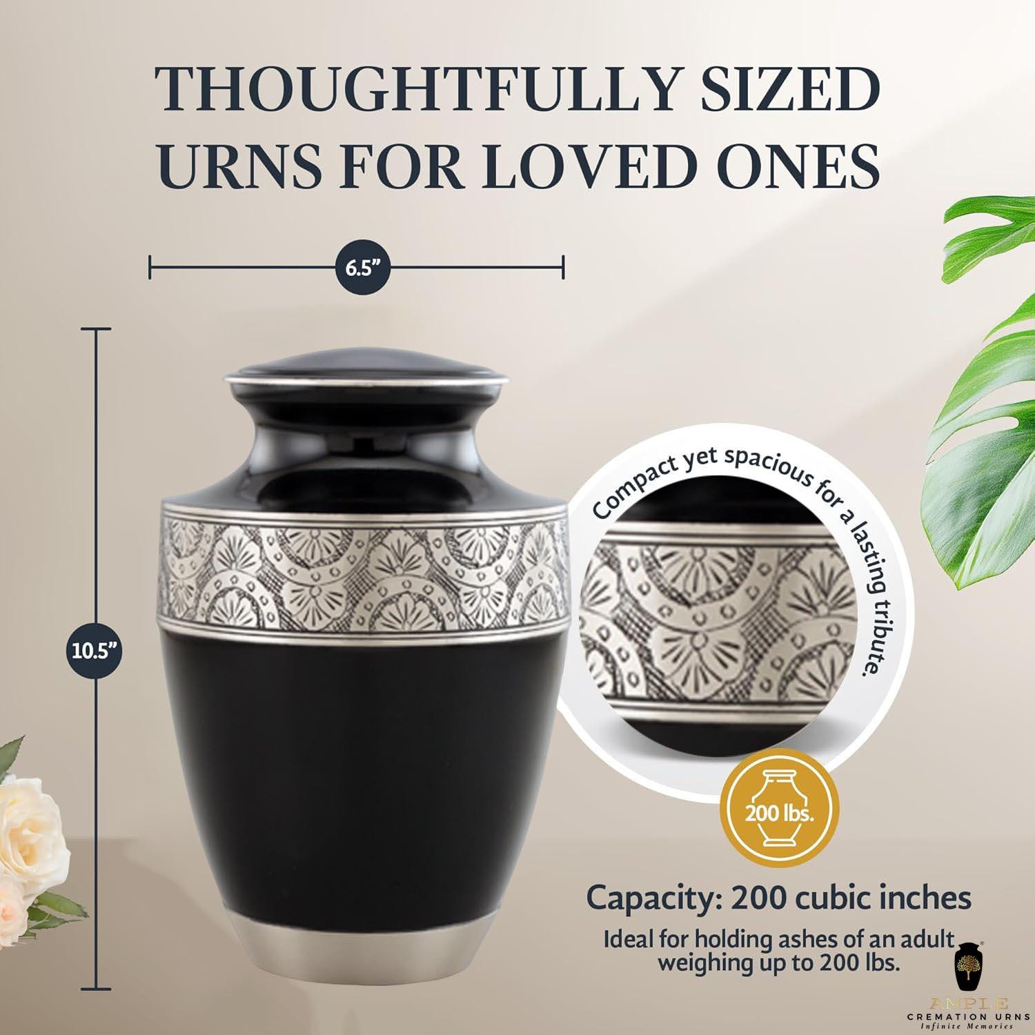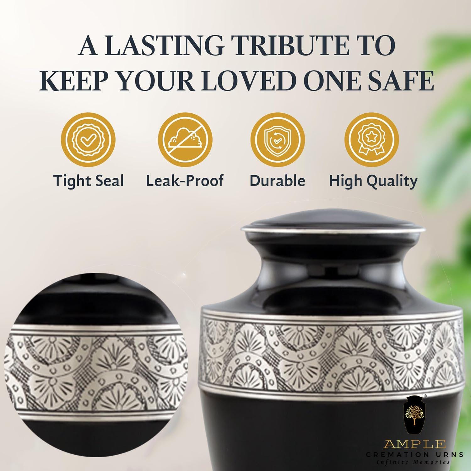 Ample Cremation Urns - Large (10.5"x6.5") - Leak-Proof Aluminum Memorial Urns w/Engraving Option