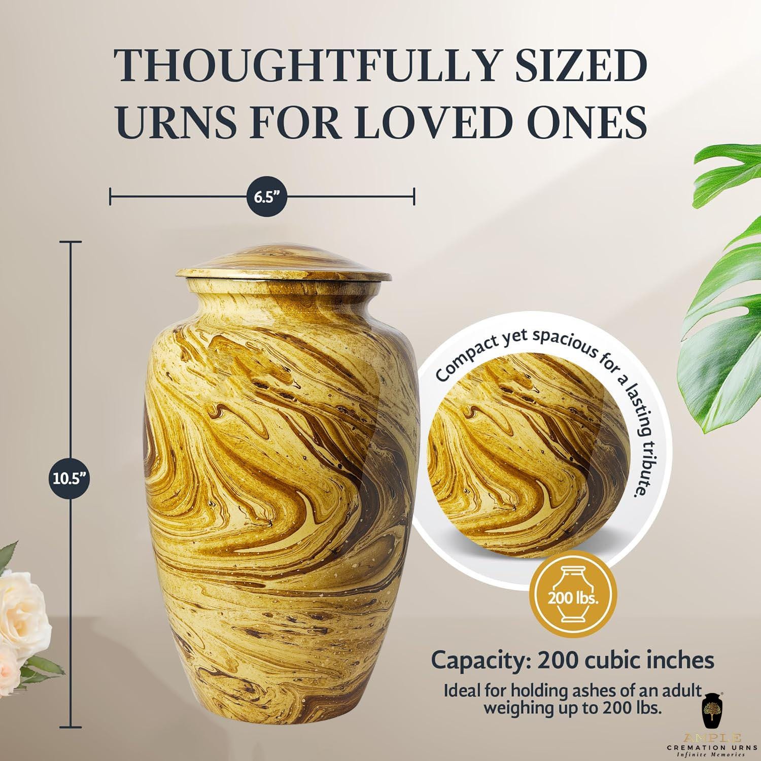 Capacity: 220 cubic inches (holds ashes for adults up to 200 lbs)