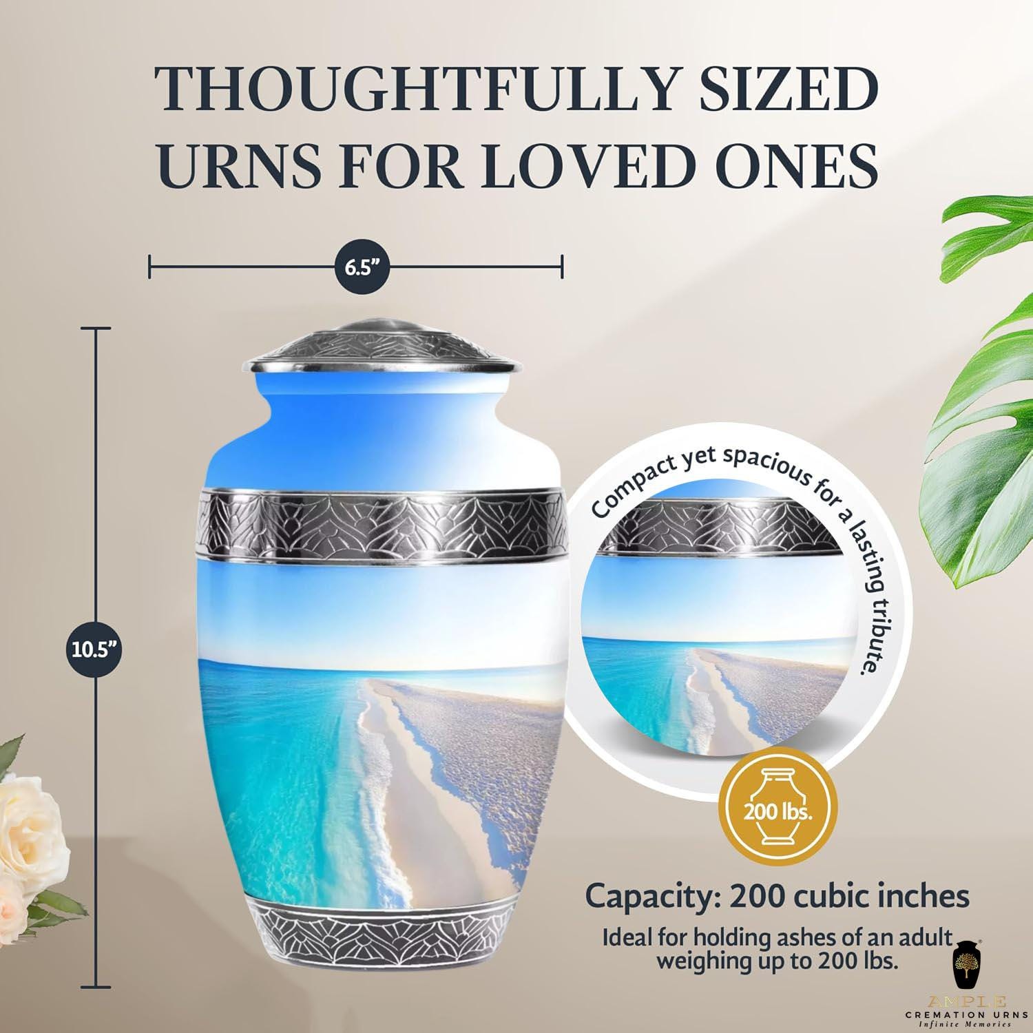 Capacity: 220 cubic inches (holds ashes for adults up to 200 lbs)