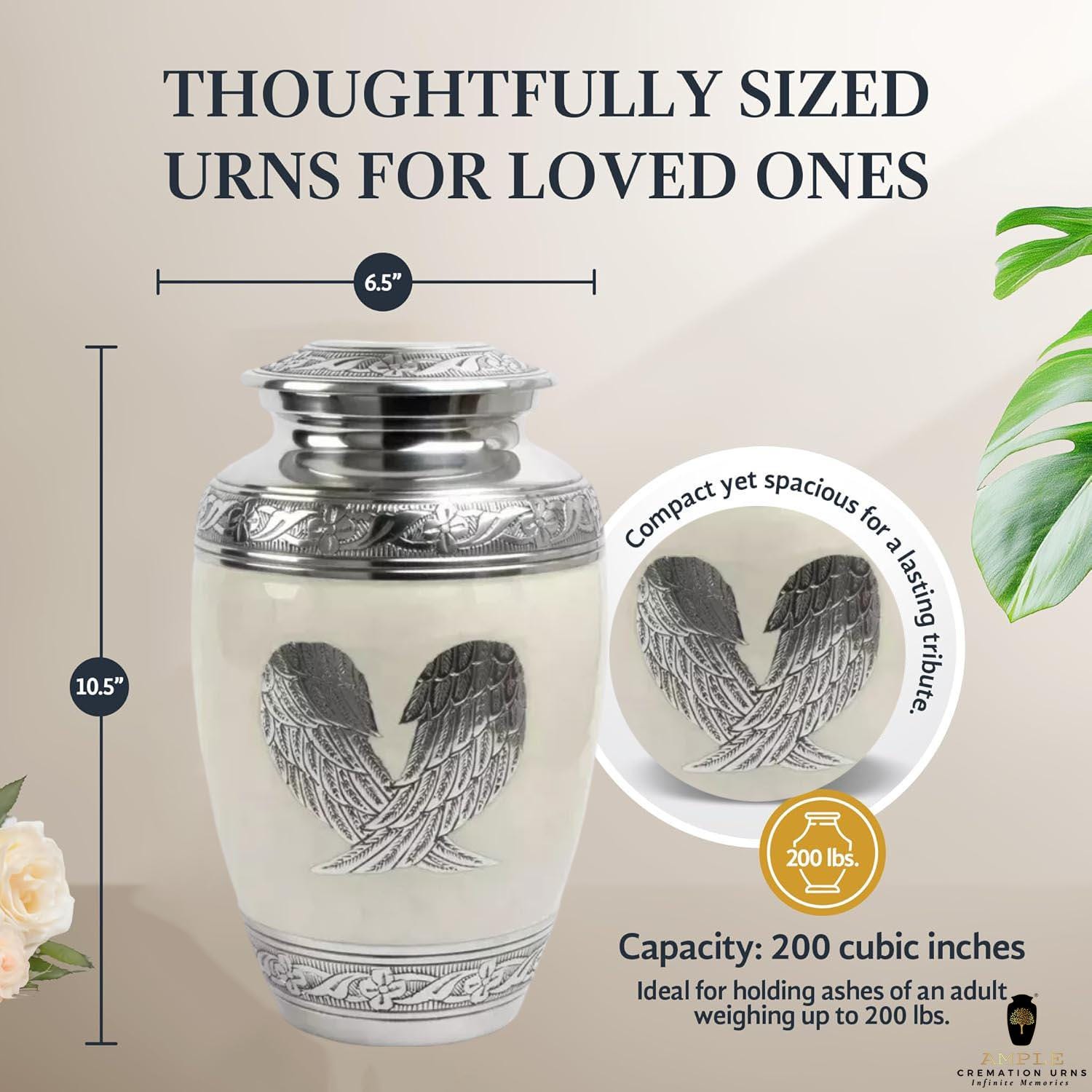 Capacity: 220 cubic inches (holds ashes for individuals up to 200 lbs)