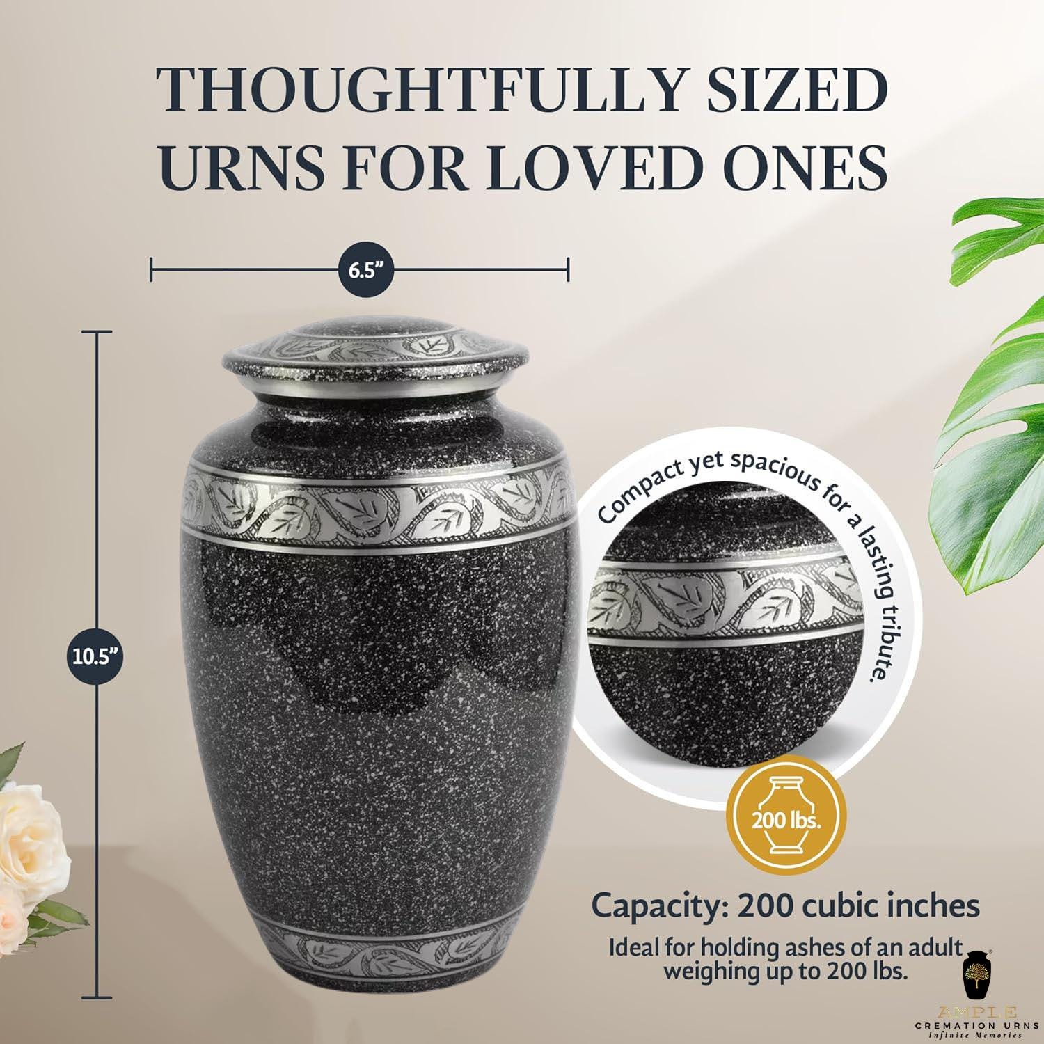 Capacity: 220 cubic inches (holds ashes for individuals up to 200 lbs)