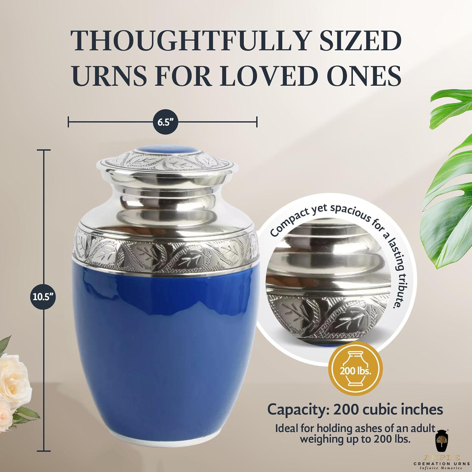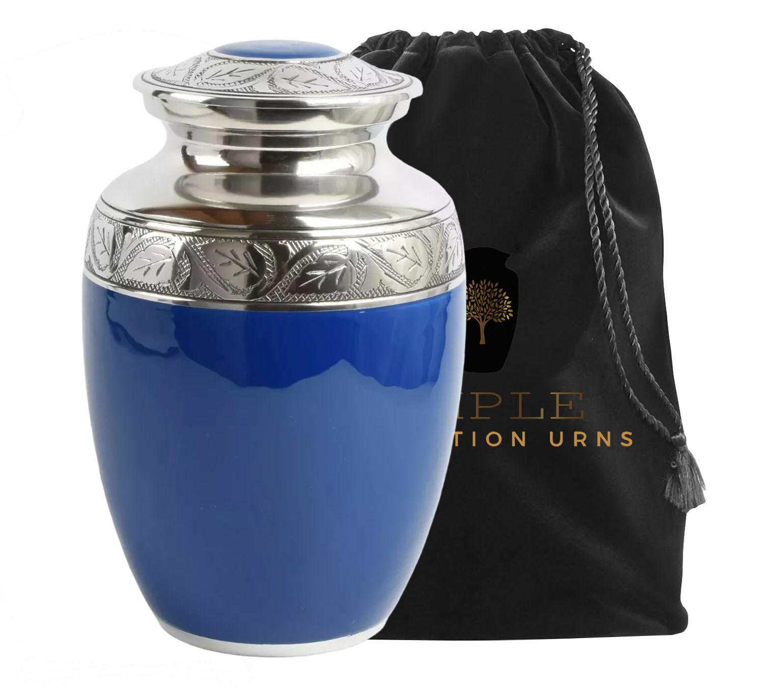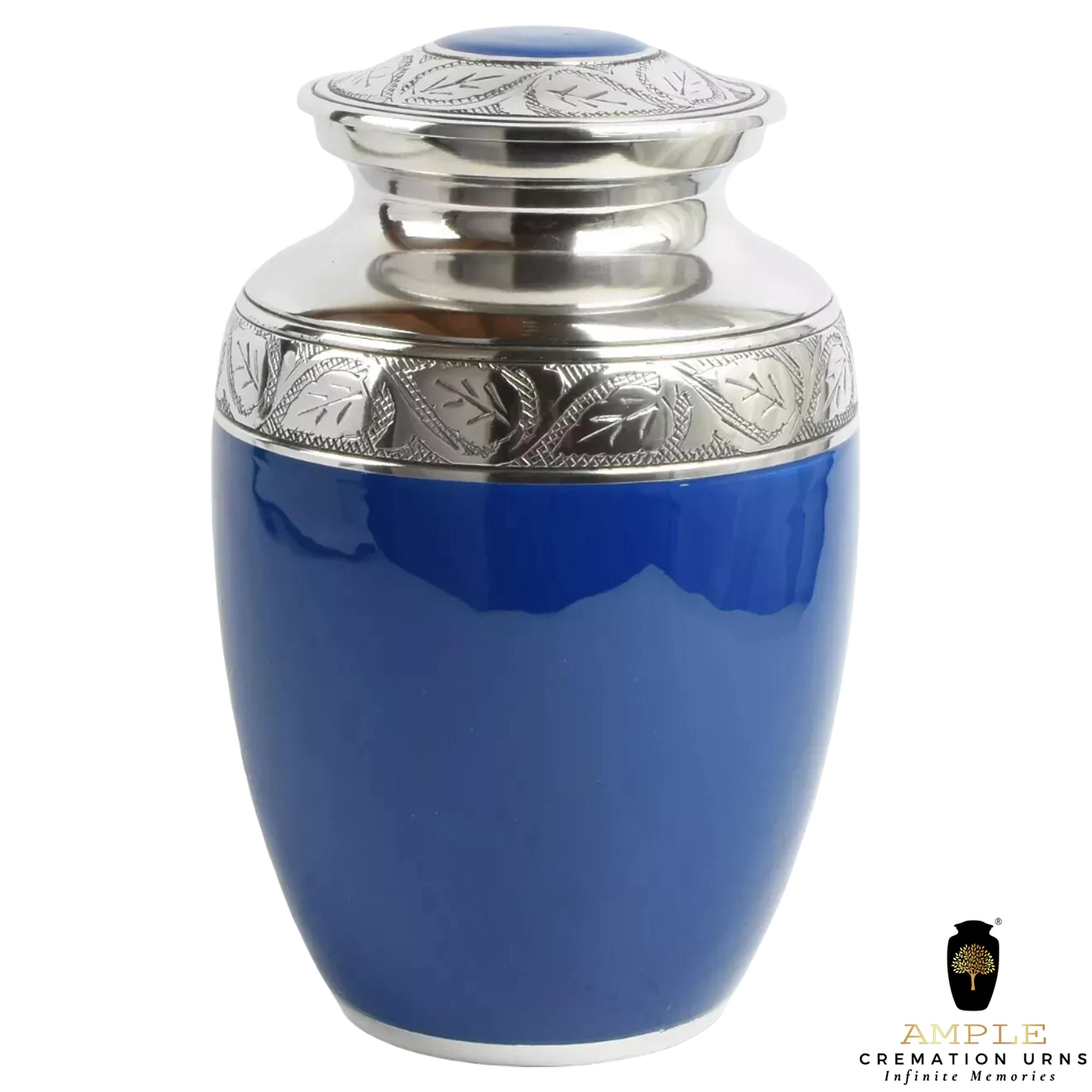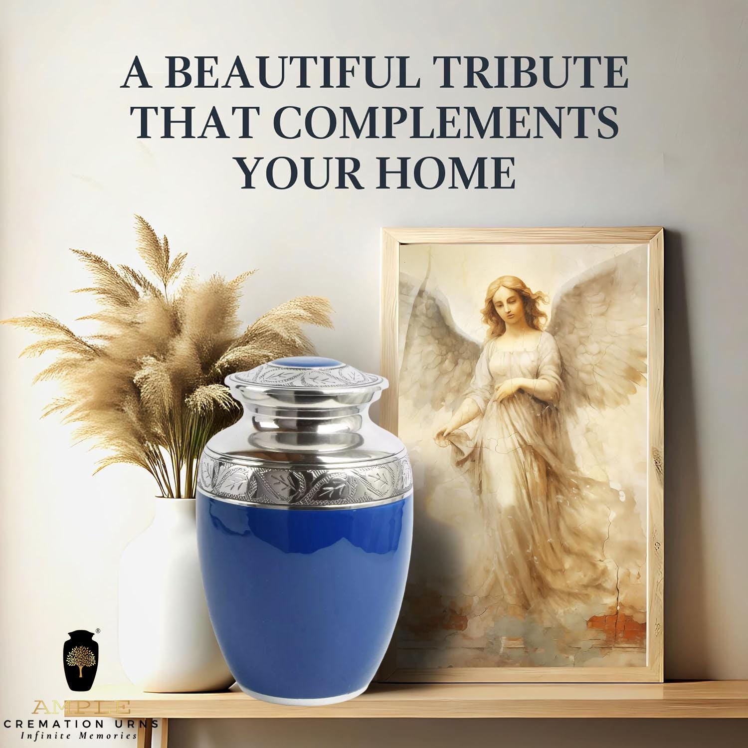 This elegant aluminum cremation urn from Ample Cremation Urns combines timeless craftsmanship with thoughtful functionality. Featuring a traditional Meena coating, the urn displays exquisite handcrafted detailing in a rich, lustrous finish – creating a beautiful memorial piece that honors your loved one with grace.