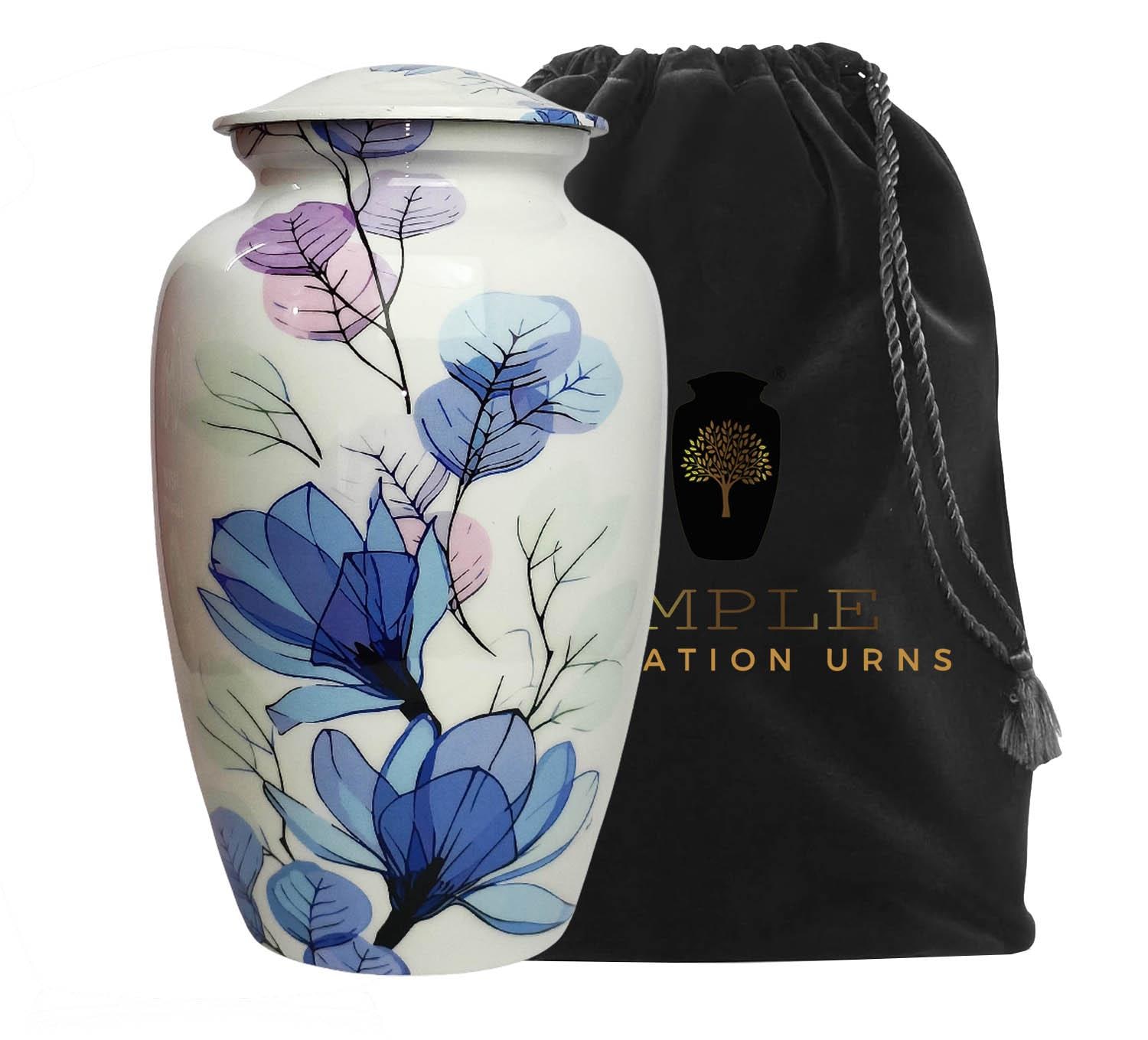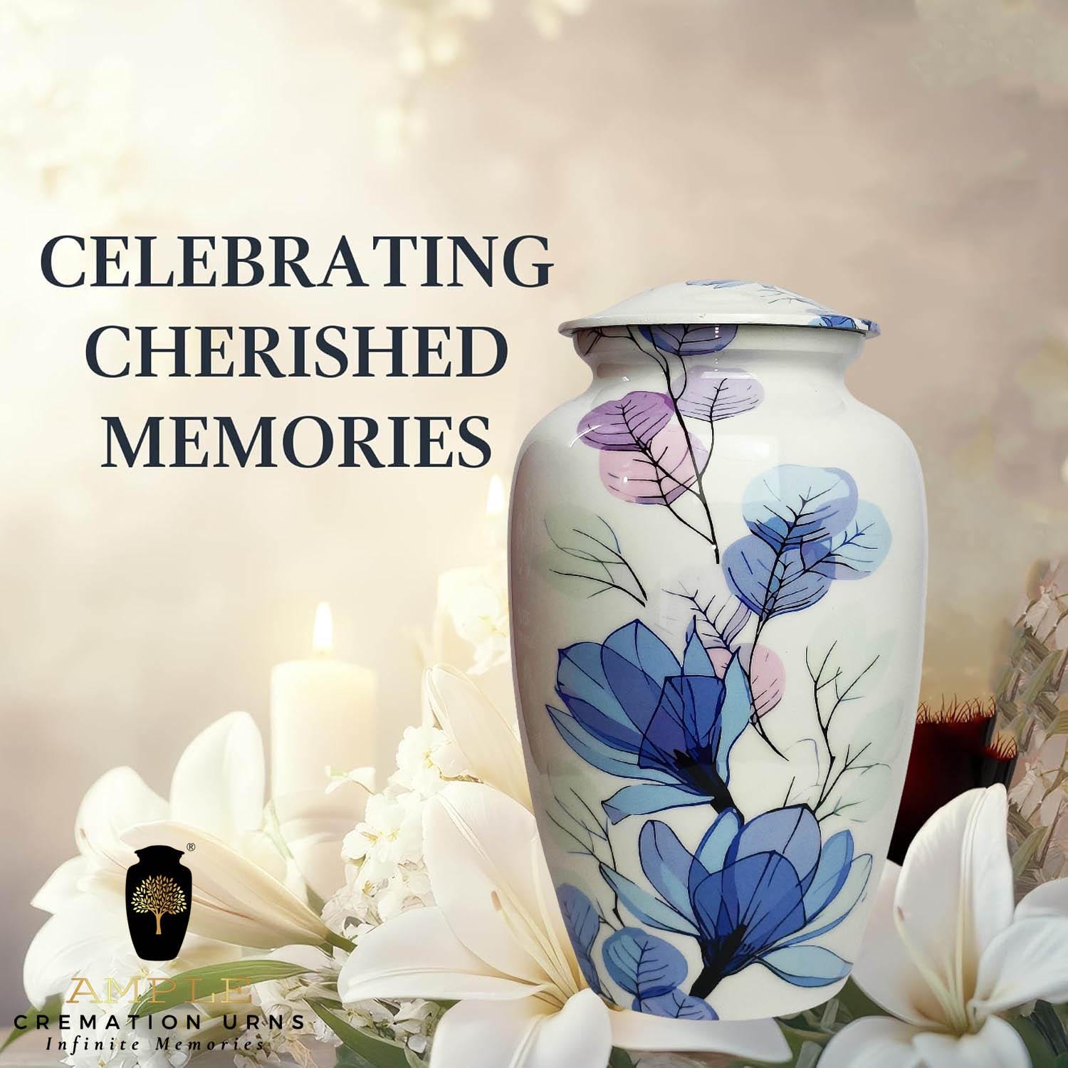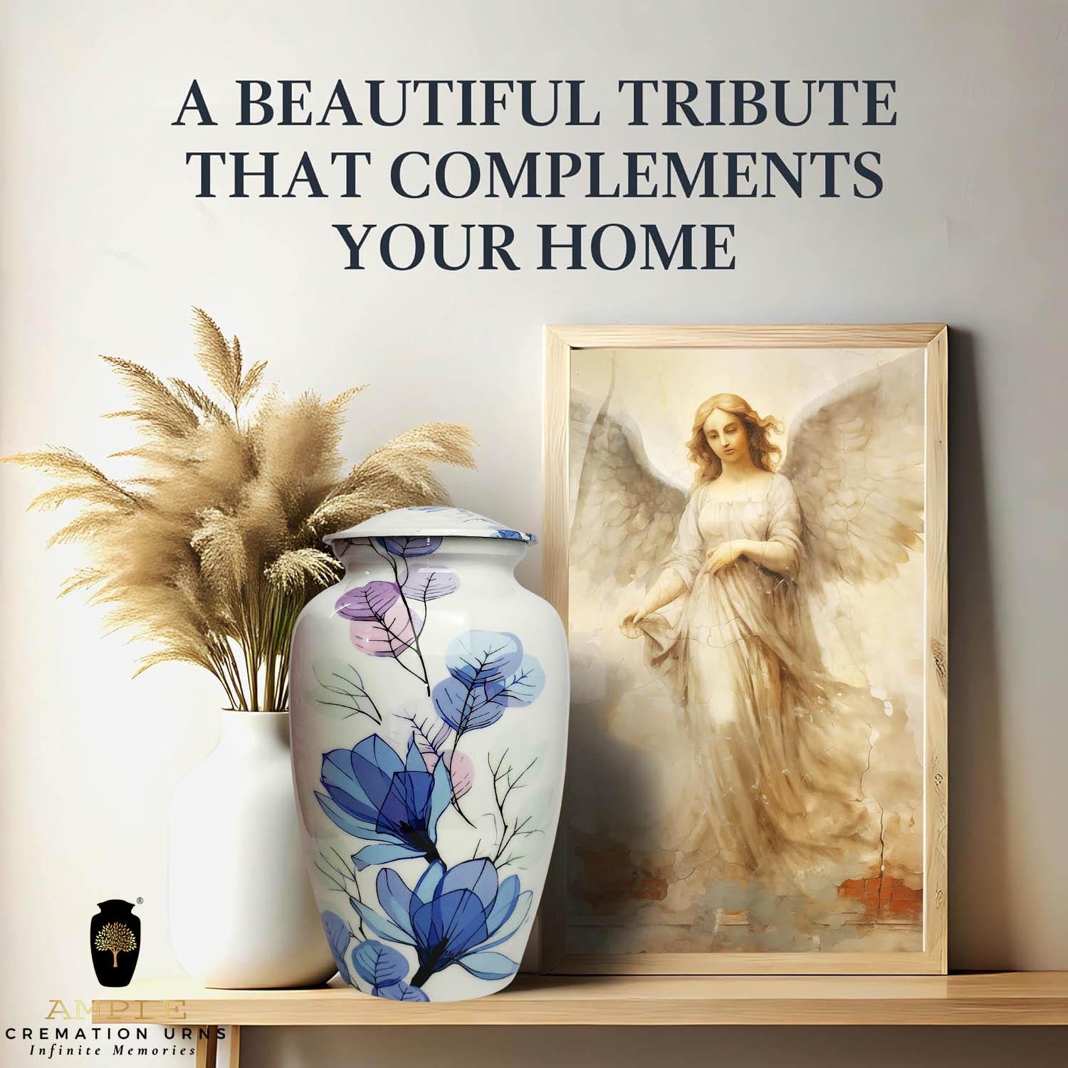 The modern yet delicate floral design brings a calming presence, making it a perfect tribute for honoring a life well lived. Whether displayed at home or used during a memorial service, this urn offers both elegance and durability.