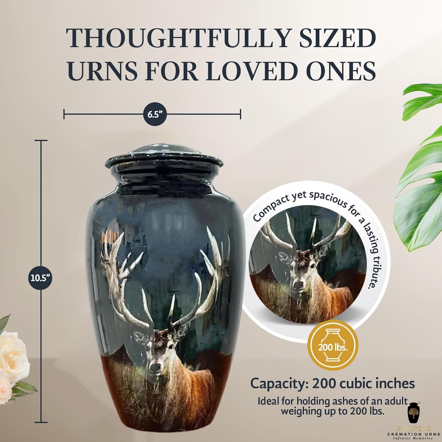 Large Urn: 10.5" x 6.5" | 220 cubic inch capacity (holds ashes for adults up to 200 lbs)