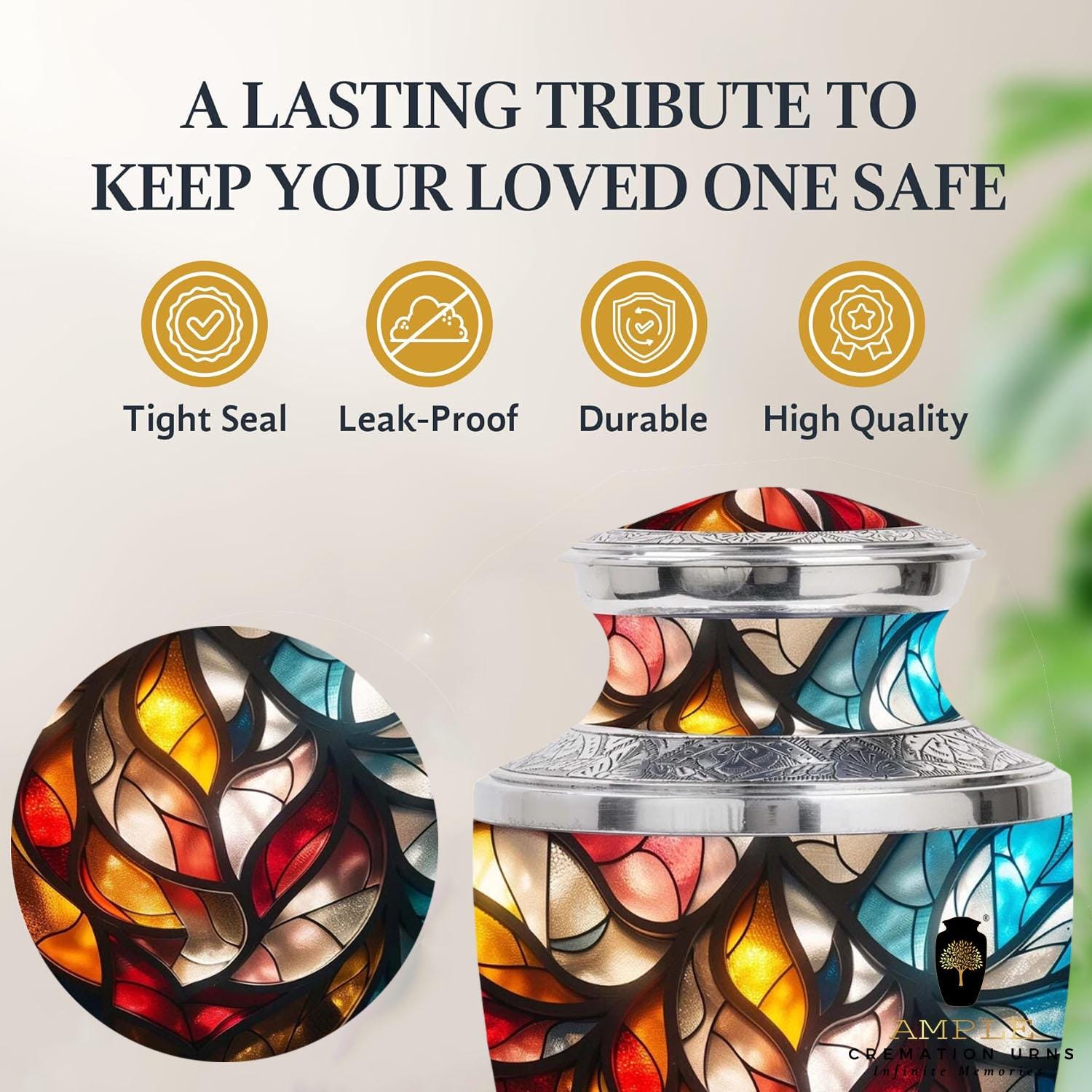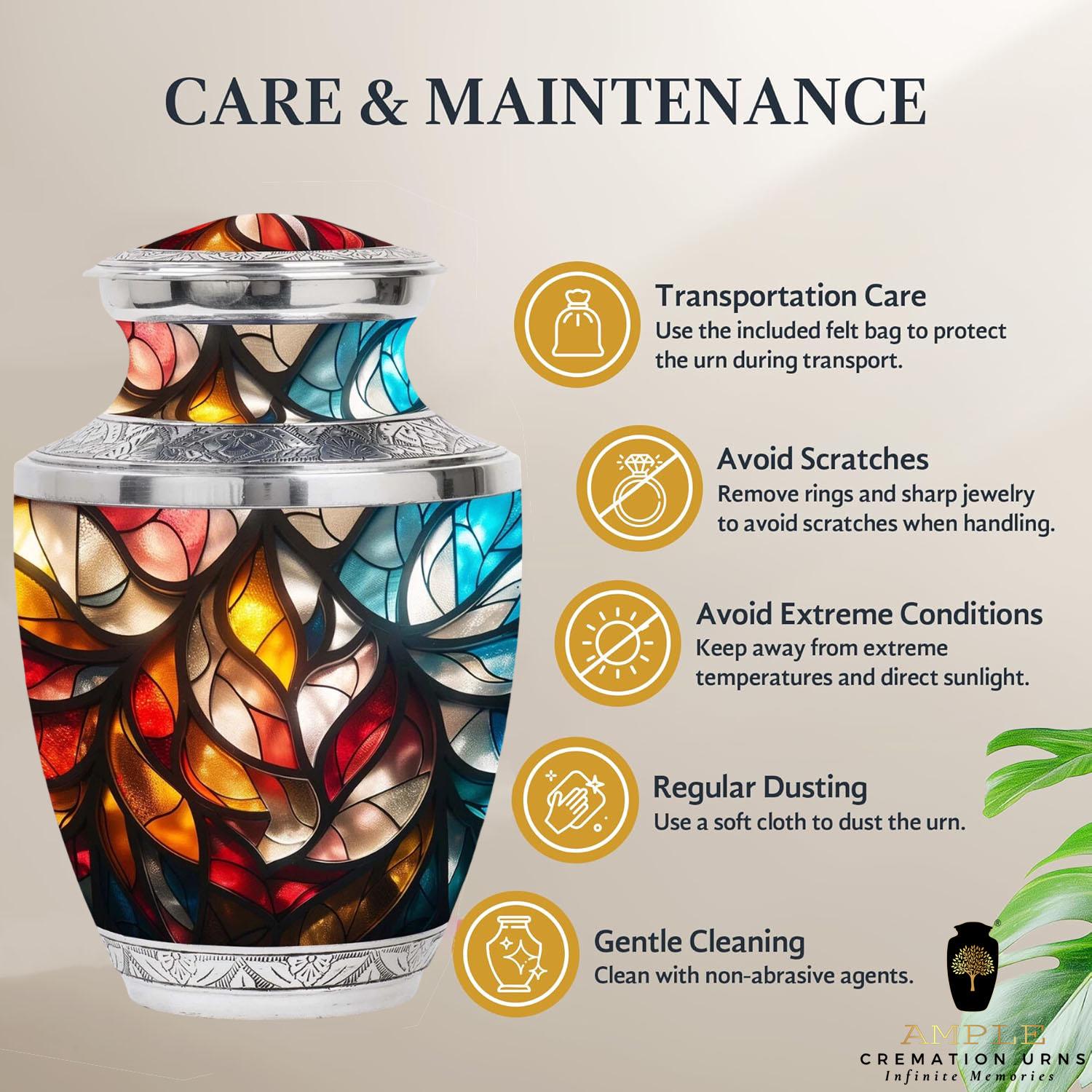 Ample Cremation Urns presents our "Eternal Grace" collection, featuring premium aluminum urns designed to honor your loved one with quiet dignity. Each urn is finished with our signature Meena coating, a traditional enamel technique that creates a lustrous, museum-quality finish with delicate detailing.