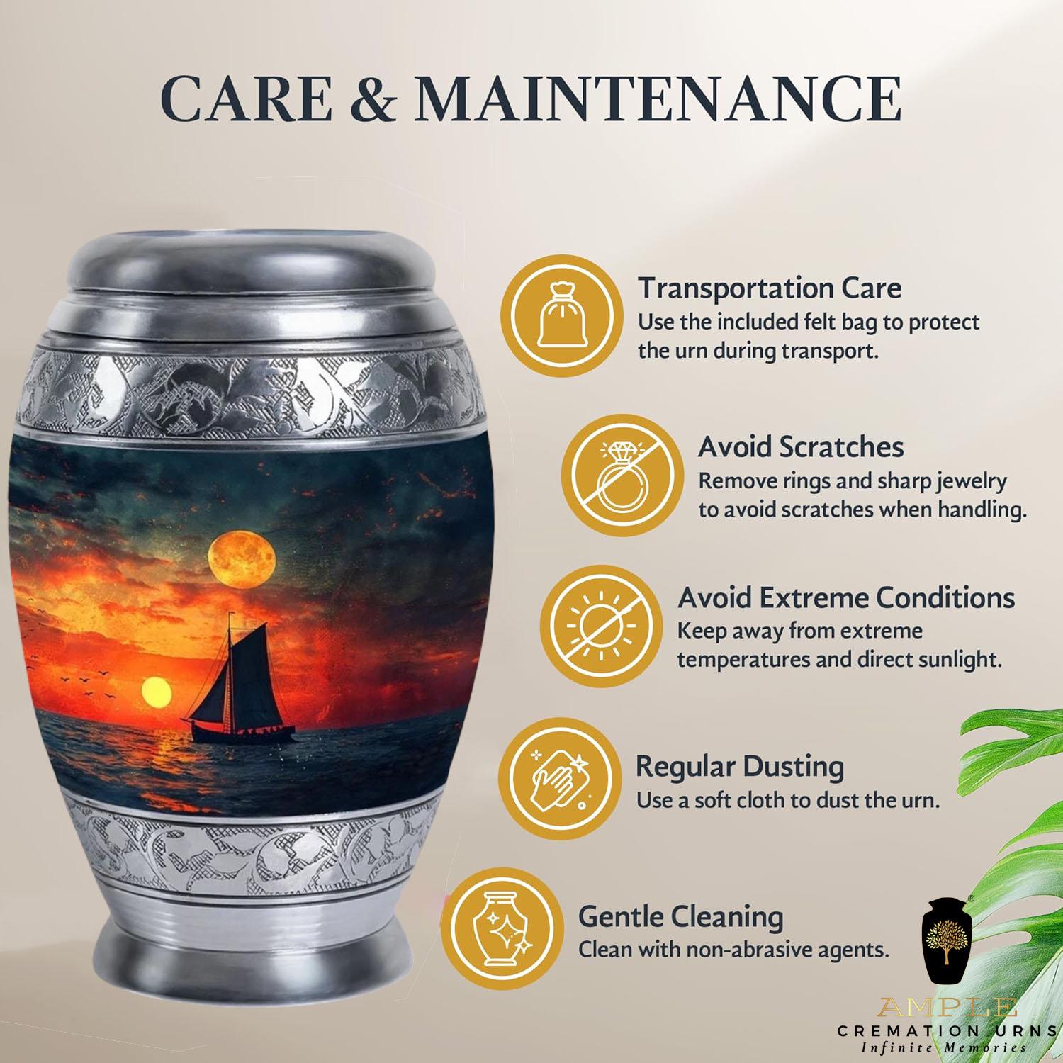 Ample Cremation Urns presents our "Serenity Collection" of premium aluminum urns, designed to provide a dignified resting place for your loved one. Each urn features our signature Meena coating, a traditional enamel technique that creates a lustrous, heirloom-quality finish with intricate detailing.