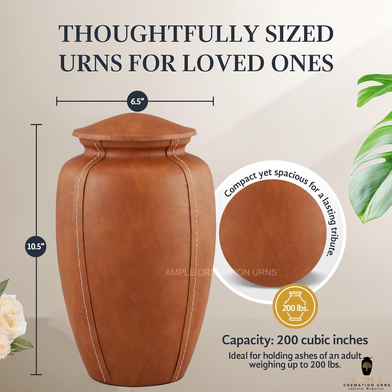 ▸ Capacity: 220 cubic inches (holds ashes for adults up to 200 lbs)