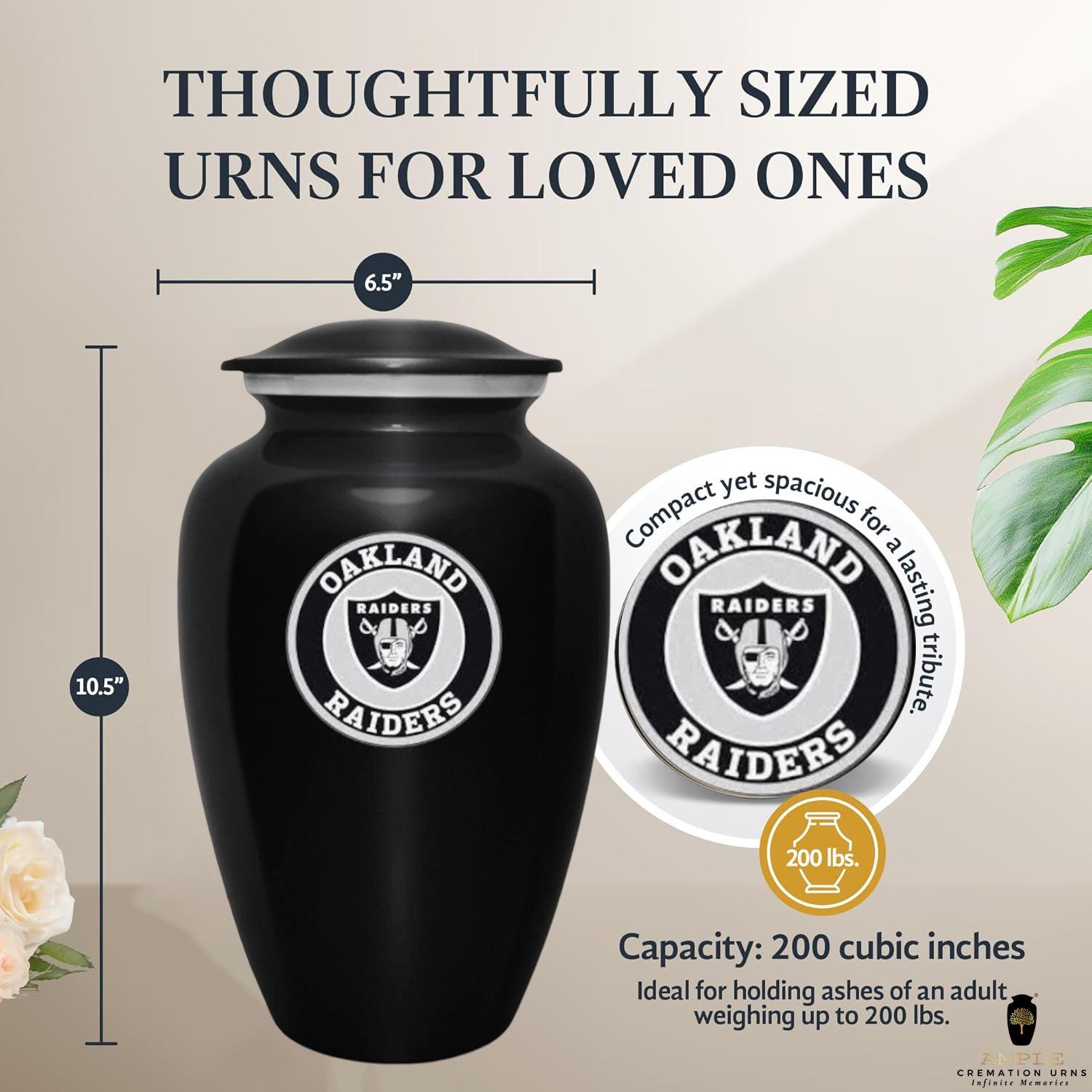 Capacity: 220 cubic inches (holds ashes for individuals up to 200 lbs)