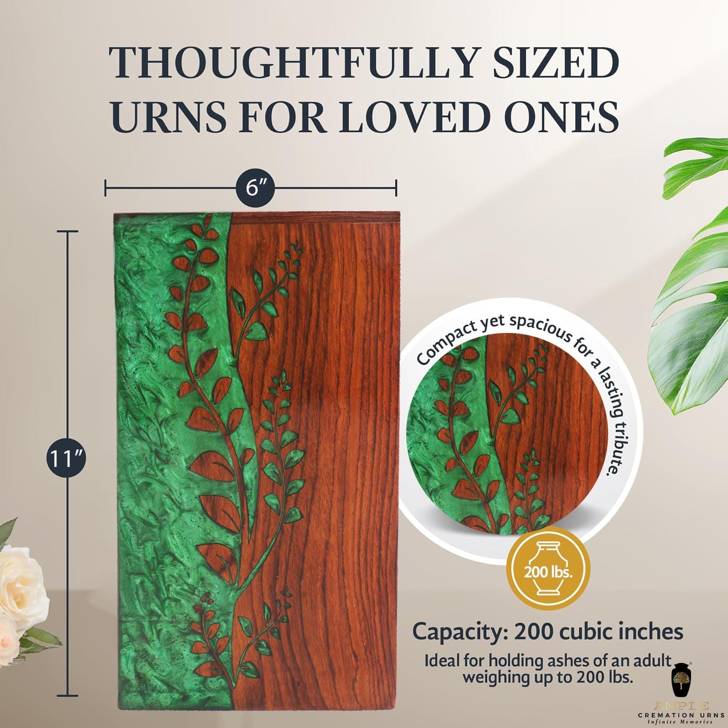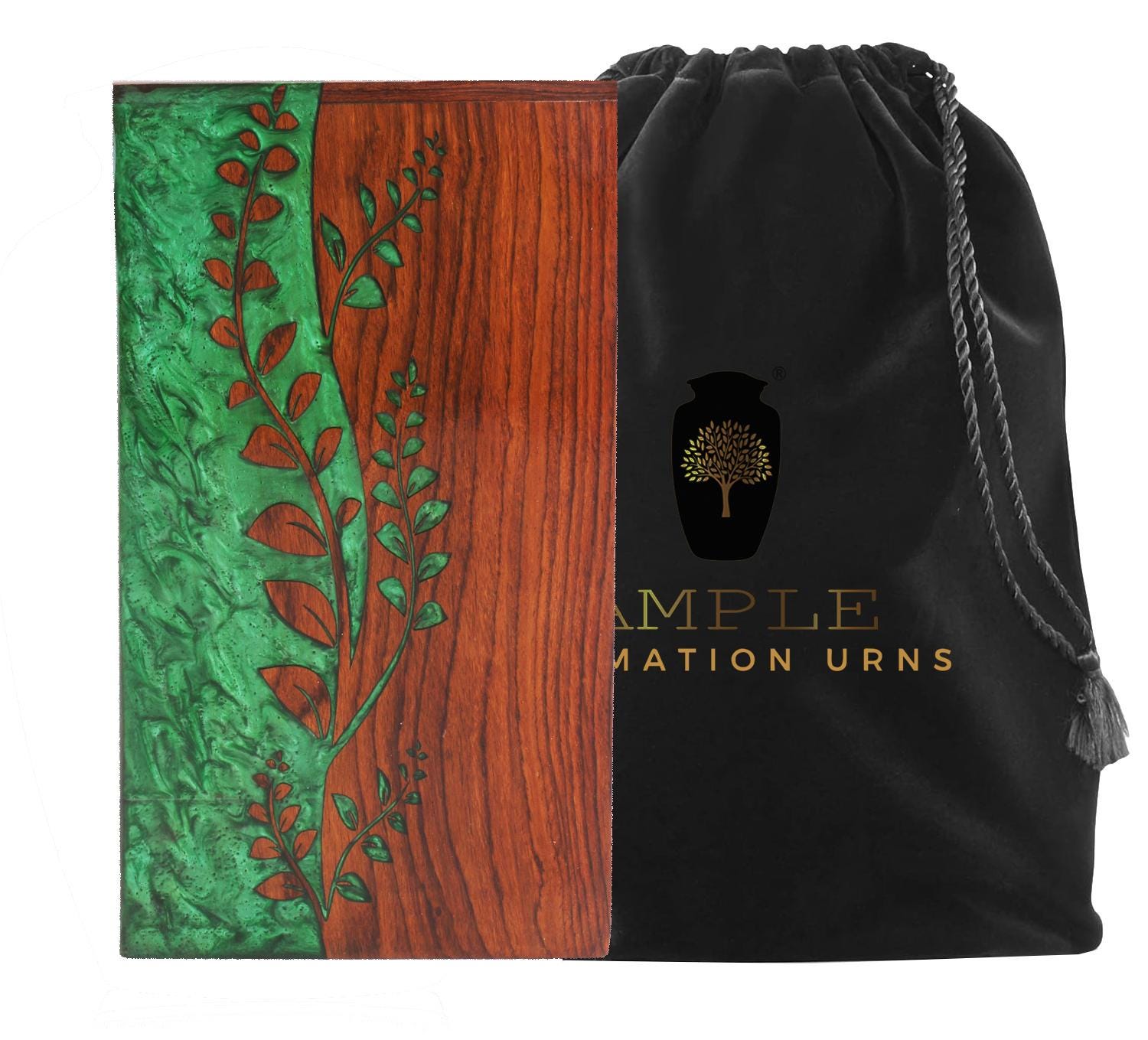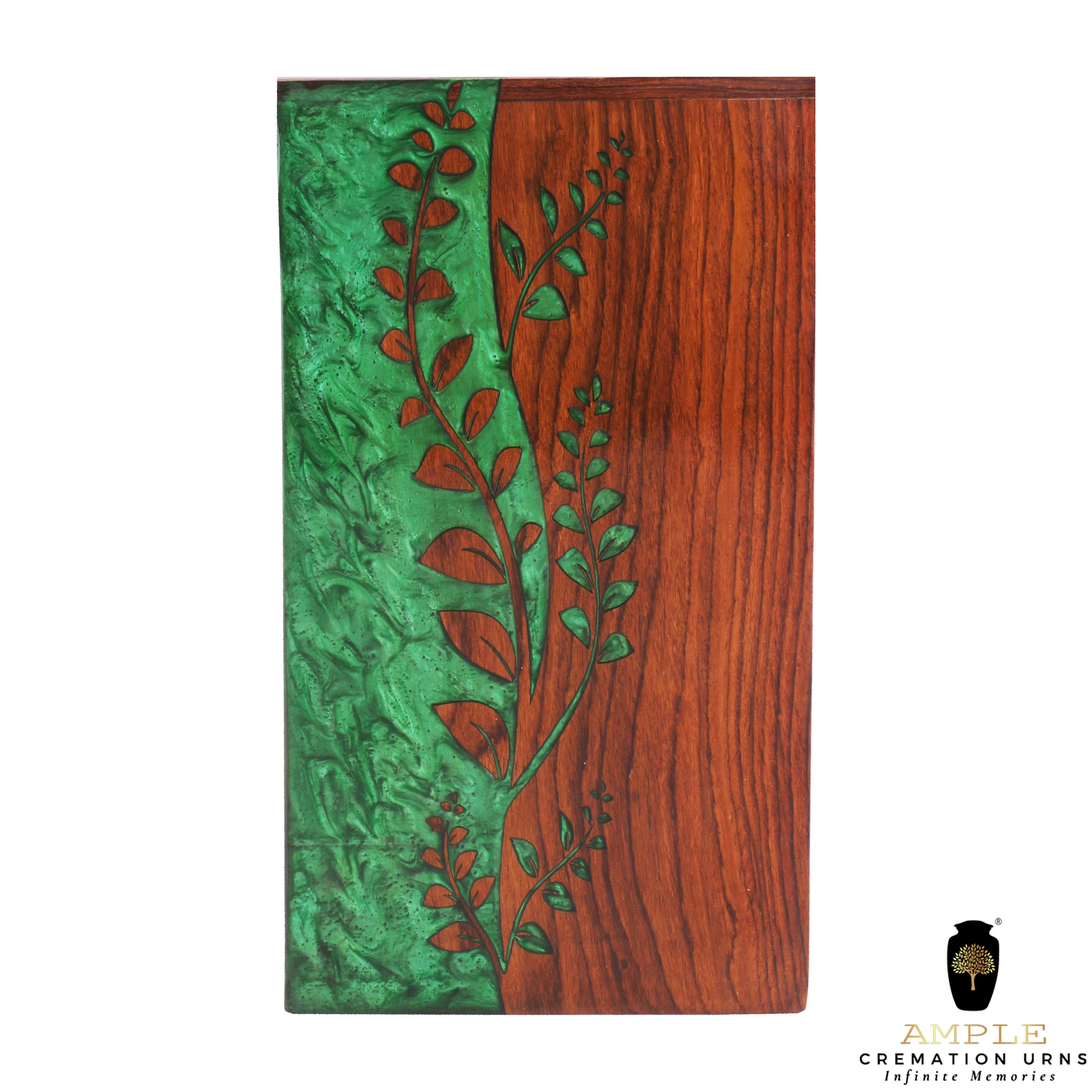 Honor your loved one with this beautifully handcrafted wooden cremation urn box, featuring a vivid green leaf inlay for a natural, serene tribute. Perfect for those who cherished nature and sought peace in its beauty 🍃🌿