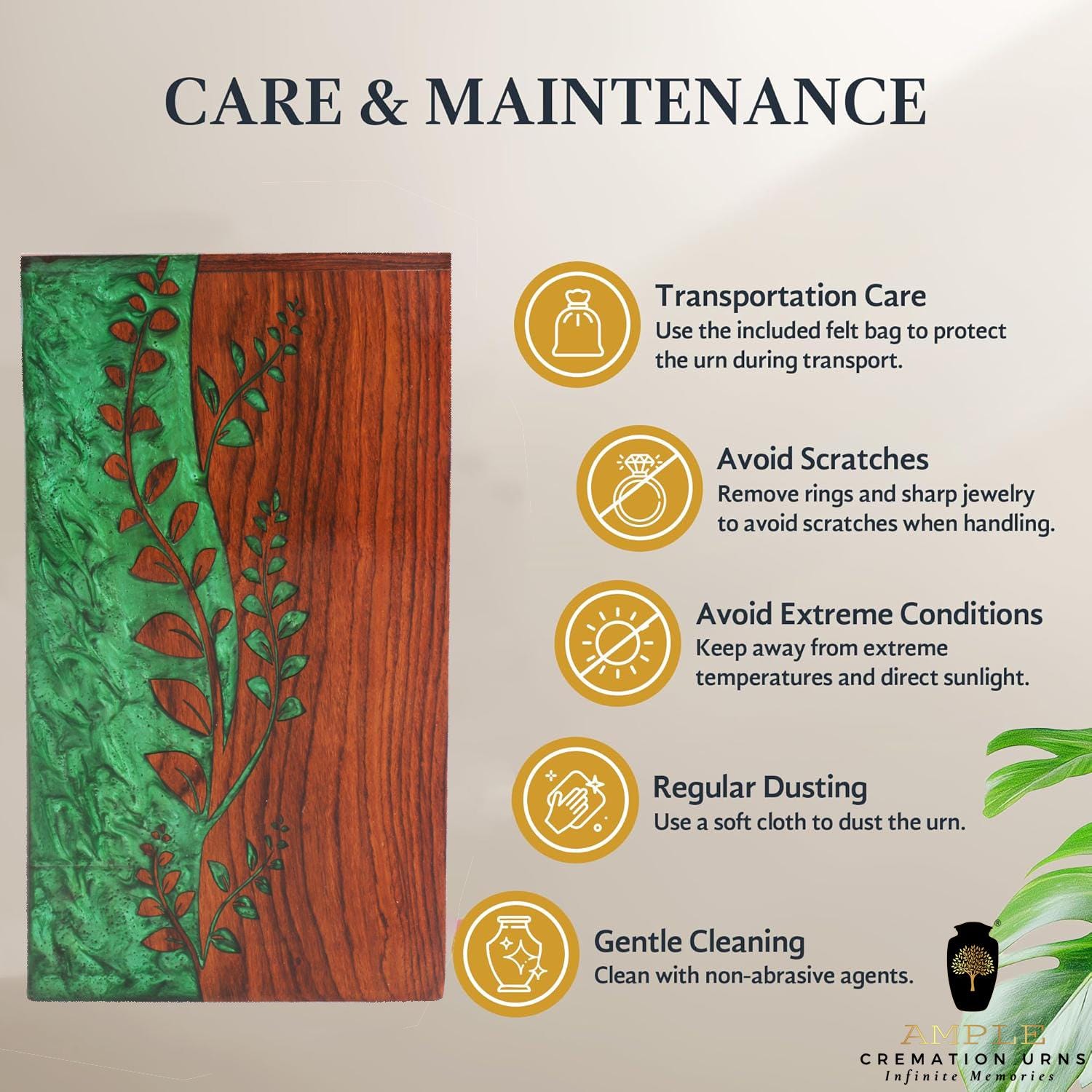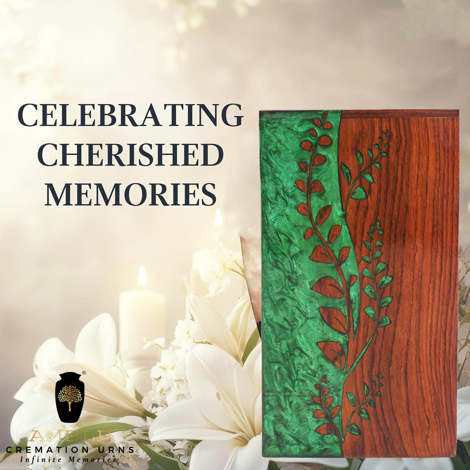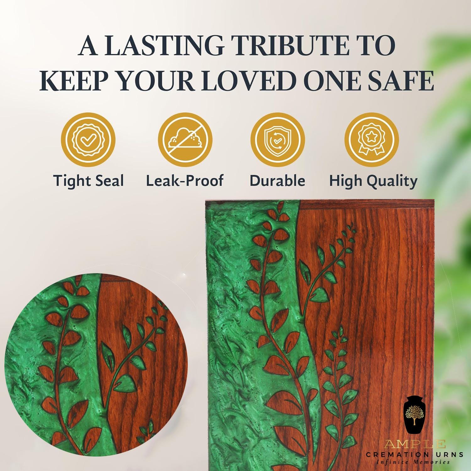 Honor your loved one with this beautifully handcrafted wooden cremation urn box, featuring a vivid green leaf inlay for a natural, serene tribute. Perfect for those who cherished nature and sought peace in its beauty 🍃🌿