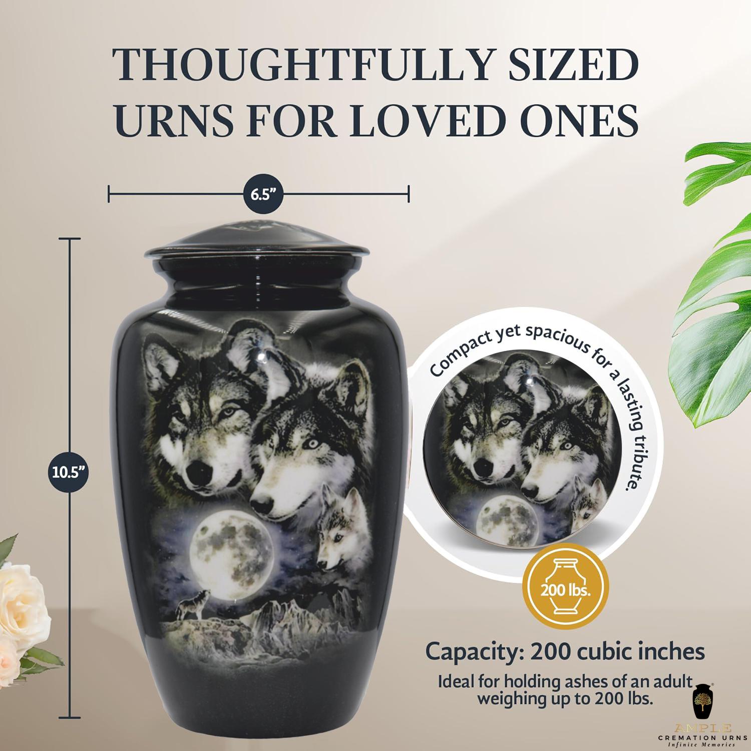 Capacity: 220 cubic inches (holds ashes for individuals up to 200 lbs)