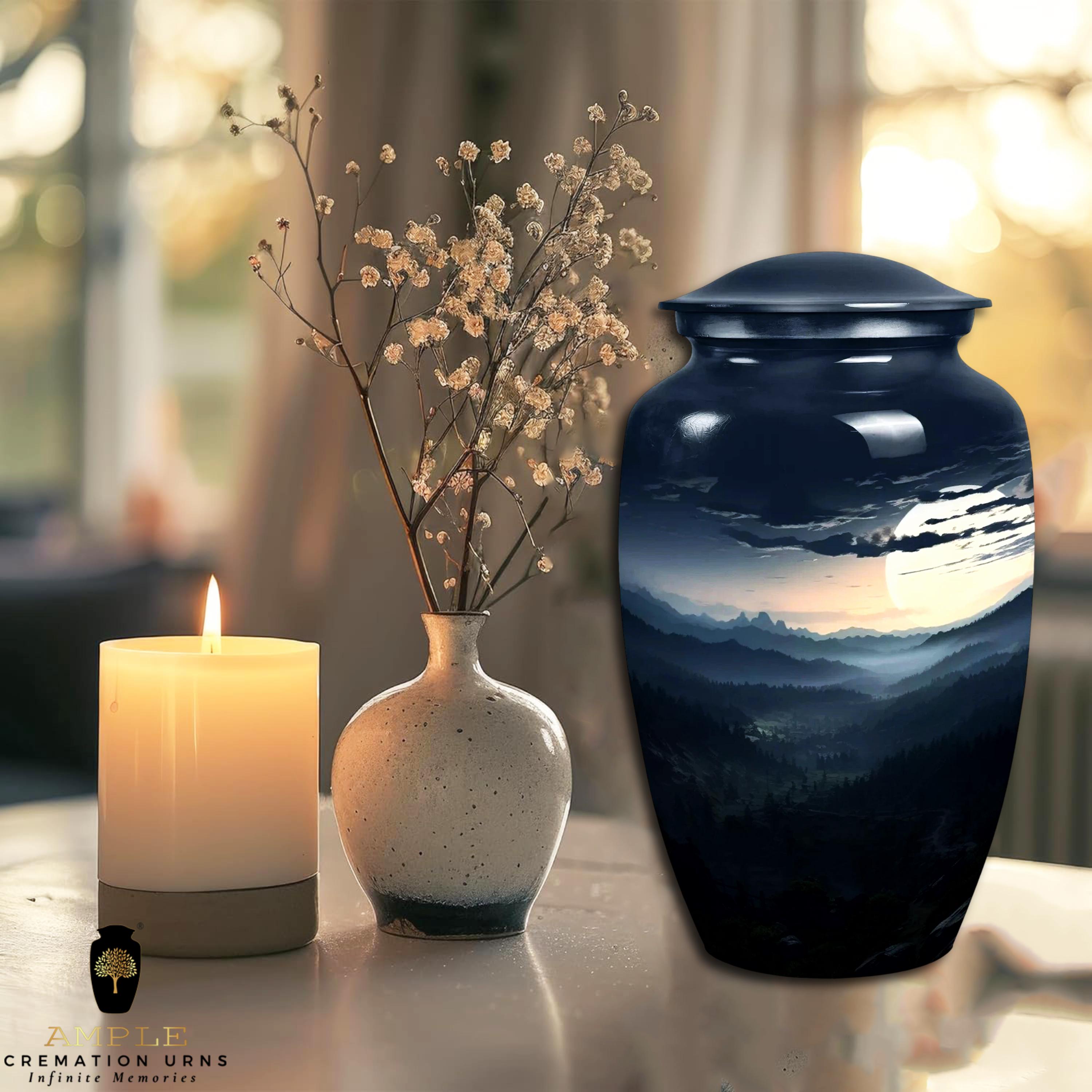 Handcrafted Meena Coating Cremation Urn, Aluminum Memorial Vessel