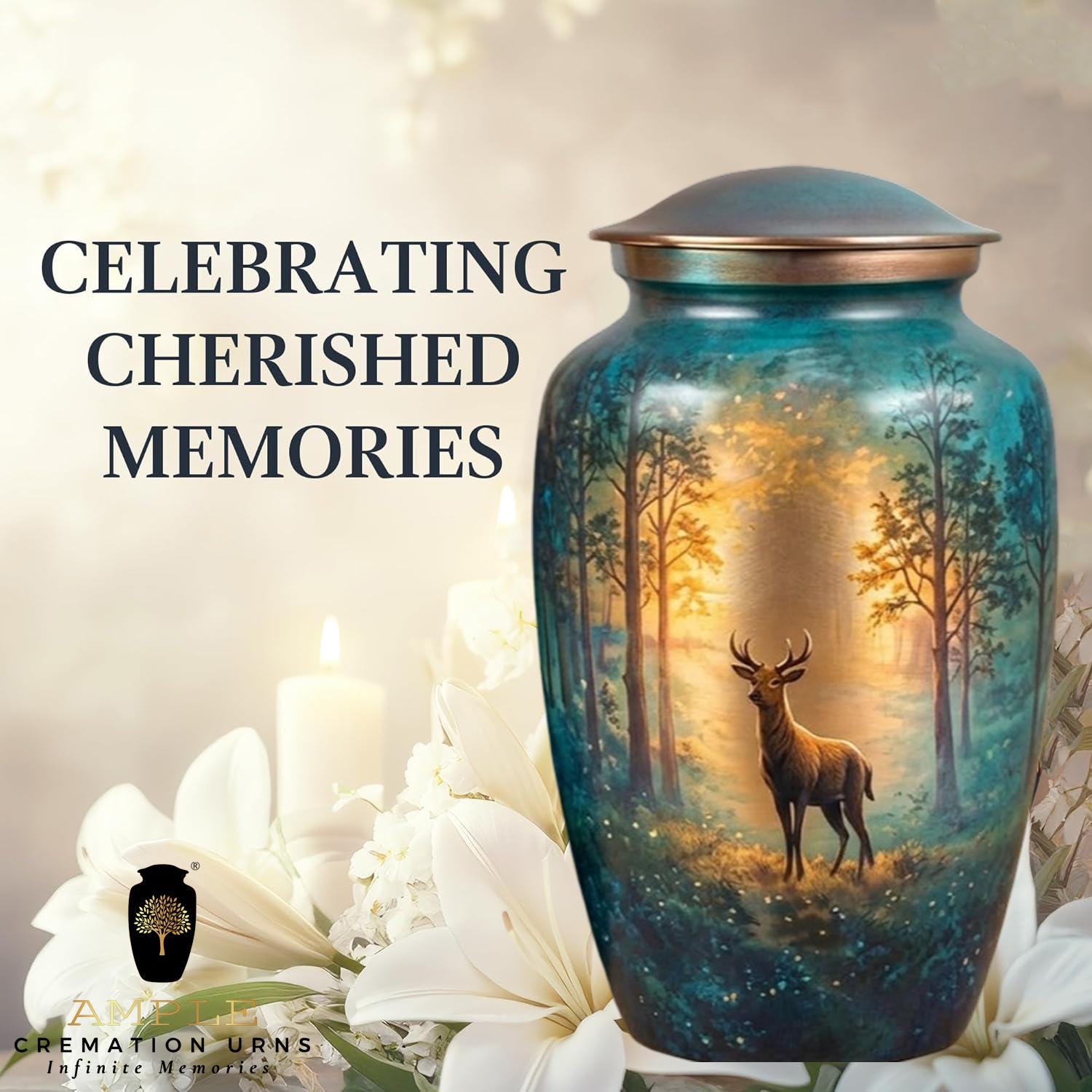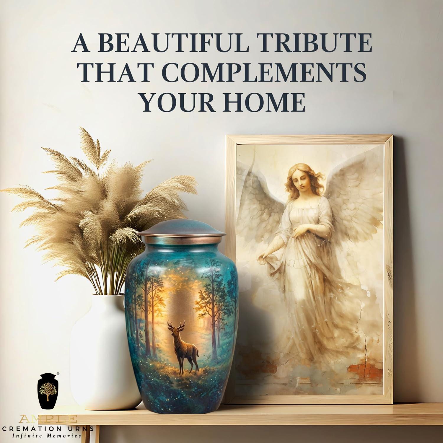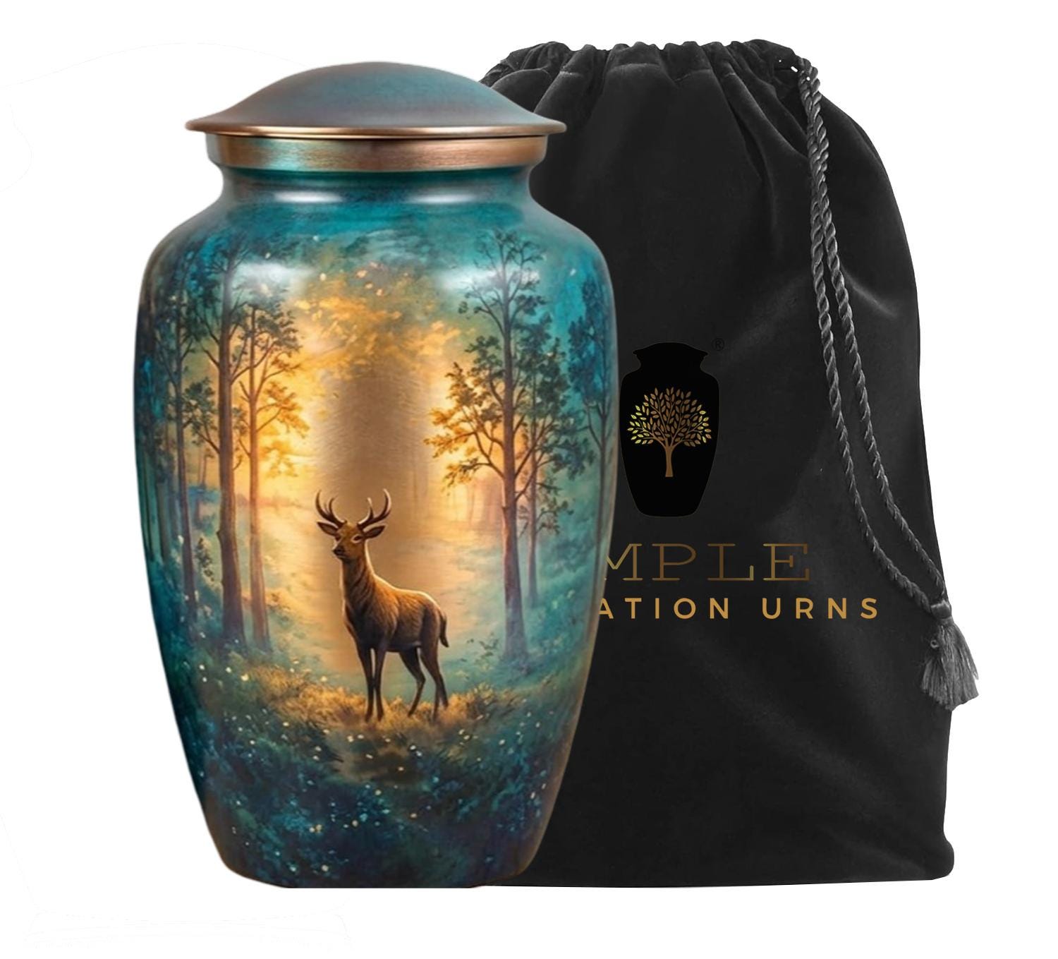 This urn features a colorful hummingbird hovering over a lush garden filled with daisies, poppies, and other vibrant wildflowers. The background uses a soft gradient of sunrise colors—ranging from warm gold and orange to pink—which transitions into deep garden greens, magentas, and blues at the base. It is finished with a metallic, copper-toned lid.