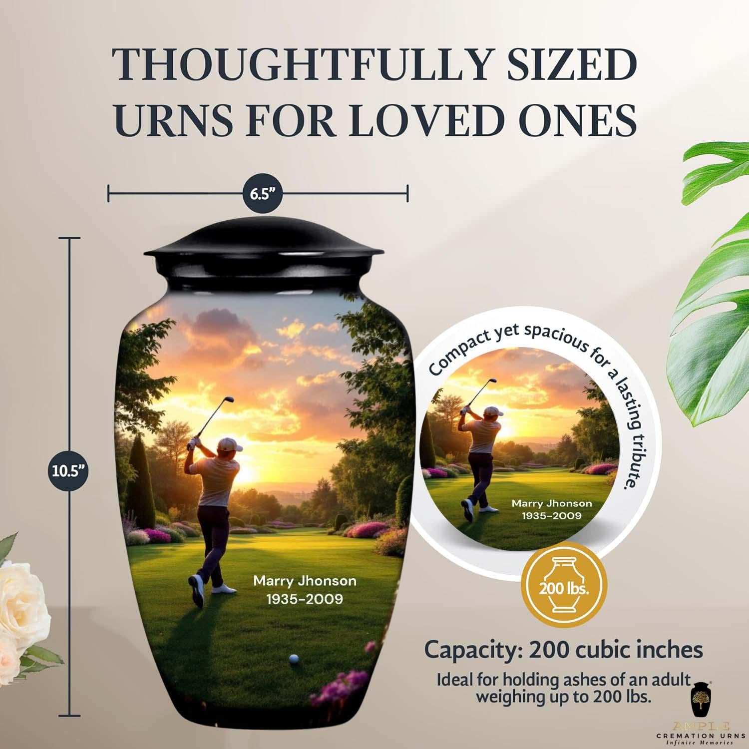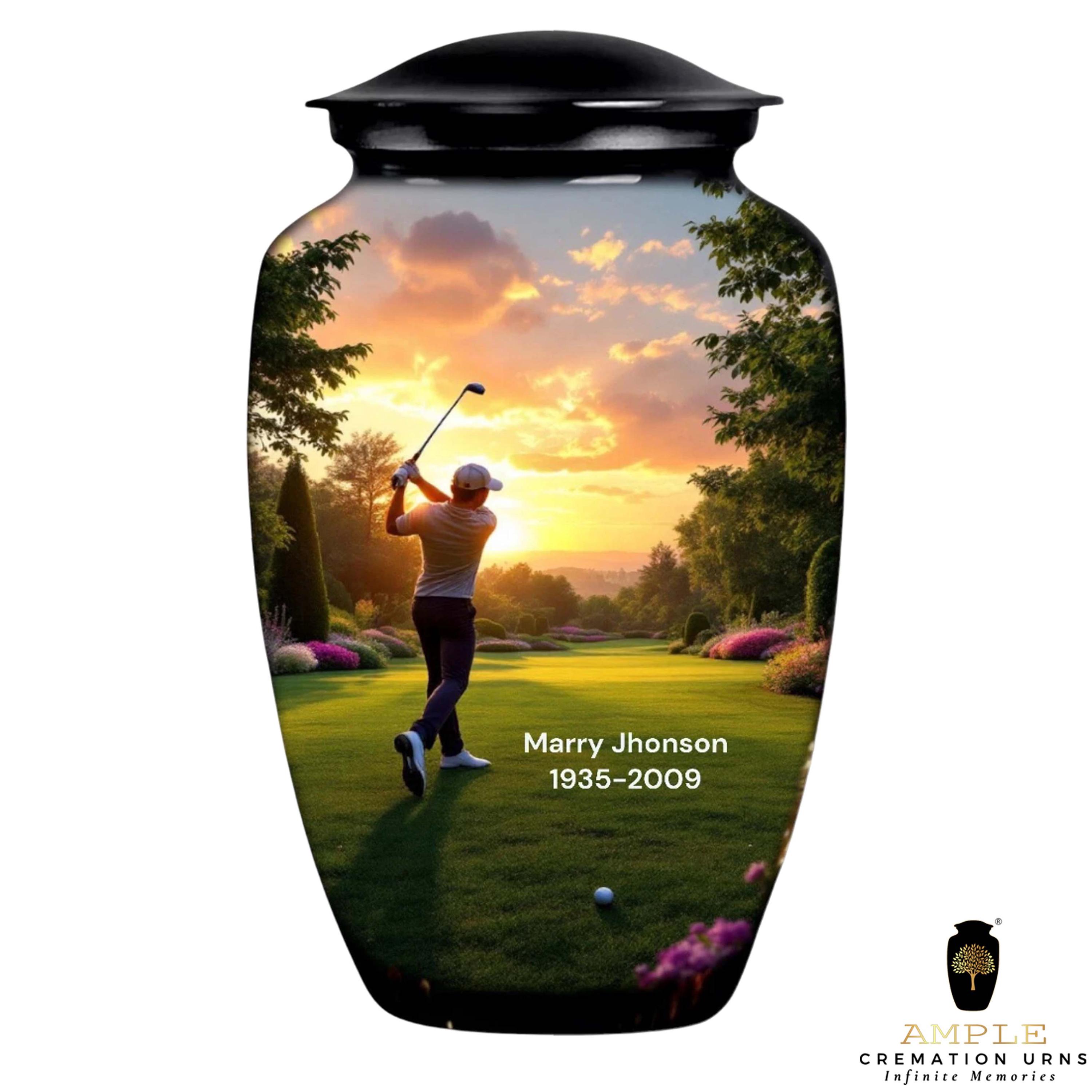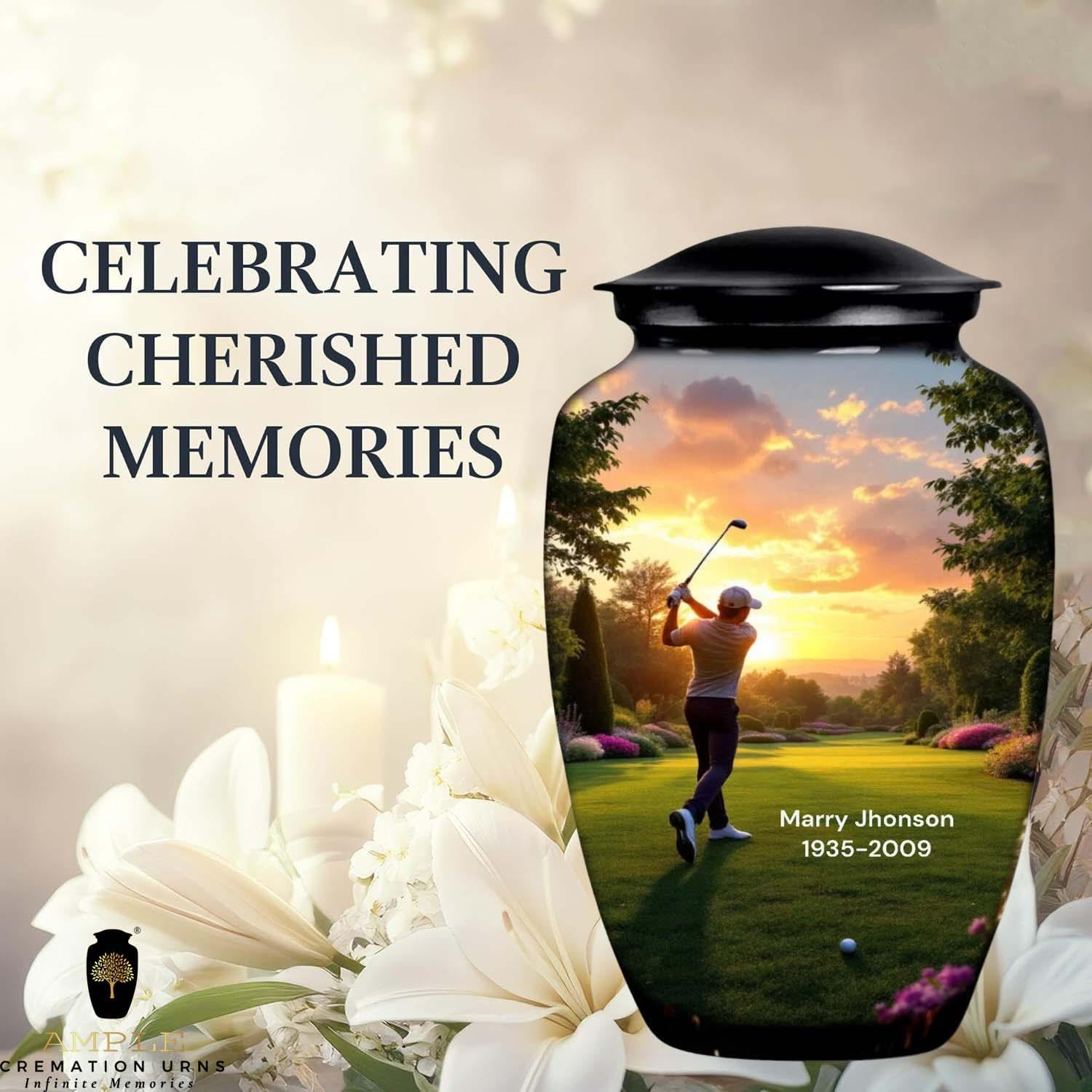 Celebrate a life well-played with the Golden Fairway Sunset Memorial Urn.