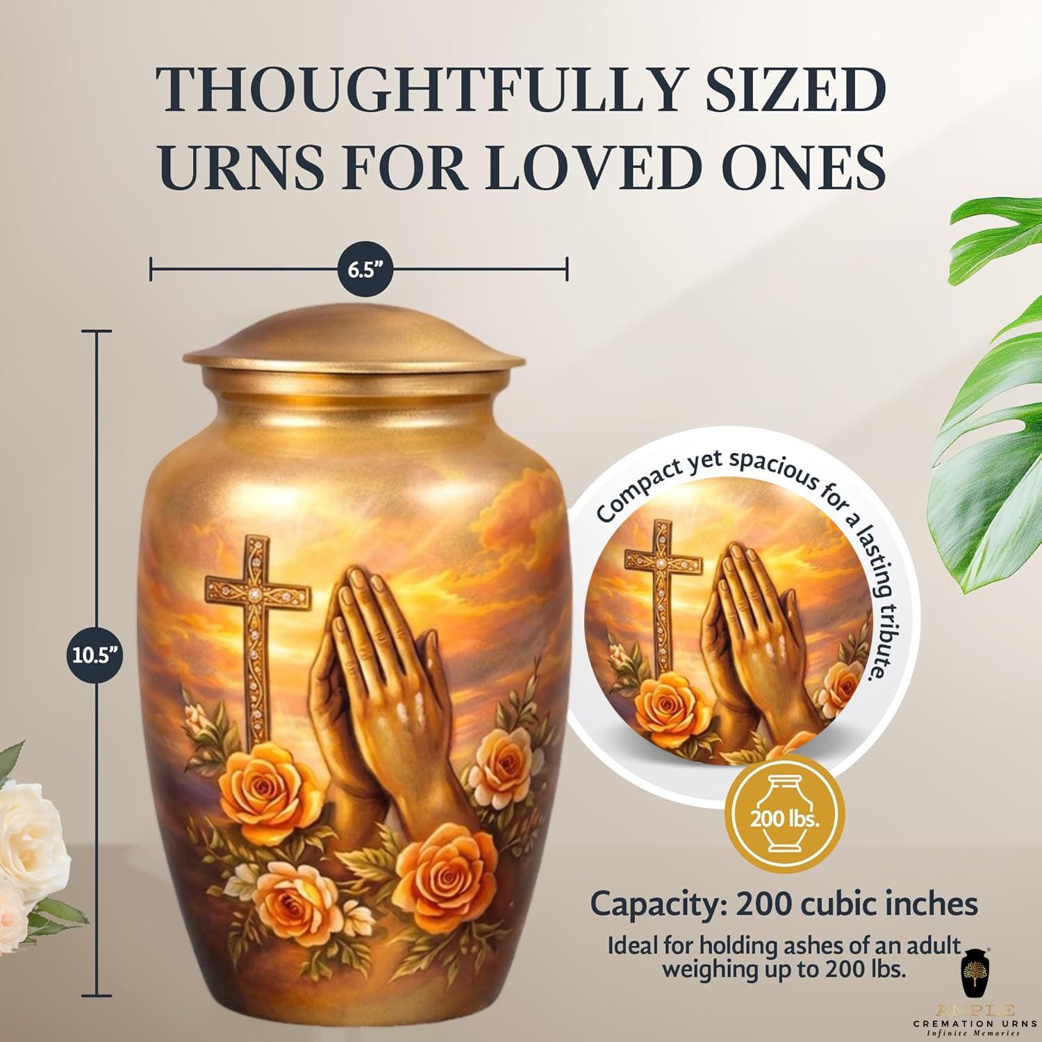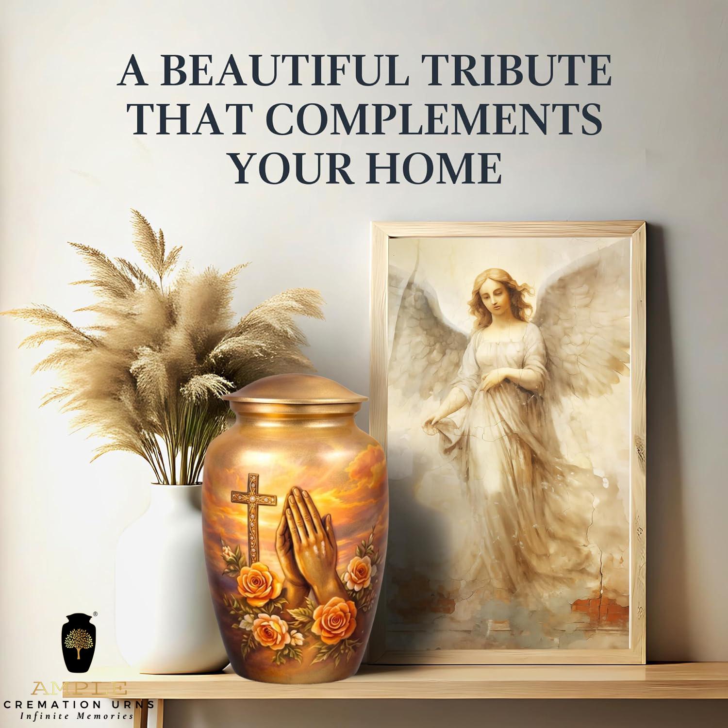 Honor a life rooted in faith and devotion with the Sacred Rose Prayer Memorial Urn.