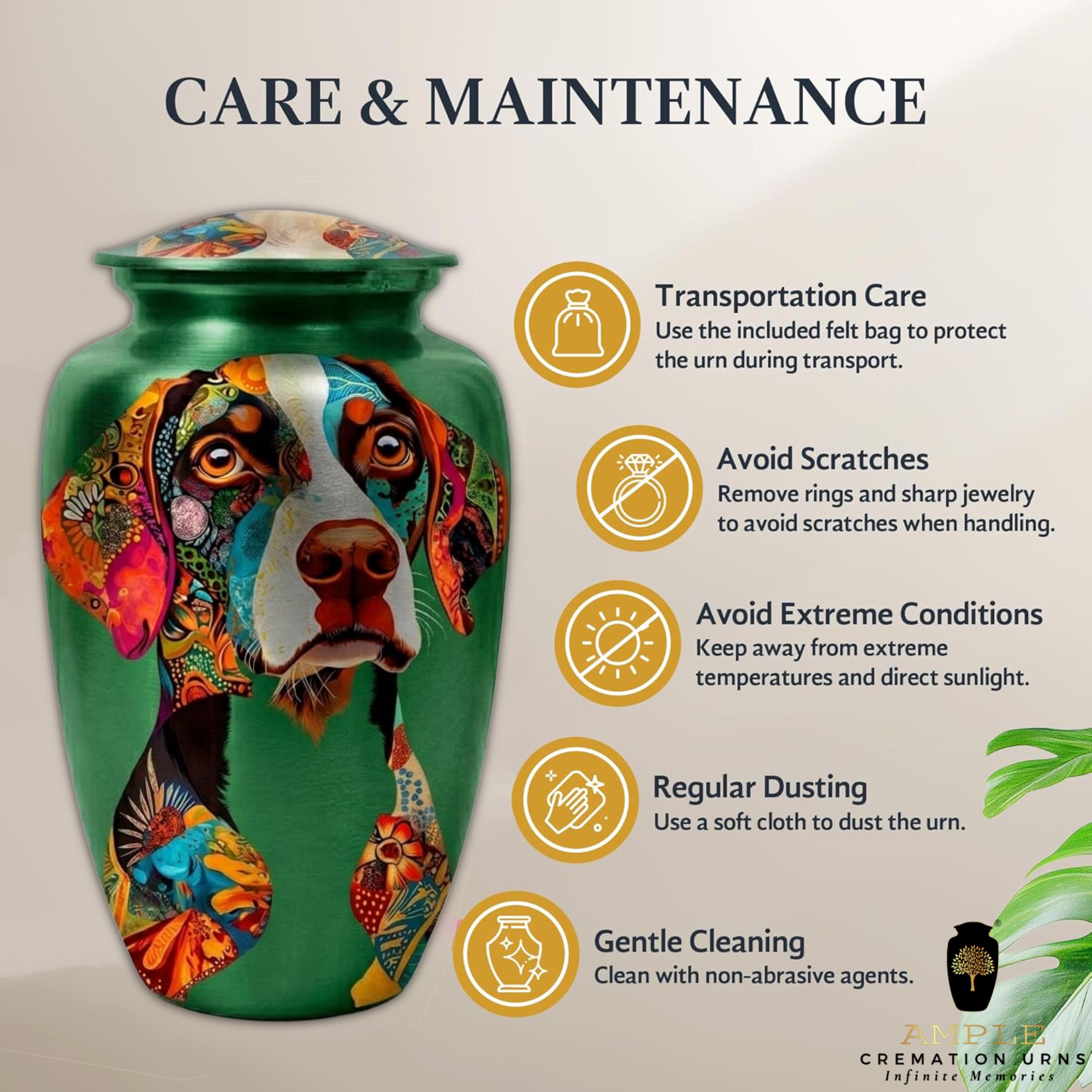 Keepsake Information: Matching 3-inch miniature keepsakes are available for this model, allowing families to share small portions of remains or keep a personal memento of a loved one’s loyal spirit.