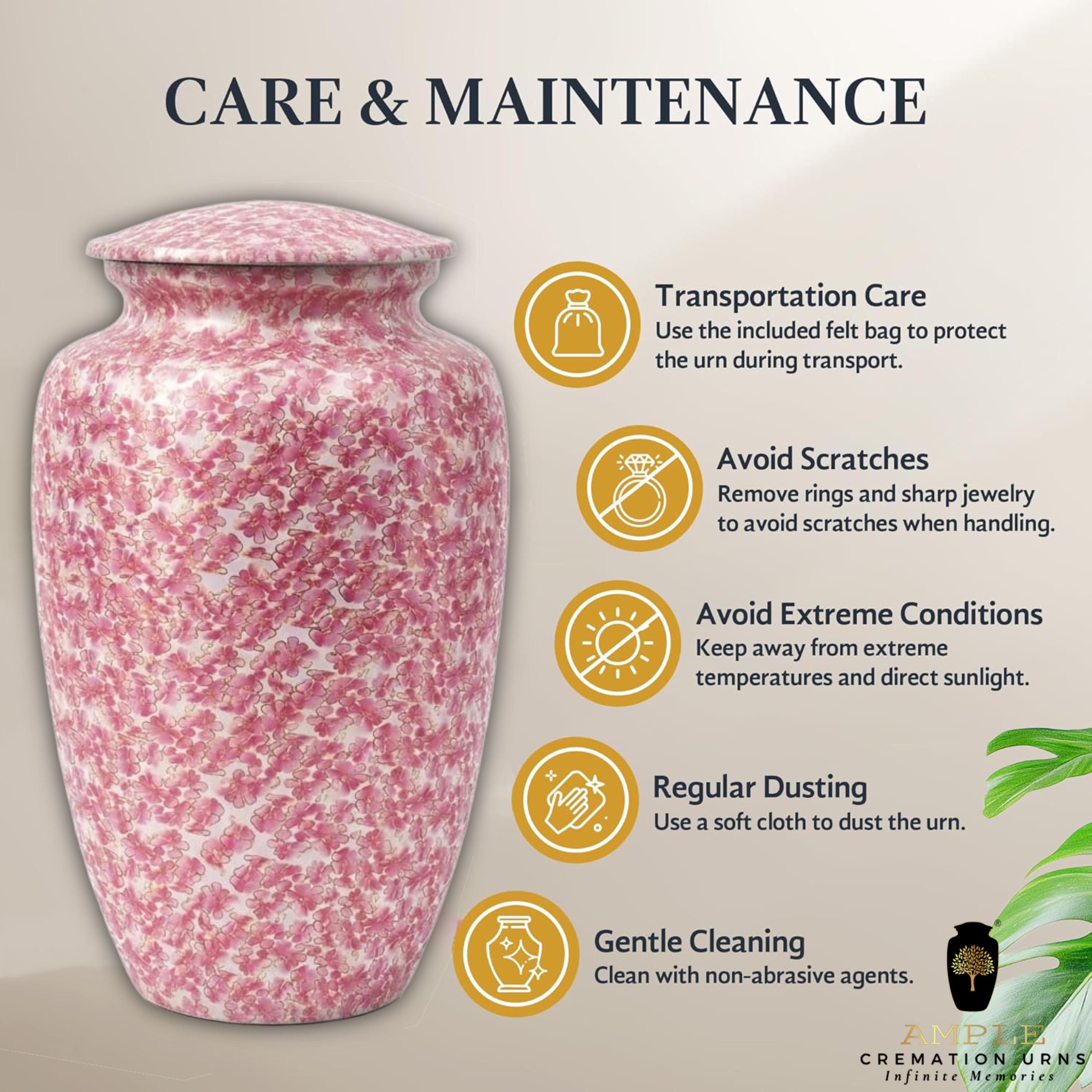 Keepsake Information: Matching 3-inch miniature keepsakes are available for this model, providing a beautiful way to share small portions of remains among family or to keep a portable memento of a loved one’s blooming spirit.