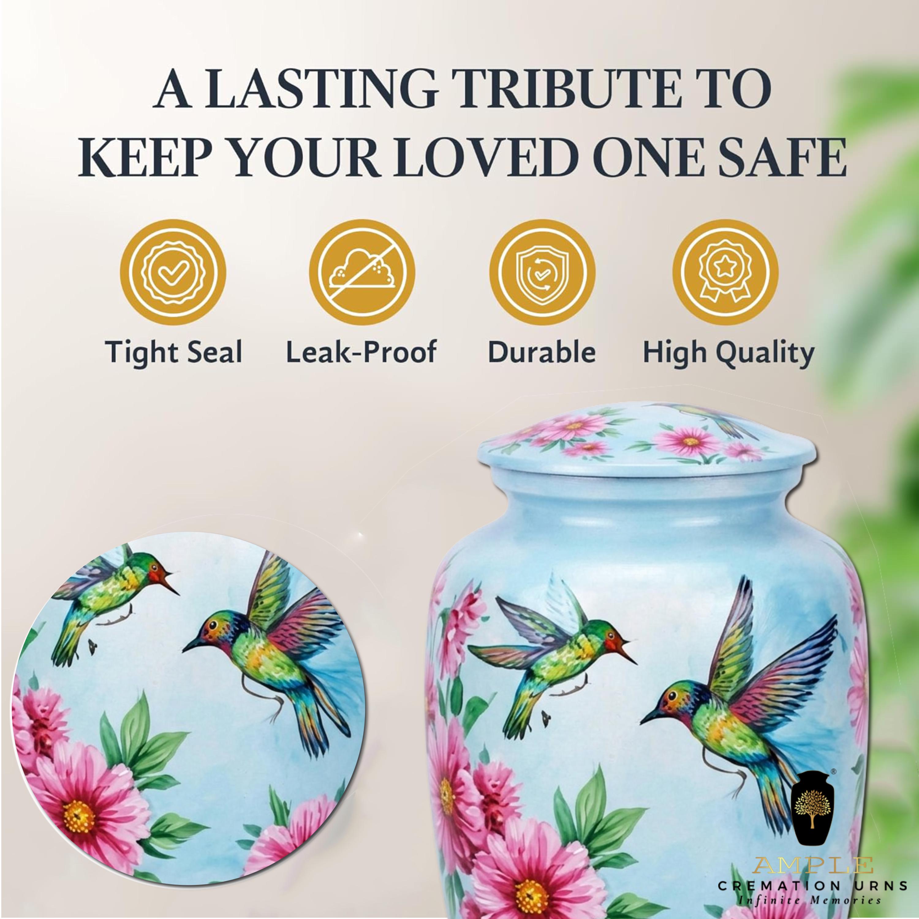 Commemorate a life defined by joy, energy, and a deep appreciation for nature's delicate beauty with the Hummingbird Haven Memorial Urn.