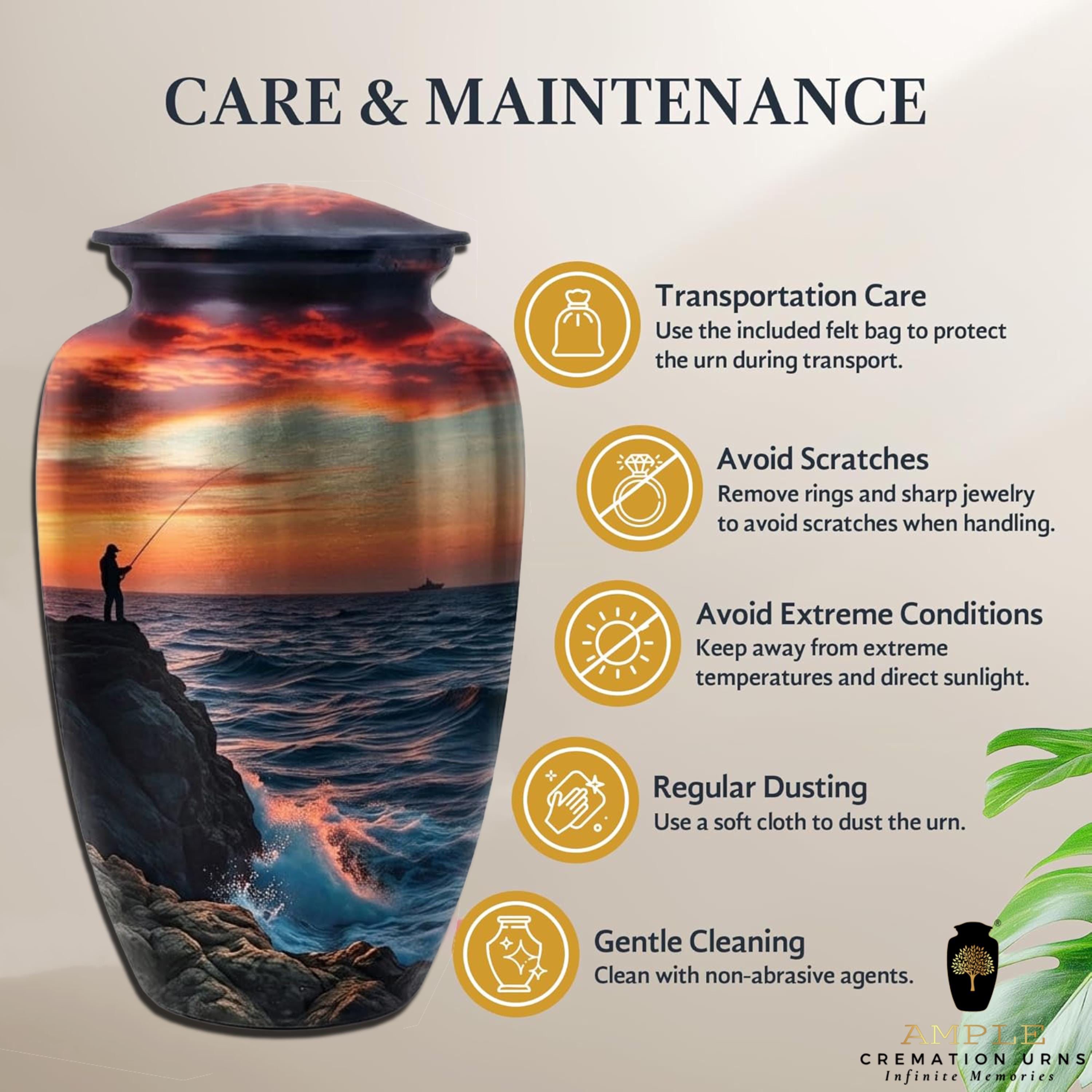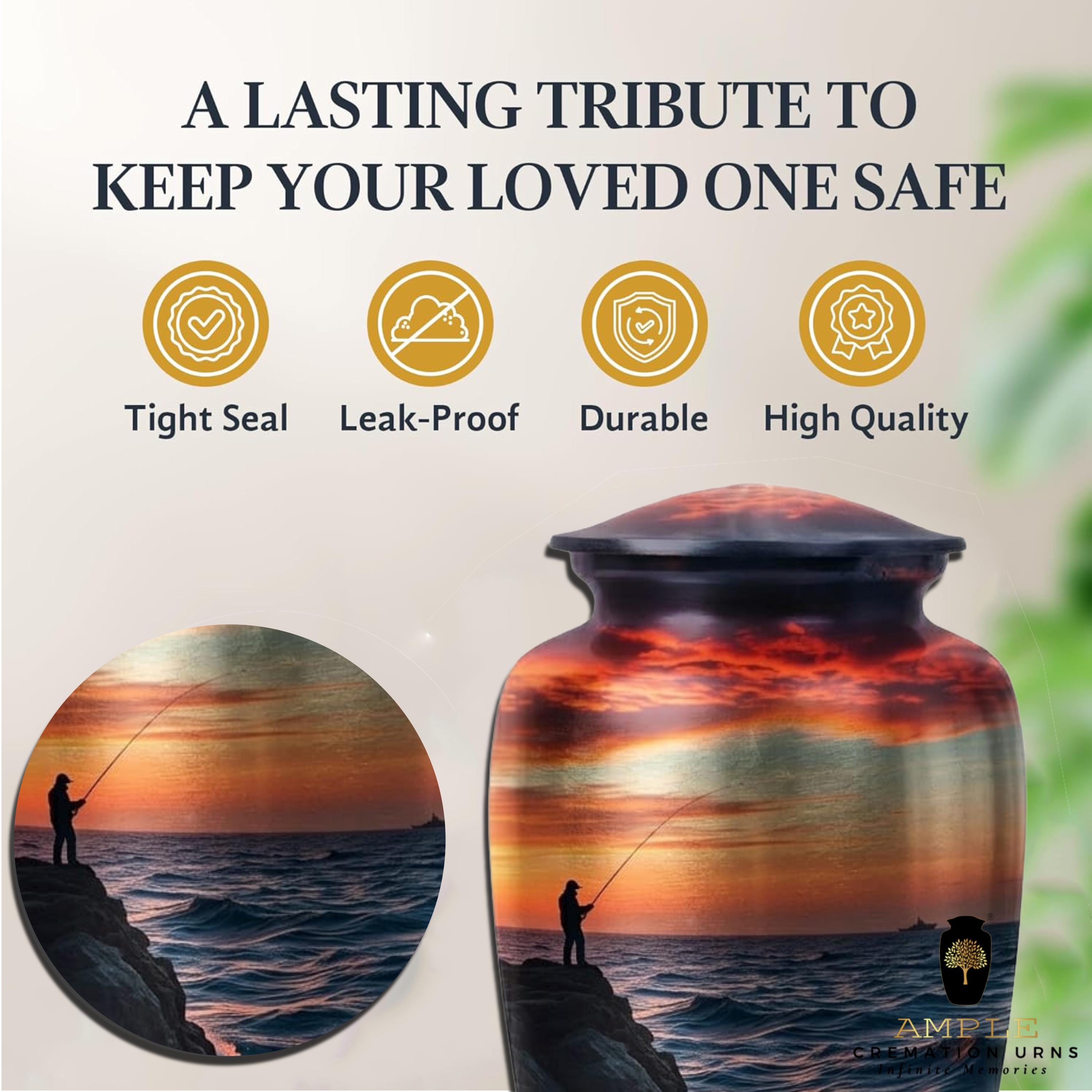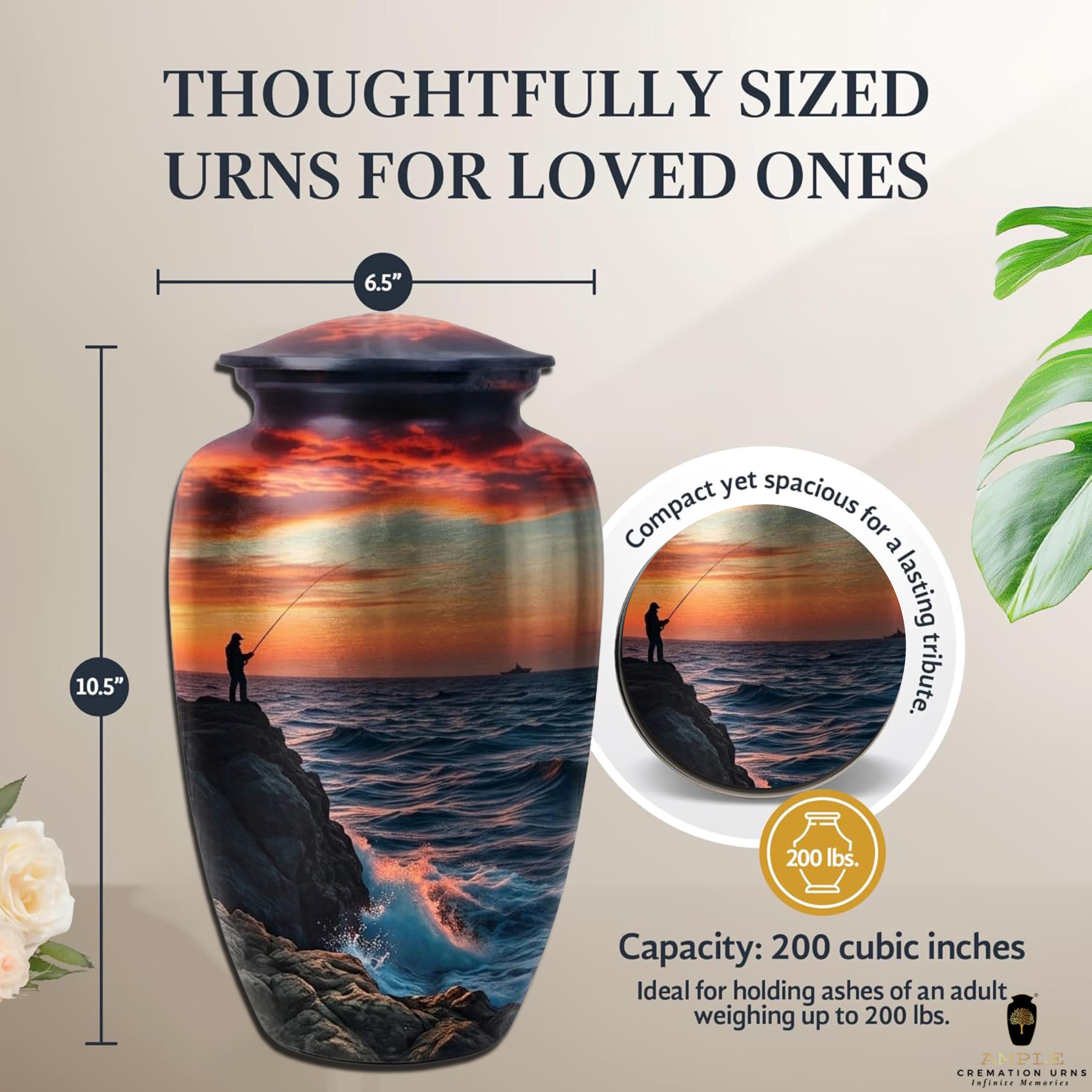 Commemorate a life defined by the peaceful rhythm of the tides and the quiet joy of the catch with the Eternal Cast at Sunset Memorial Urn.